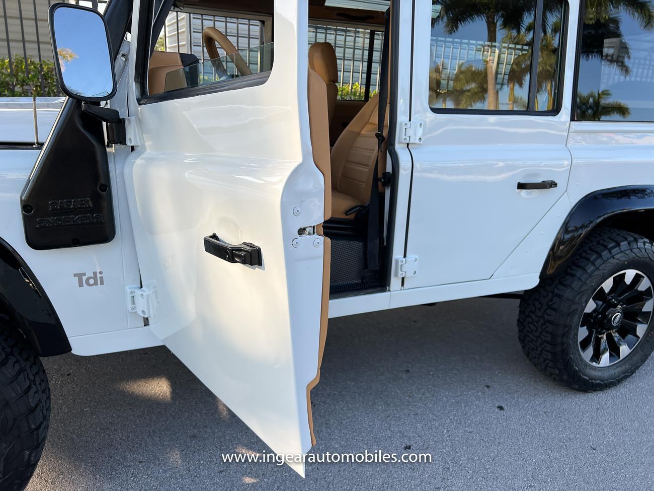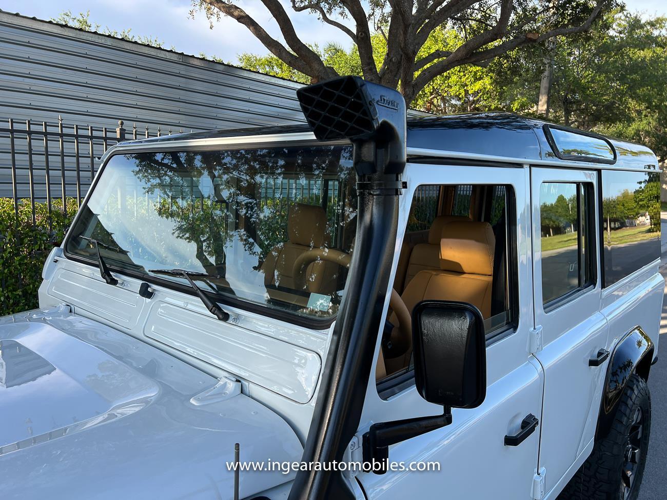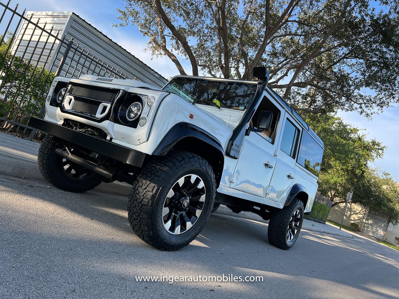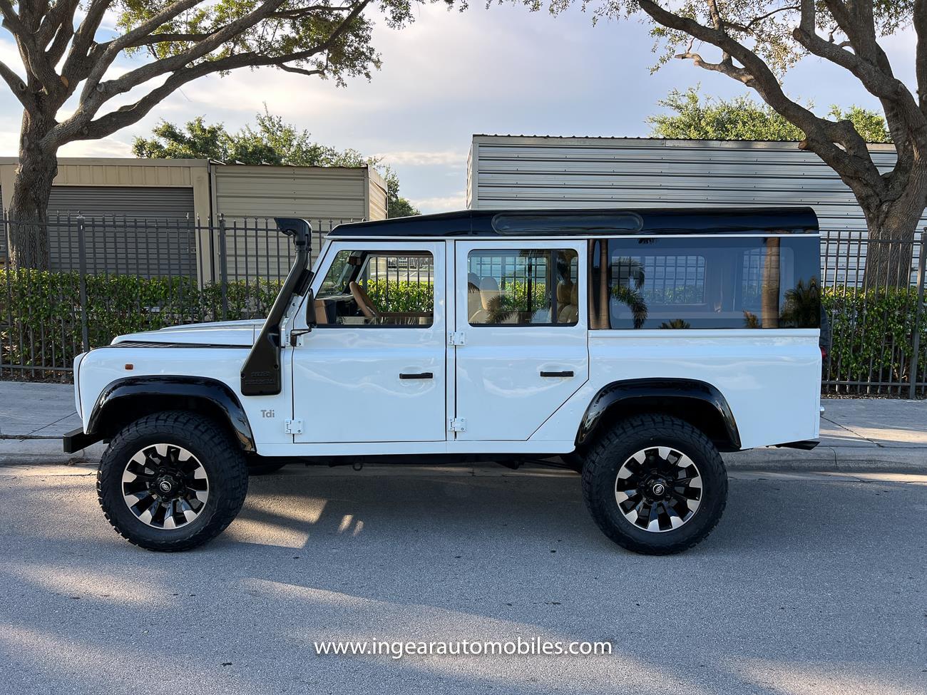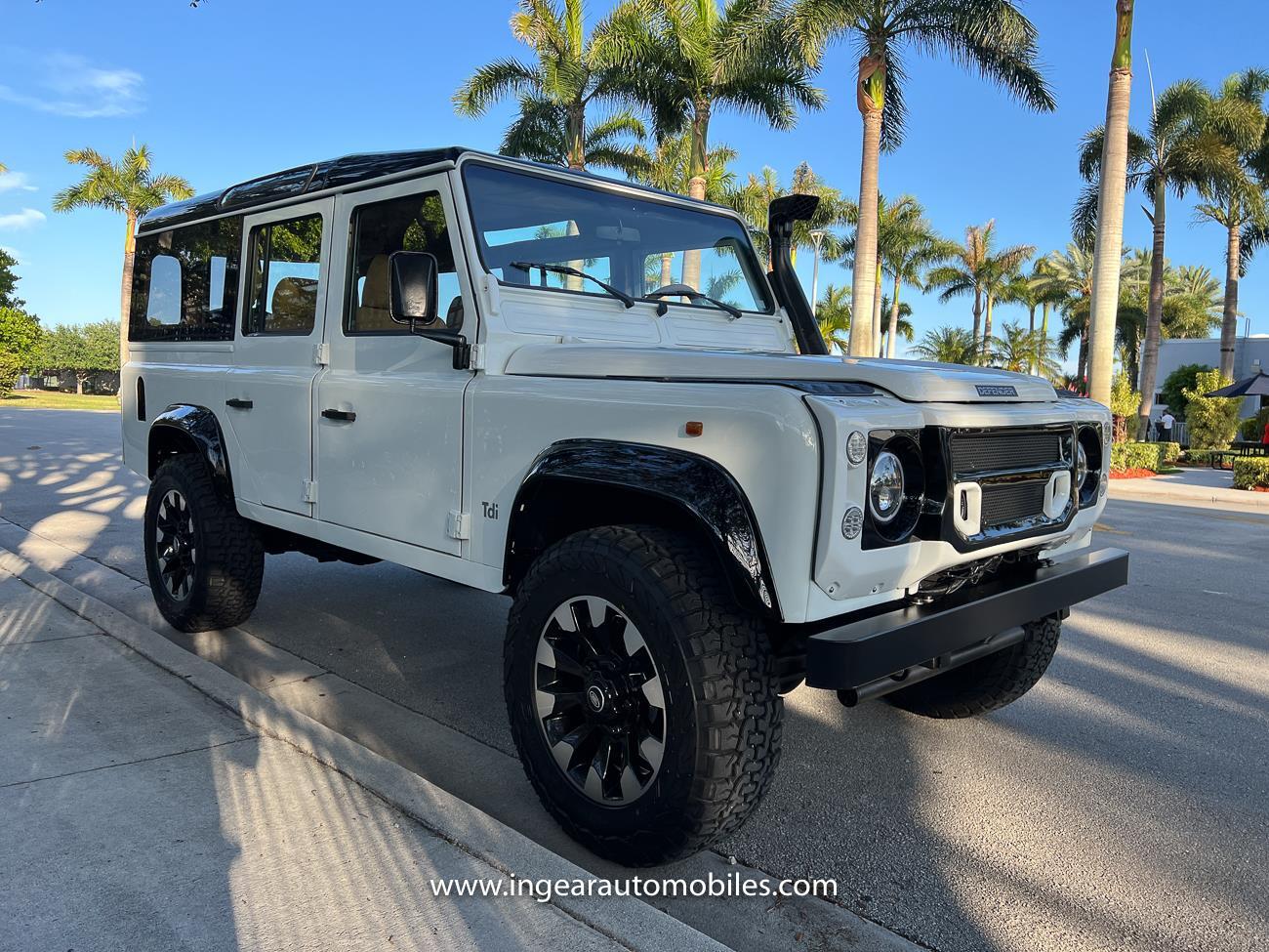 Call me 305-542-5662. Up for sale is a 1997 Land Rover Defender 110 4x4! Original left hand drive car with A/C. Finished in safari white with black roof and black accents. Panoramic Windows custom built! Alloy Sawtooth wheels! The Defender is powered by it's 300tdi Turbo Diesel engine matted to a 5 speed transmission. This is not your average Defender it has numerous upgrades and ready to take on any terrain, in its Safari White paint scheme with Tan interior. Clean FL title! Custom stealth front grill and LED Halo headlights, Black flares, black stealth diamond plate fender kit, snorkle kit, Has Power Steering Power Brakes, Front Disc Brakes, and etc. Interior seats were taken out and all redone with new Tan upholstery. Matching Steering wheel. The bodies on these cars are made in aluminum so they hold really nice and makes the car light. Check out all my pictures and video.