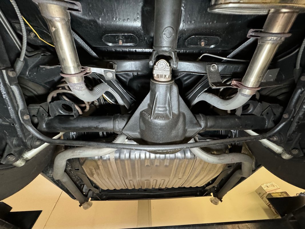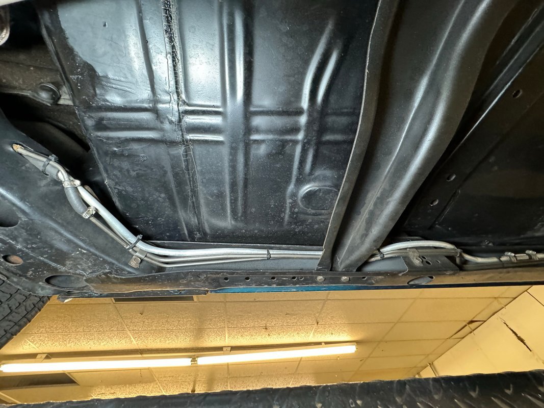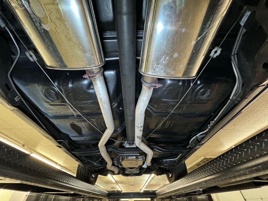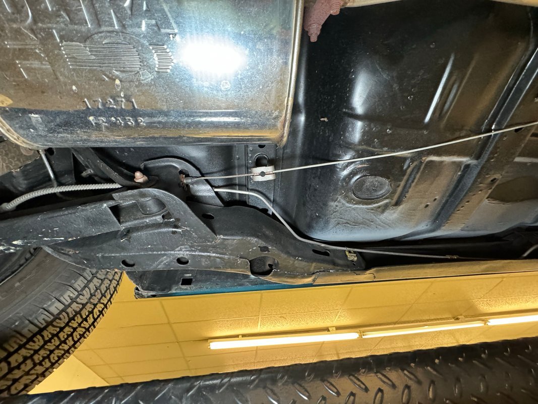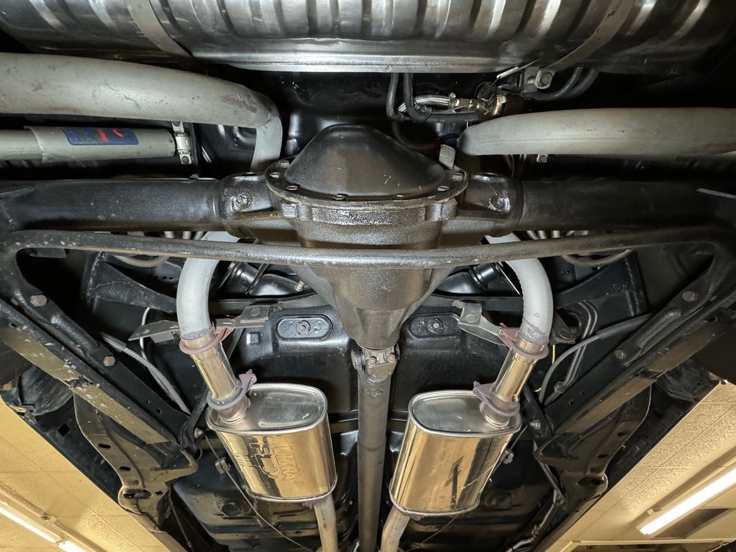 Twist the pins and pop the hood and we're impressed with the very clean numbers matching 455ci V8 with a W30 cam inside and a Holley 4-barrel carburetor on top. The original Rochester Quadrajet will come with the car. Grabbing that power and sending it to the rear 12 bolt is the numbers matching TH400 3-speed automatic transmission. Brakes on board are drums at each corner. UndercarriageSuper clean on the bottom side with a lack of surface rust, road dirt, grease build up, and errant fluids. Suspension consists of coil springs up front and a 4 link with coil springs in the back. The dual exhaust encounters a pair of stainless Borla mufflers before trumpeting out the back.