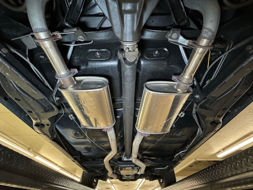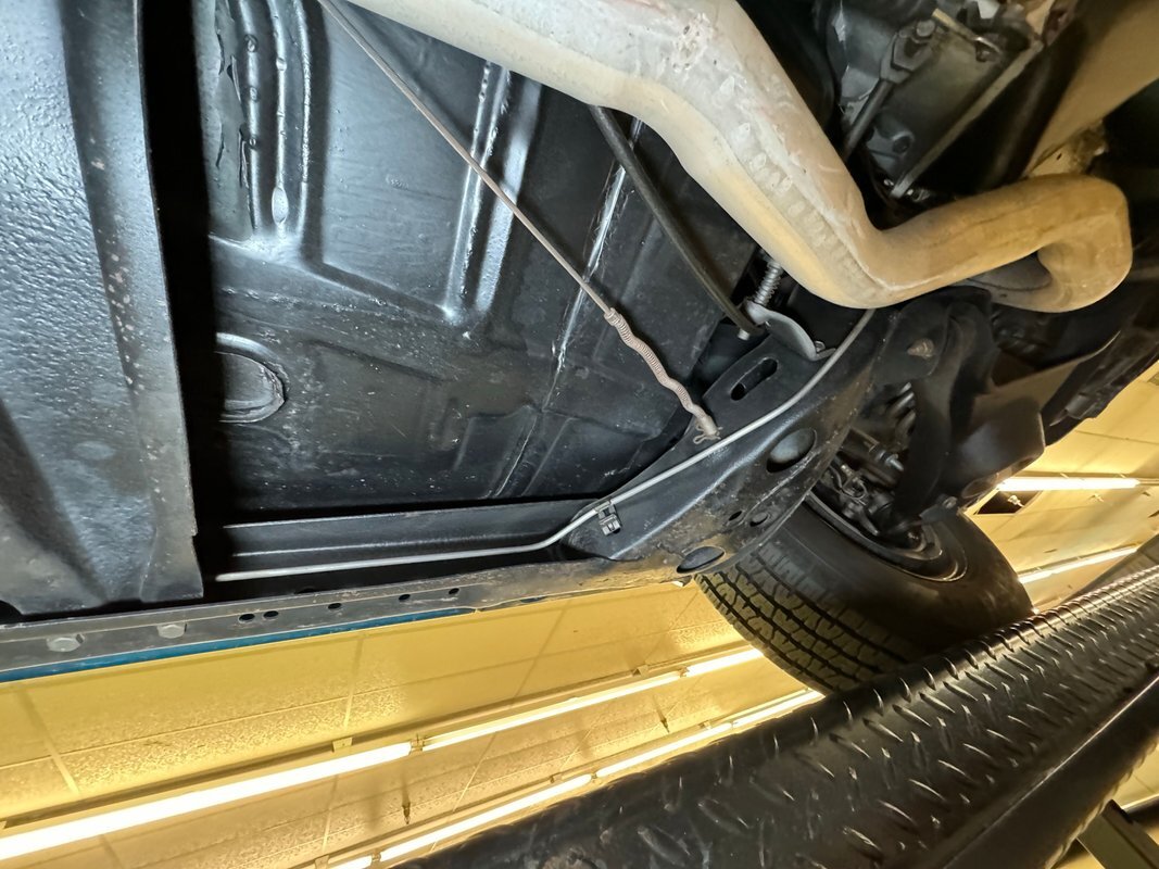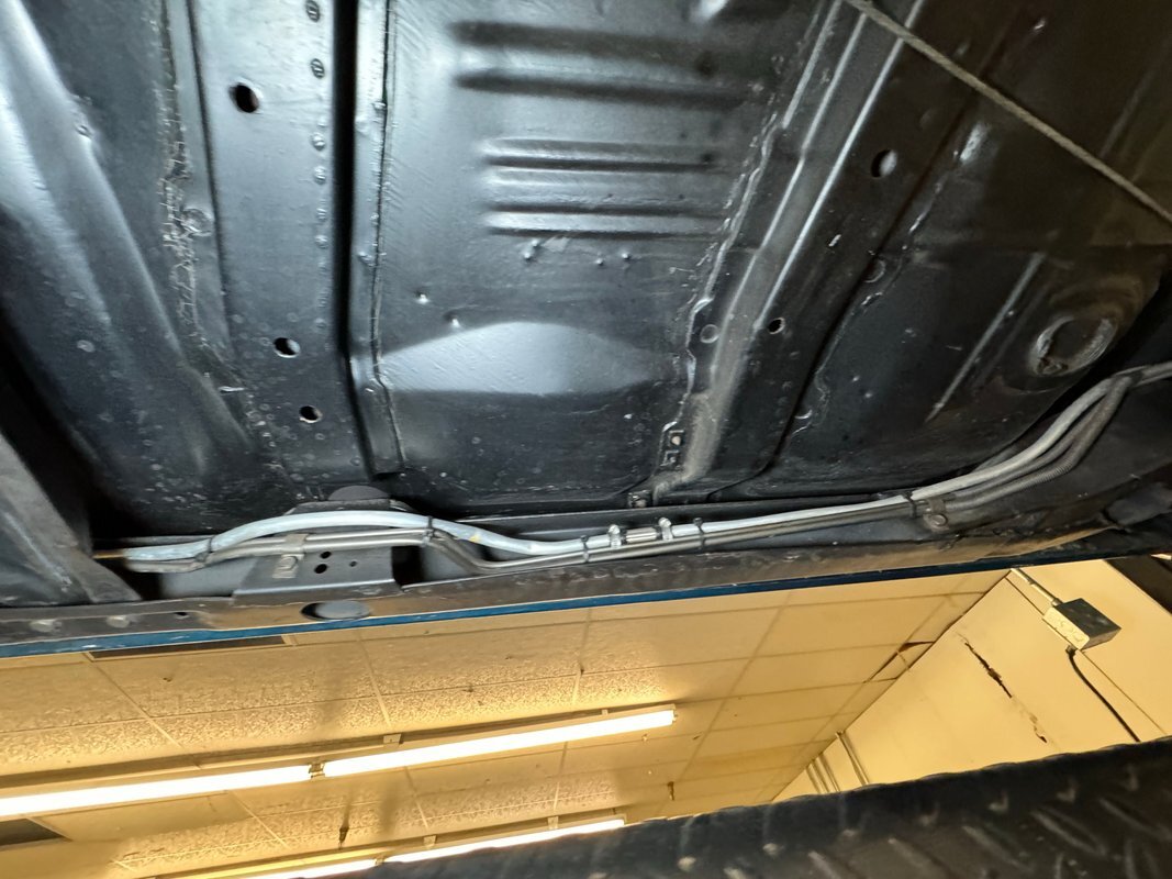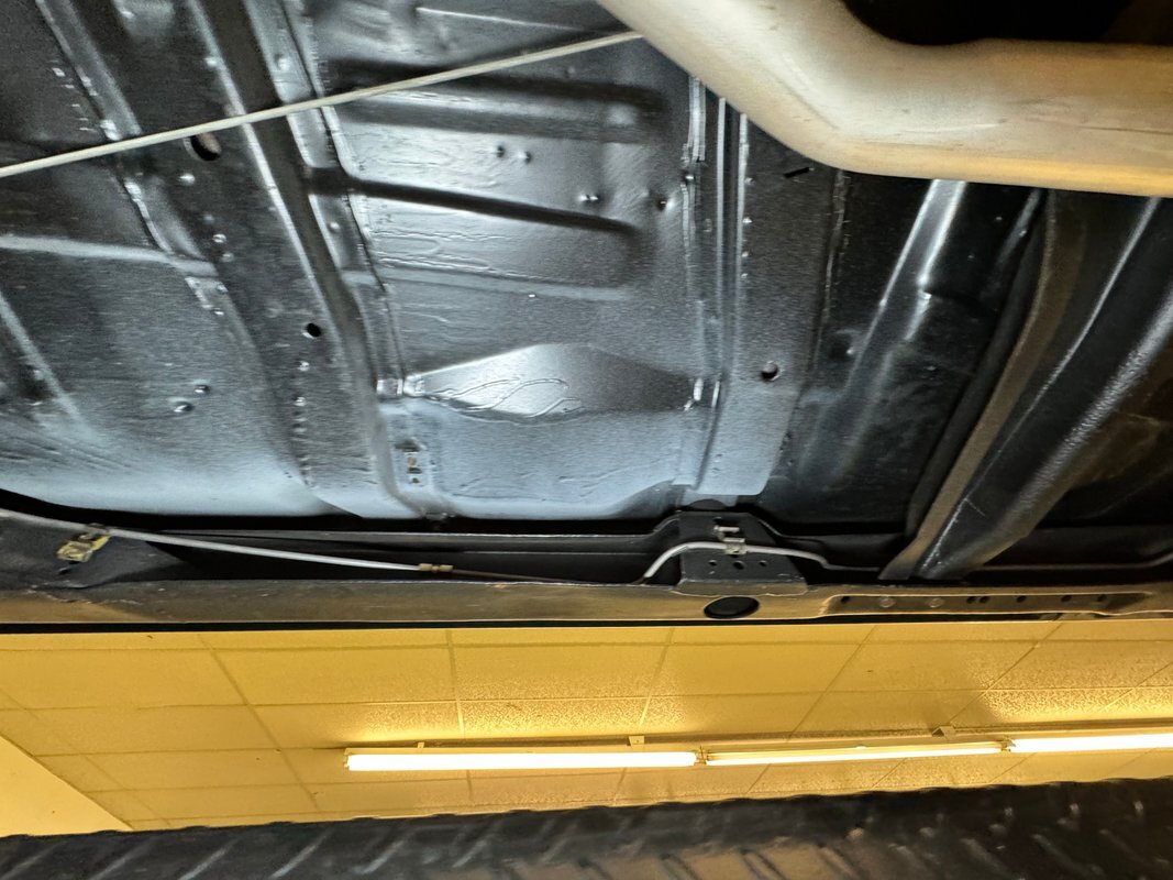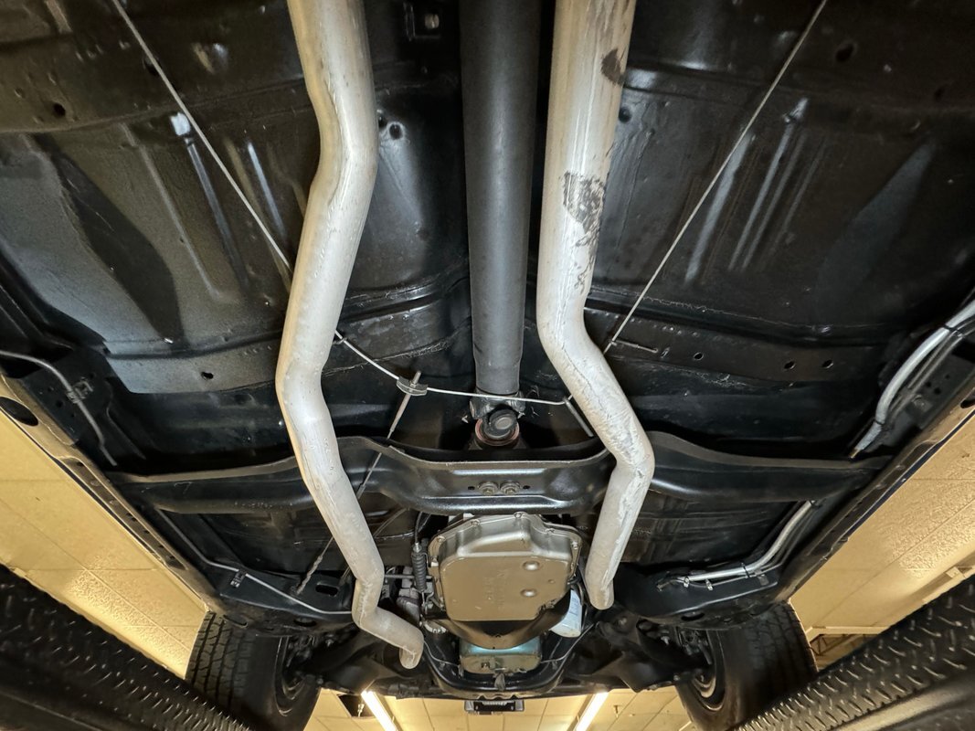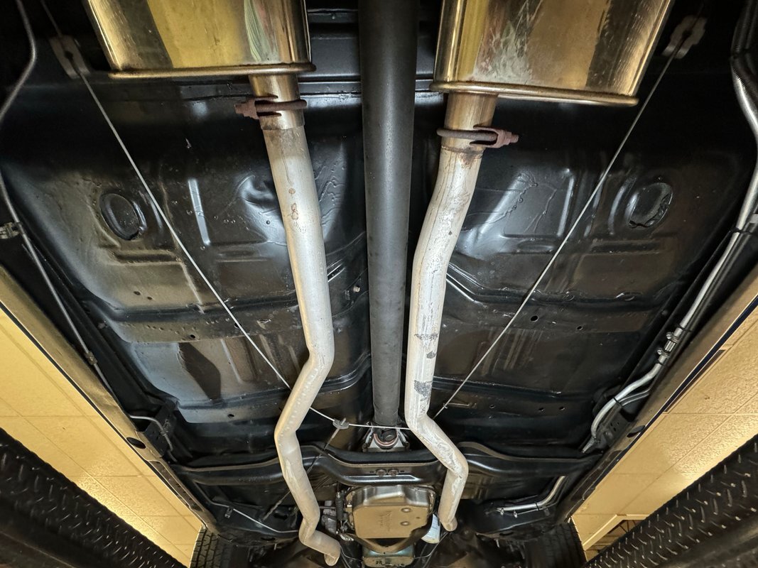 Twist the pins and pop the hood and we're impressed with the very clean numbers matching 455ci V8 with a W30 cam inside and a Holley 4-barrel carburetor on top. The original Rochester Quadrajet will come with the car. Grabbing that power and sending it to the rear 12 bolt is the numbers matching TH400 3-speed automatic transmission. Brakes on board are drums at each corner. UndercarriageSuper clean on the bottom side with a lack of surface rust, road dirt, grease build up, and errant fluids. Suspension consists of coil springs up front and a 4 link with coil springs in the back. The dual exhaust encounters a pair of stainless Borla mufflers before trumpeting out the back.