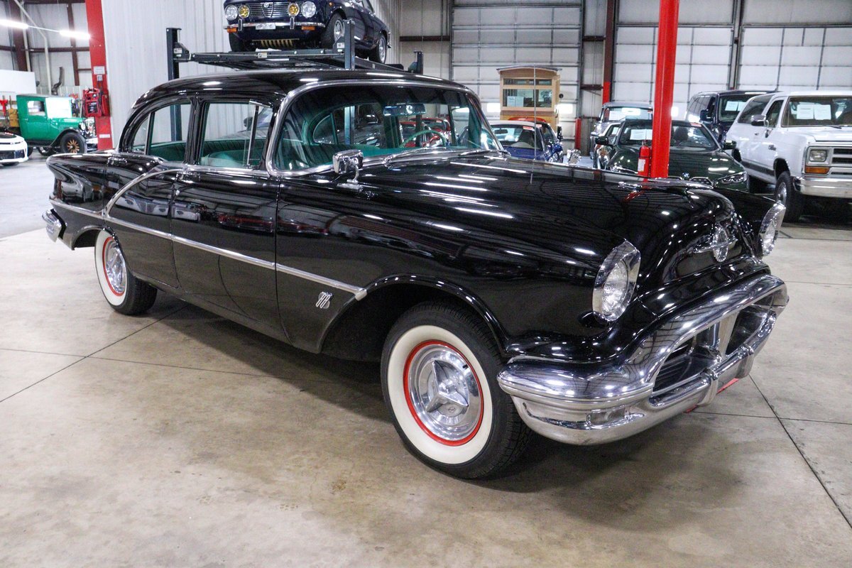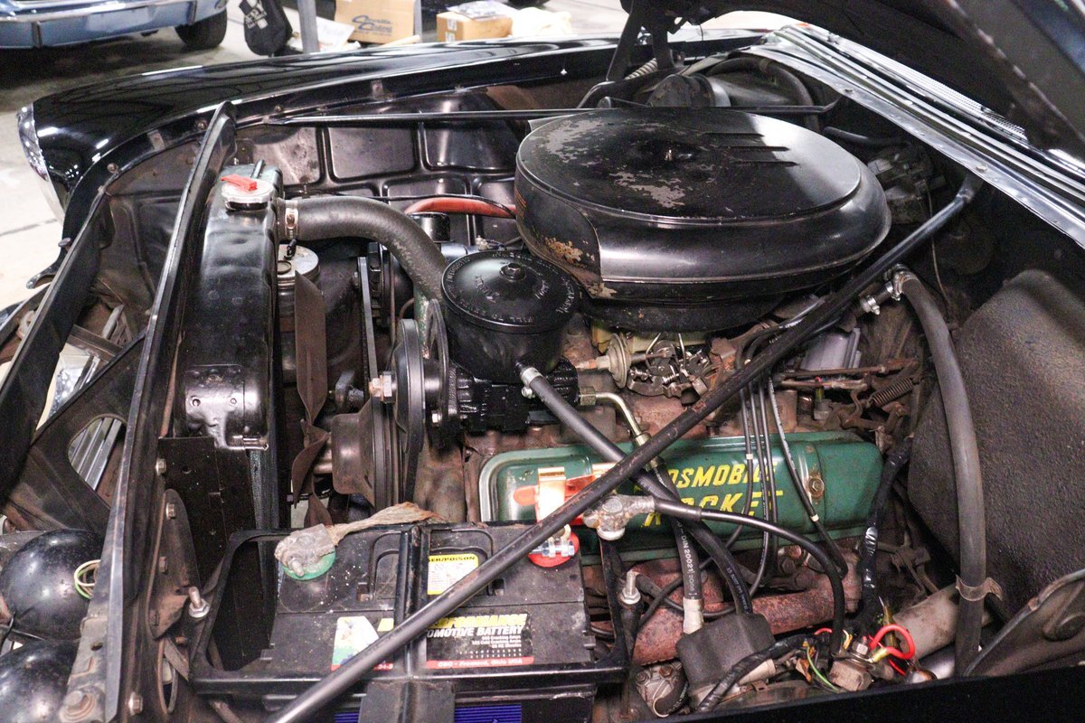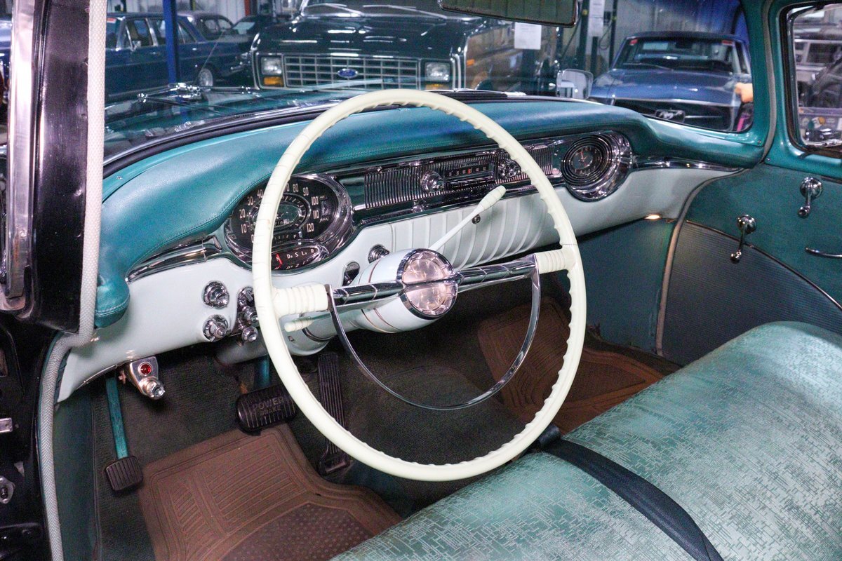 Pleased to present this very nice and very original 1956 Oldsmobile 88 for your condsideration. It is powered by its 324 V8 with a 4 barrell carburetor along with an automatic transmission. The current owner is an Oldsmobile enthusiast and did the following mechanical upgrades: rebuilt front suspension, rebuilt brake system including hydro-vac unit for power brakes, re-cored radiator, reconditionined carburetor, reconditioned steering box, and power steering pump that uses only Type F auto transmission fluid.