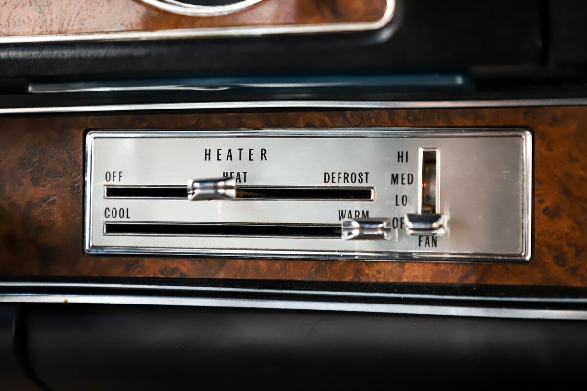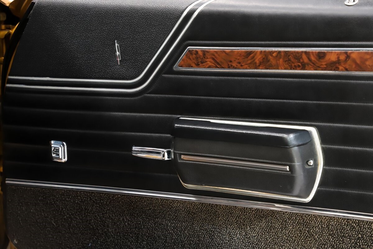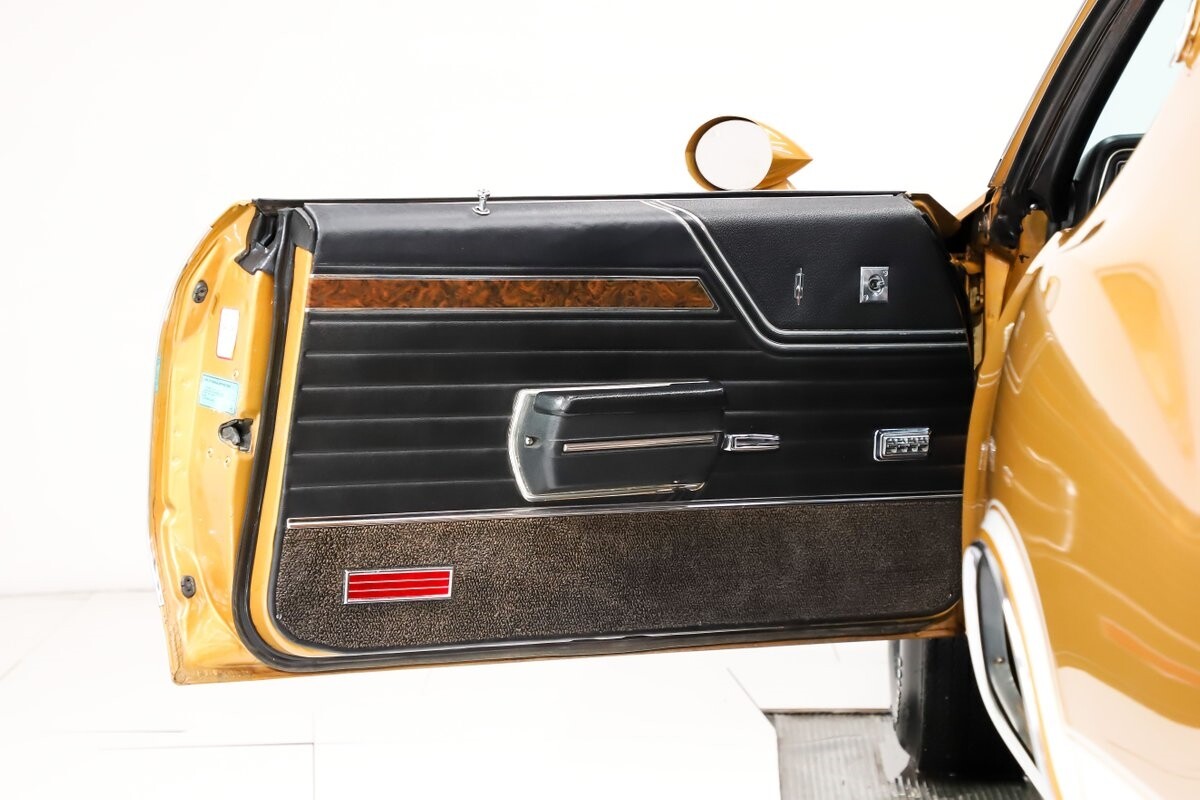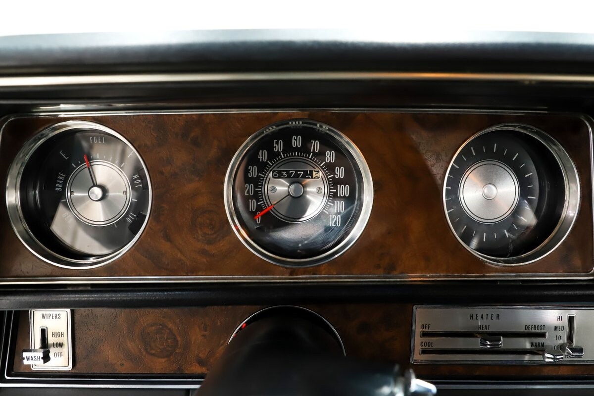 INTERIOR: All original interior and it looks close to new! All the upholstery, door panels, carpet, headliner are original and still looks great. The dash area is mint- knobs, heater controls, lenses, vents etc. He did not order gauges because he preferred his own. You can see the indentation on the dash from his tachometer. It has the lamp group, original mats, vanity mirror and a sport wheel. He also ordered power windows. The seatbelts, visors, rear shelf are mint. Original Hurst shifter for a bench seat.