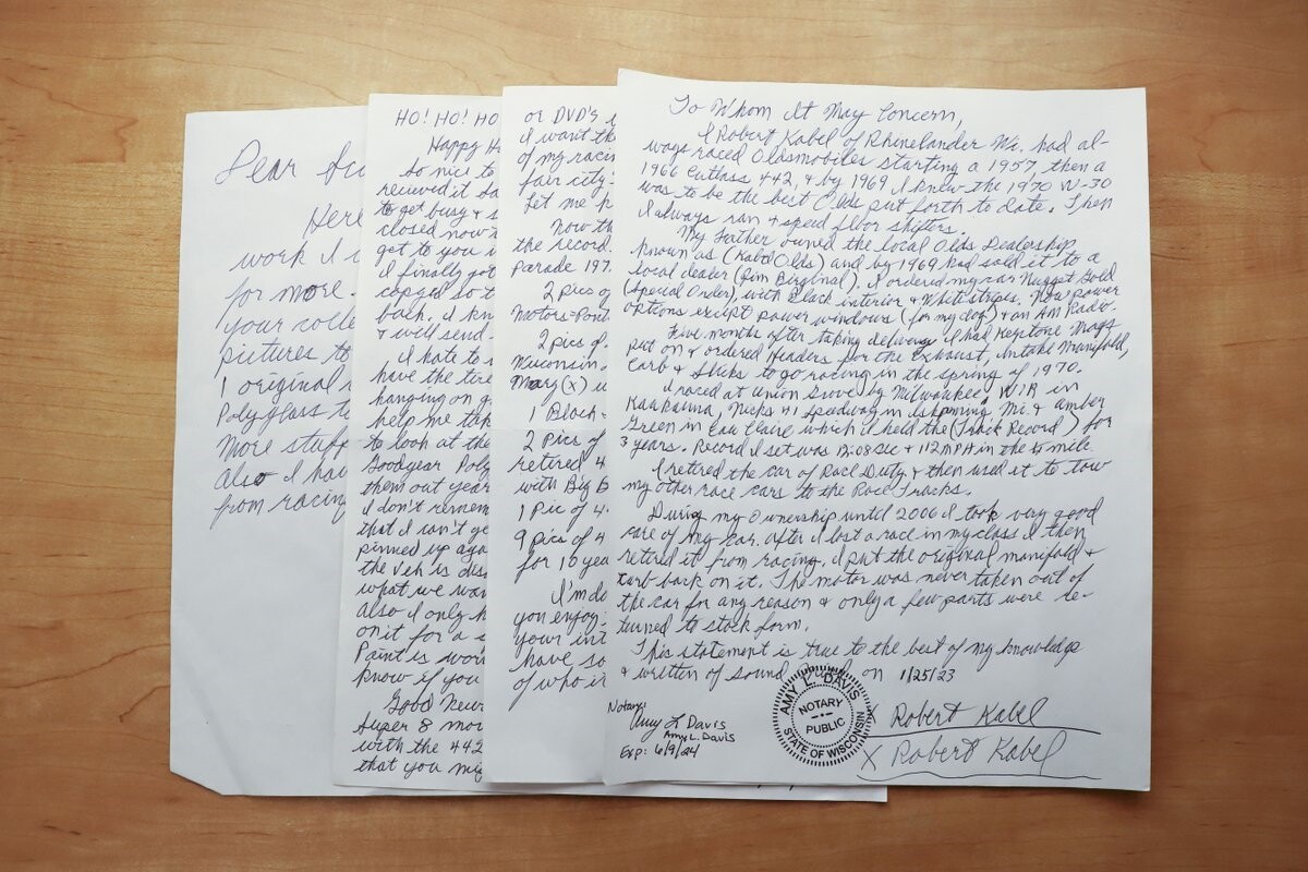 This is collector's gold! The car by itself is worth what we are asking. I honestly feel the iron clad documentation is invaluable, fun and interesting. Worth it's own weight in gold. All the years I've been doing this I have never seen documentation this good. Not to mention it happens to be with one of the most desirable muscle cars there are!