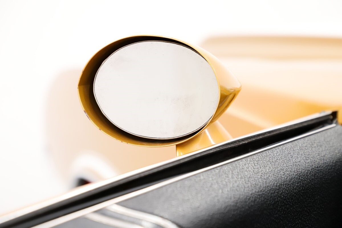 EXTERIOR: All original metal and ram air hood. A good portion of the car still wears its original paint! Special ordered Nugget Gold, it has - on the trim tag. I think the paint shows very well for a survivor. The patina includes typical chips and scratches character. The stripes are original from the factory. In 1973 it was bumped in back; the trunk lid was repainted. The ram air hood is original with no cracks! It has the optional 1970 only sport mirrors. Original chrome, trim, grills except the rear bumper which was replaced in 1973. It still has its original metal door edge guards. Original glass and weatherstrips still in very good condition. Those are the original rims with reproduction tires. It still has the original tow bar that was used to take it to the track!