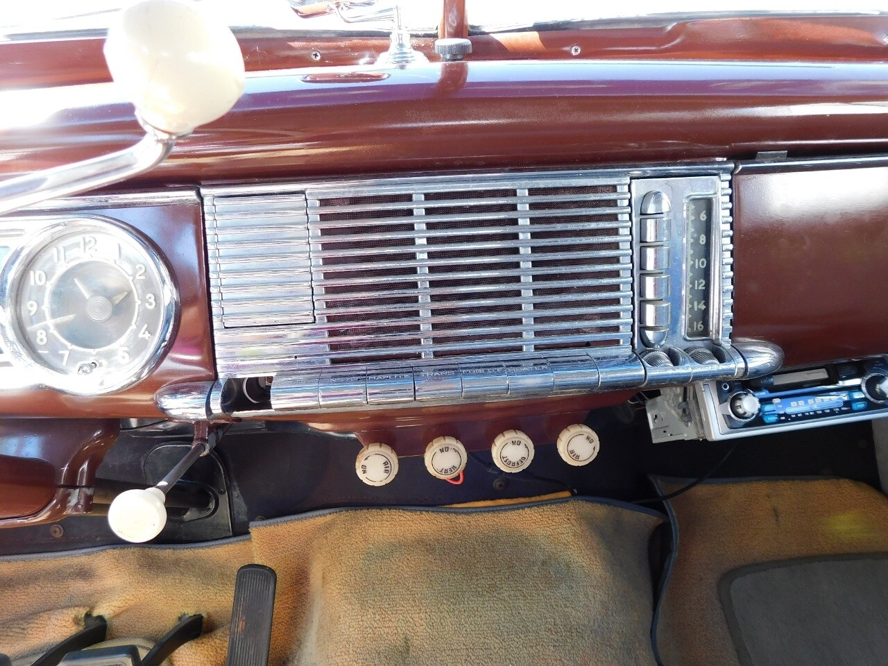 The interior of this Packard is designed with both functionality and elegance in mind. The gray cloth seats provide a plush and inviting atmosphere, while the inclusion of seatbelts adds a layer of safety for peace of mind. The dashboard features an AM radio, allowing you to enjoy classic tunes as you cruise down the road, bringing a touch of nostalgia to every journey.
