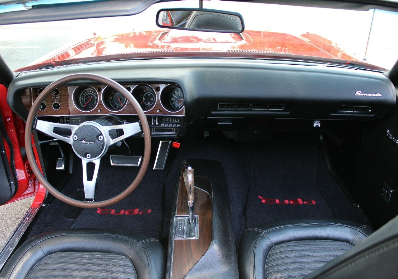 Safety and style go hand in hand with this classic car. It is equipped with seatbelts for added security, and the rally wheels enhance its aggressive stance. The combination of these features makes the 1970 Plymouth Barracuda not just a car, but a statement of automotive excellence.
