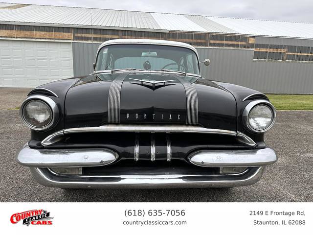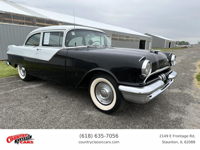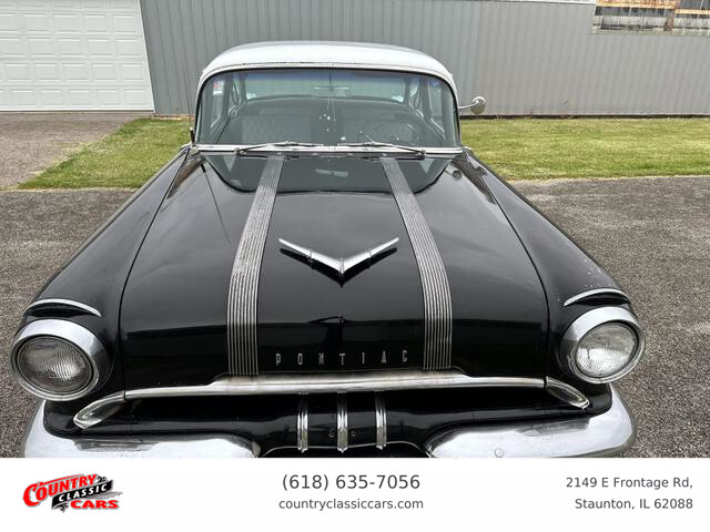 Available now is this classic 1955 Pontiac Chieftain 2 door dressed in a two-tone black and white sitting on new wide white wall tires all around. The interior is in great condition finished in black and white. The car is powered by a 287 V8 engine mated to an automatic transmission with only 87,771 actual miles. The car has new tires, new brakes, new valve cover gaskets, and a new battery. It is an excellent cruiser and would be a perfect car for a Route 66 trip.
