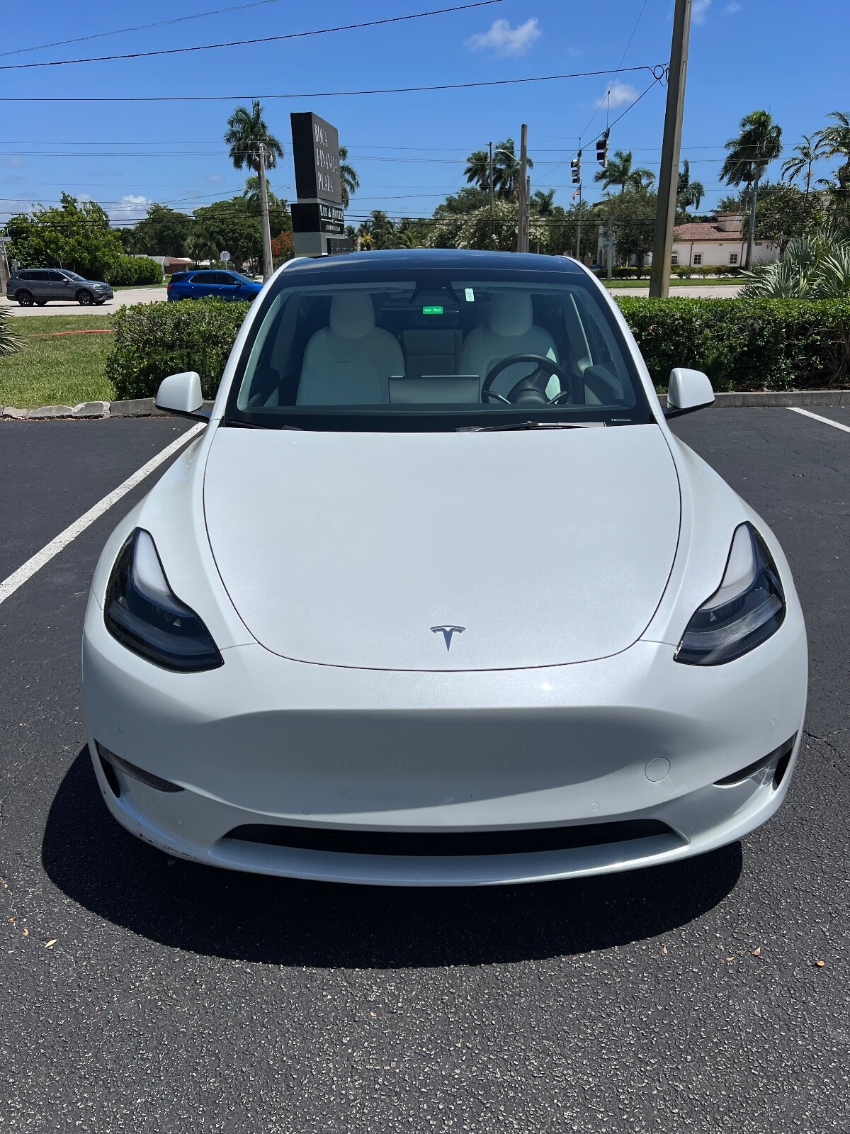This Pearl White 2022 Performance Long Range Model Y has been impeccably maintained and cared for. Right front bumper has few tiny scratches. Rear hatch has one tiny scratch. Otherwise it's in perfect condition. White leather interior. You are welcome to inspect the car in person in Parkland or Boca Raton, FL.