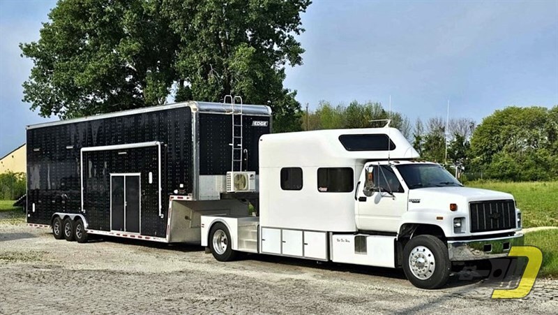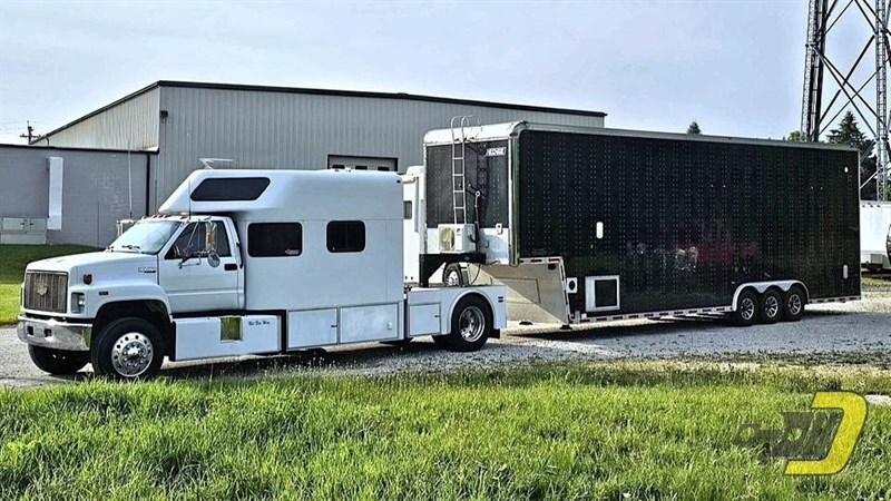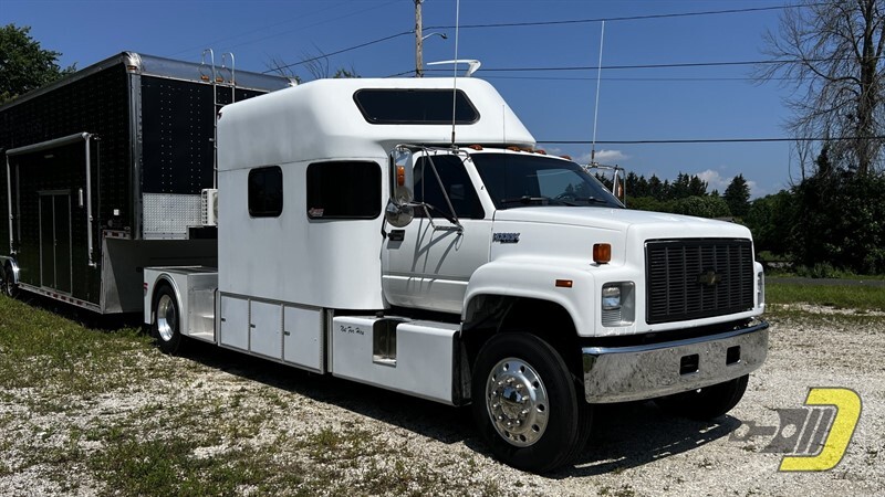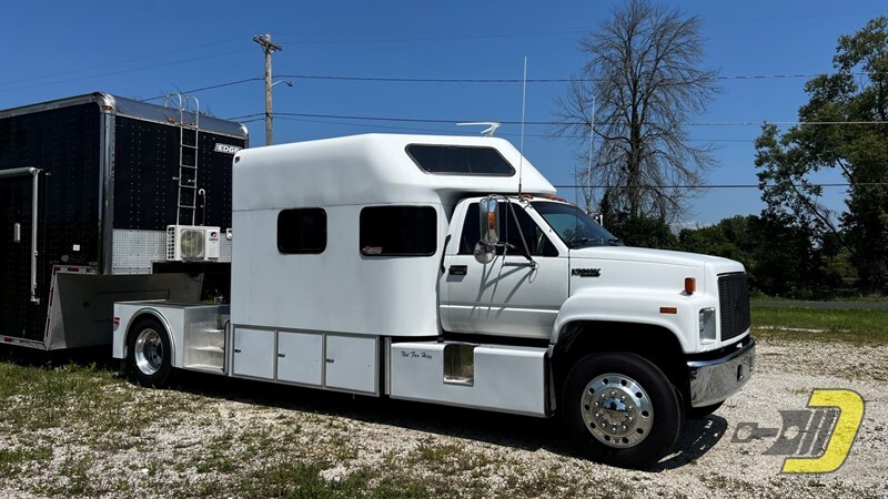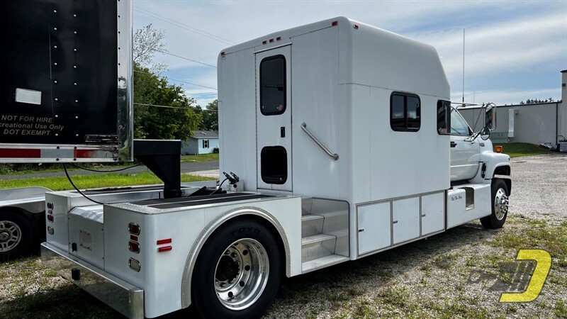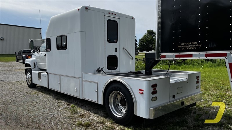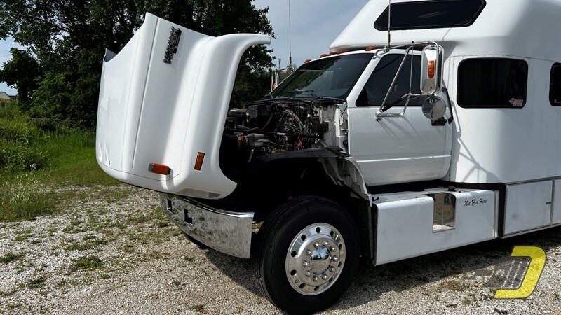 This Kodiak was sold new with a Goldrush toterhome conversion by Monroe Truck Equipment. It remained with its original owner until 2017 and was always stored indoors. The odometer reads 256,076 miles which is deemed accurate. The unit is powered by a great running Caterpillar 3116 turbo diesel backed by an Allison MT600 automatic transmission. It also has air brakes. The primary trailer connection is a trailer saver air ride hitch with a gooseneck ball. Both air and electrical connections are provided. There is also a conventional hitch receiver for smaller trailers. Note the tires were replaced in the spring of 2024.