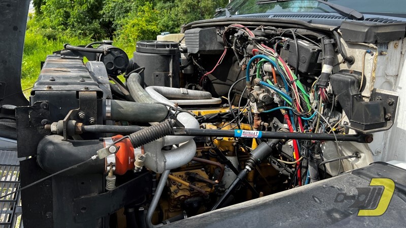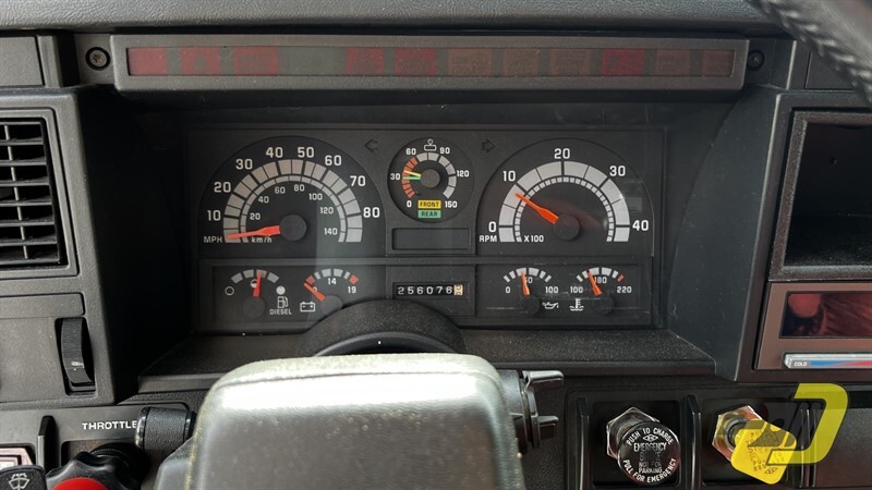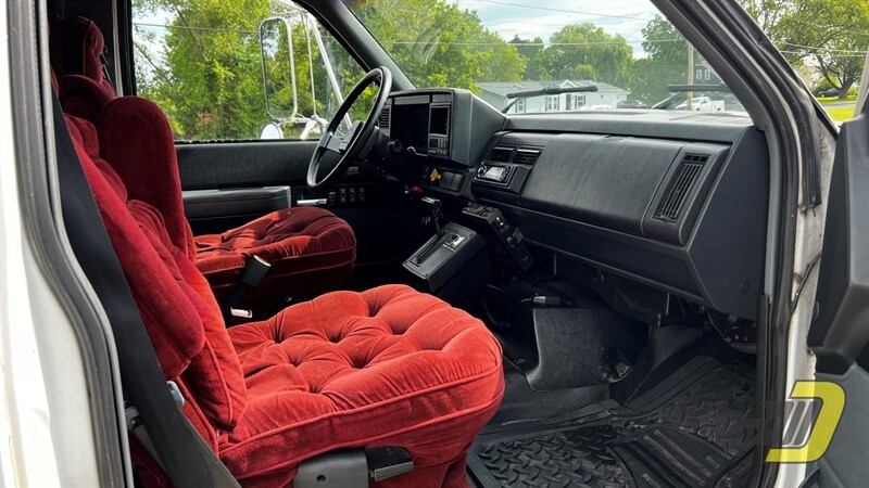 The cockpit has dual bucket seats with air ride for the driver. The dash a/c has been converted to R134a and blows cold. A digital stereo is present along with a CB radio. There is also an idle adjuster and functional cruise control. The horn, wipers, heater, defroster, headlights, turn signals, and running lights all work properly as well.