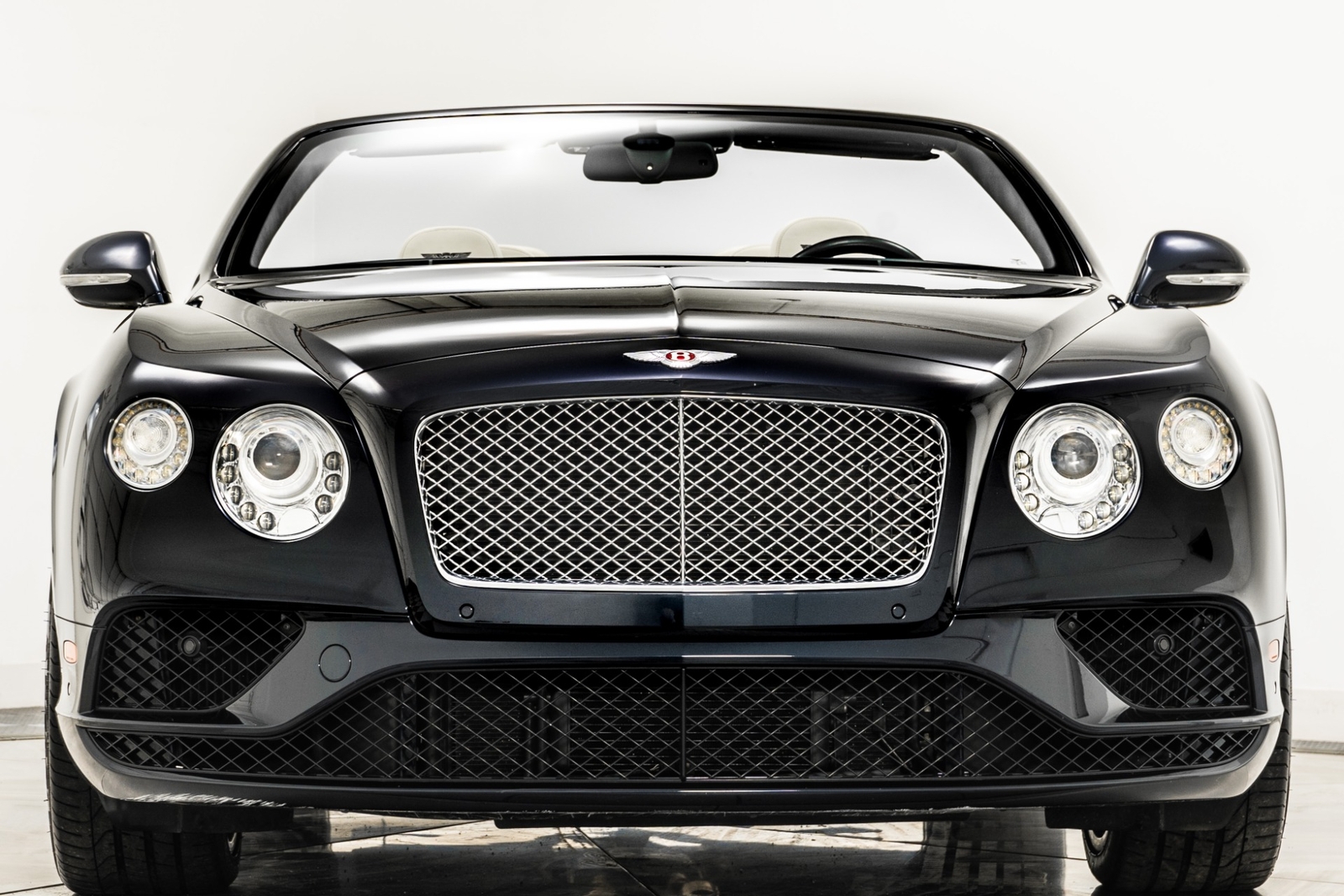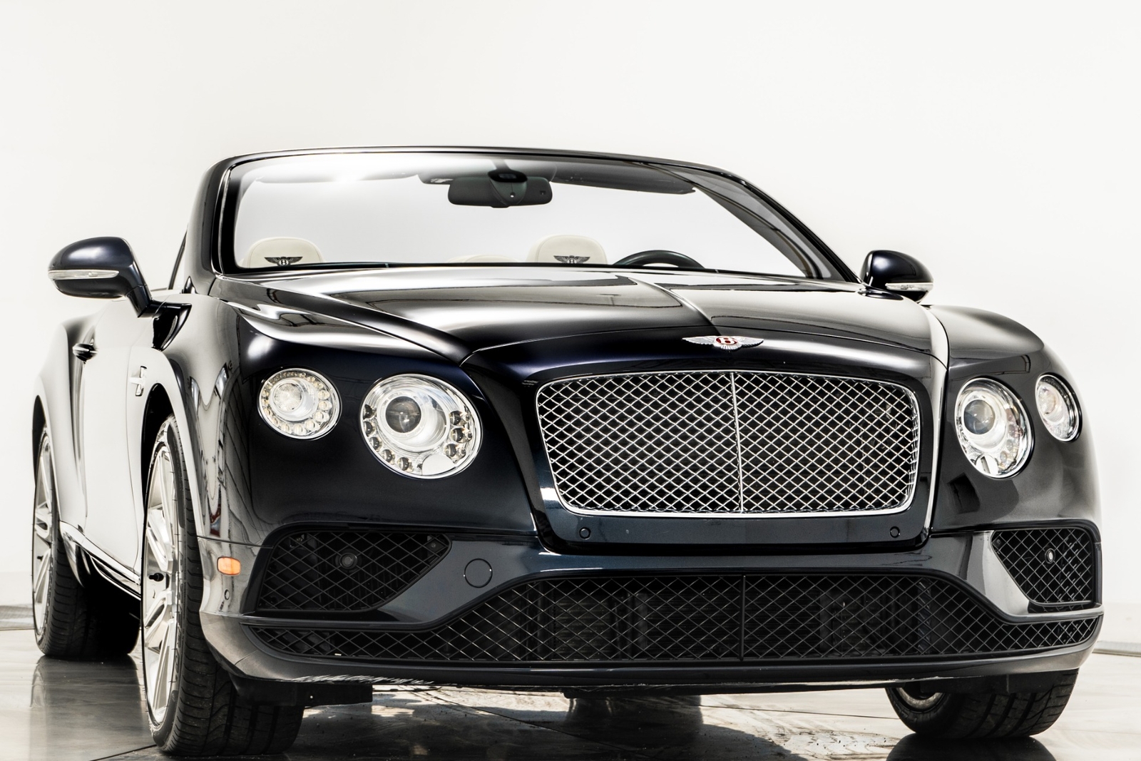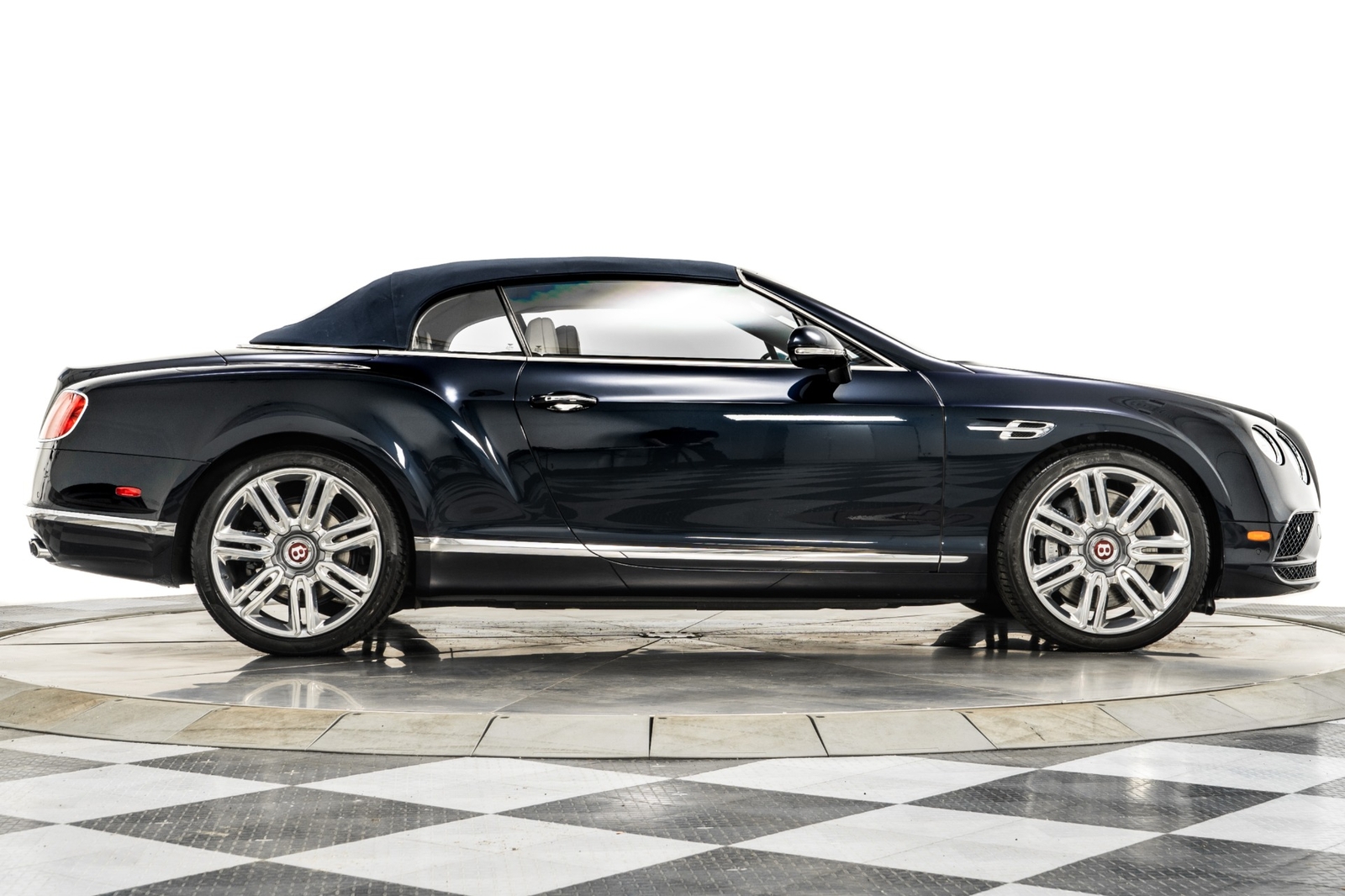 We have just added to our extensive exotic car inventory a beautiful 2017 Bentley Continental GTC V8 in Dark Sapphire Metallic with Linen leather interior and only 16,402 miles. This GTC is loaded with: 4.0L twin turbo V8, automatic transmission, Mulliner Driving Specification with polished 21 inch seven split-spoke wheels, massage front seats with heat and ventilation, neck warmer, contrast stitching, burl wood veneers, three spoke steering wheel, split center armrest, Bentley wings embroidered in all headrests, drilled alloy sports foot pedals, knurled sports gear lever, Navy secondary hide, center console storage case, rear view camera, dark blue convertible top, floor mats, valet key, battery charger and much more.