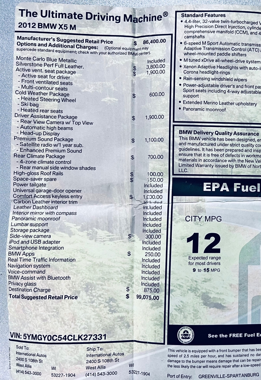 2012 BMW X5 M Cold Weather, Driver Asst, Prem Sound! Upgraded In Monte Carlo Blu