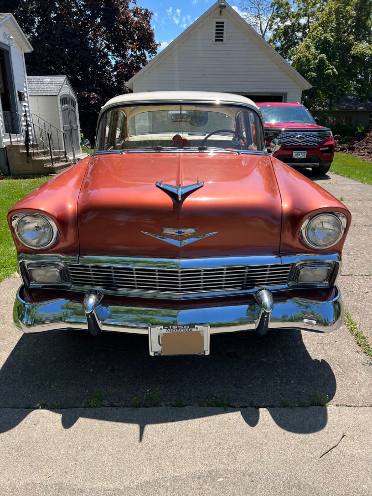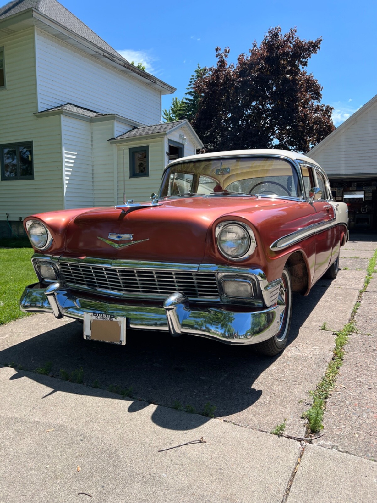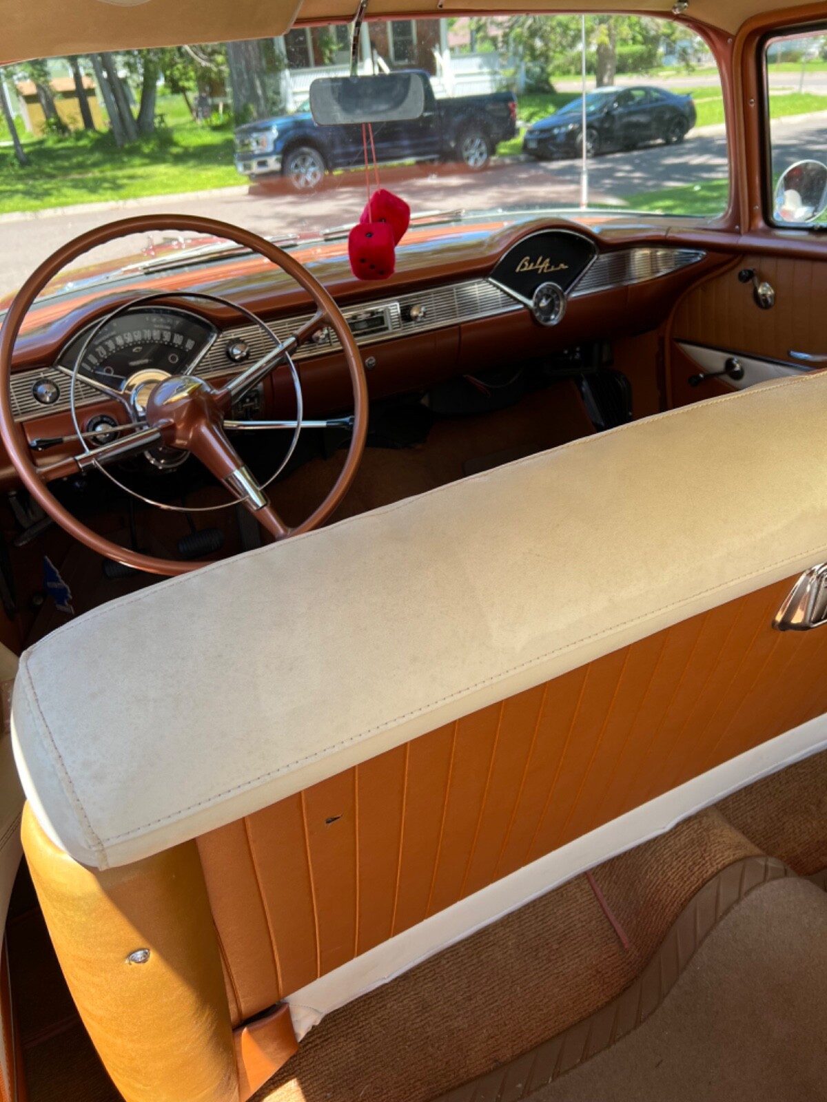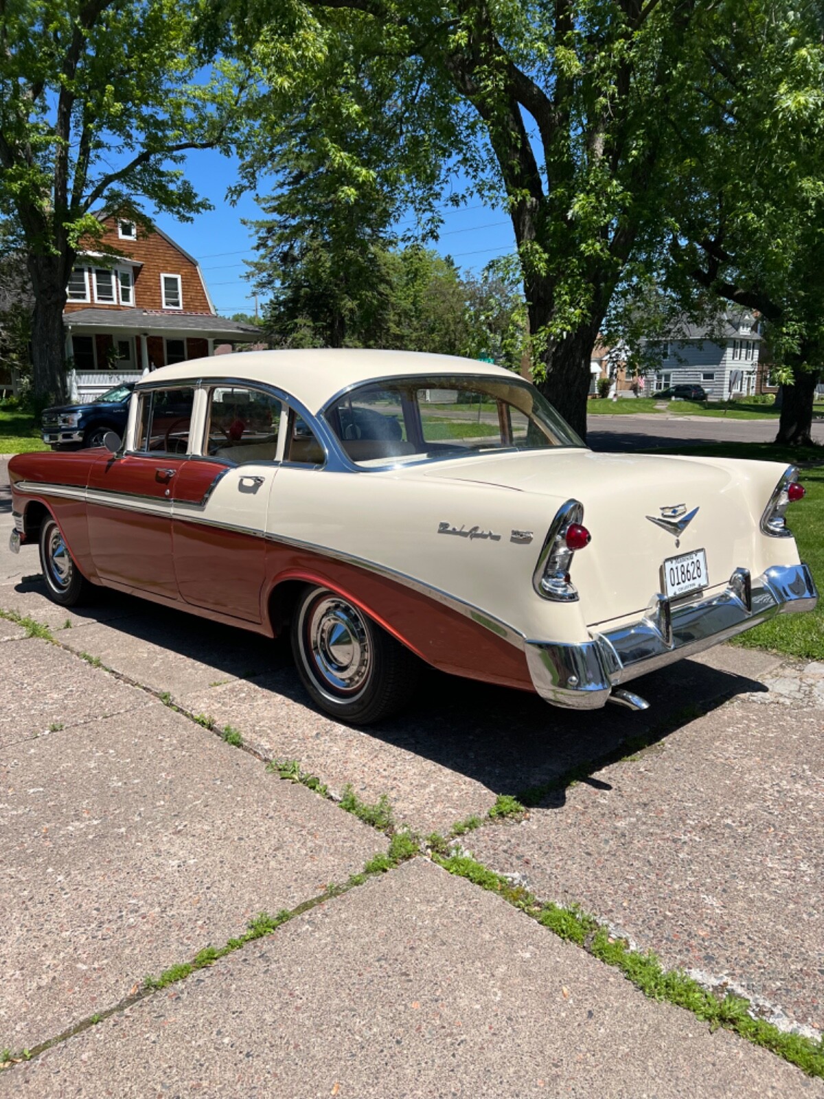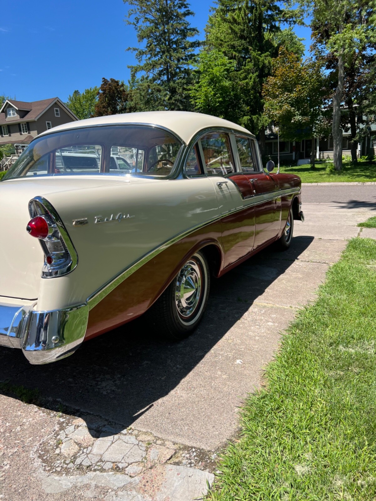 Very nice, complete, and mostly restored 56 Chevy Bel Air four door sedan. Very original. So much has been done. New tires with original wheels, wheel covers, and spare. Excellent running original 265ci V-8 and smooth column 3 speed manual transmission. Interior is very good. Dash looks near perfect. Engine compartment has been detailed. Nearly rust free car with clean underside. Doors open and close perfectly. Glass is clear. Original looking radio with am/fm. Trunk area shows nicely with a couple surface rust spots that are very minimal. She drives down the road like new. Car came from Iowa, shows 49,000 miles. It has been completely repainted in the original colors and shines nice. The body work on the passenger door and a few other spots is less than perfect but still shows ok. It doesn’t bother me because even though it’s a beautiful 67 year old car. It is driver quality and not a show car. But it shows nicely at local events. Drive it anywhere. So comfortable. For sale by owner. Buyer pays