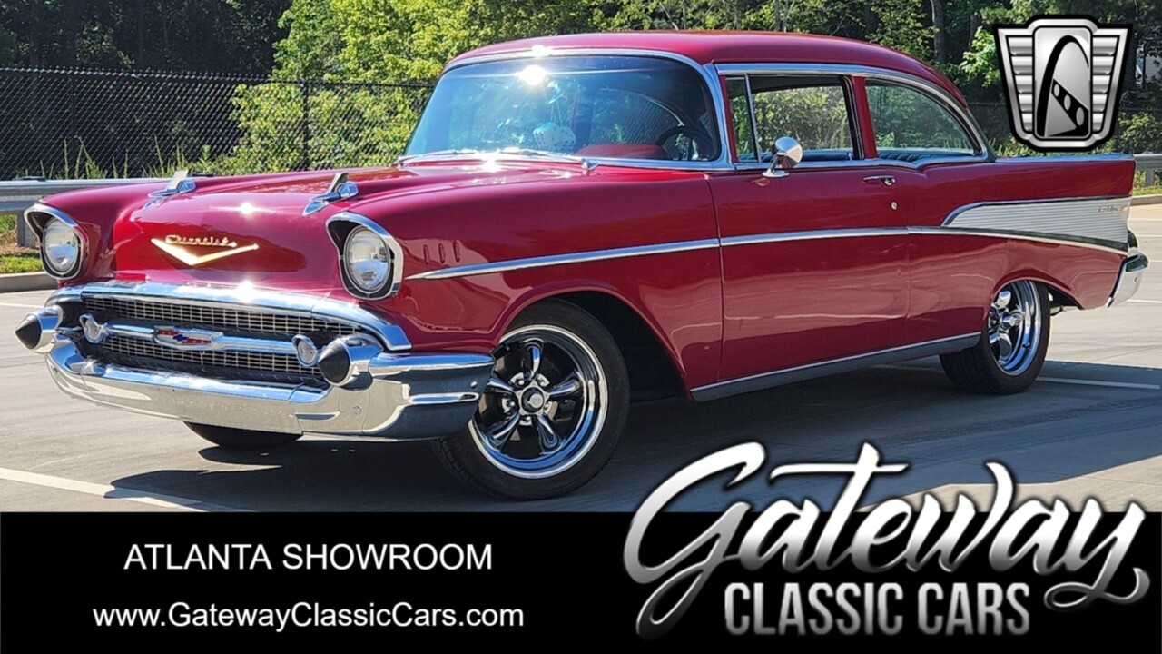 Gateway Classic Cars of Atlanta presents this 1957 Chevrolet Bel Air. This iconic American classic where a metallic red exterior that captures attention and admiration wherever it goes. The bold color is complemented by a sleek black vinyl interior, offering a stylish and comfortable cabin for both driver and passengers.