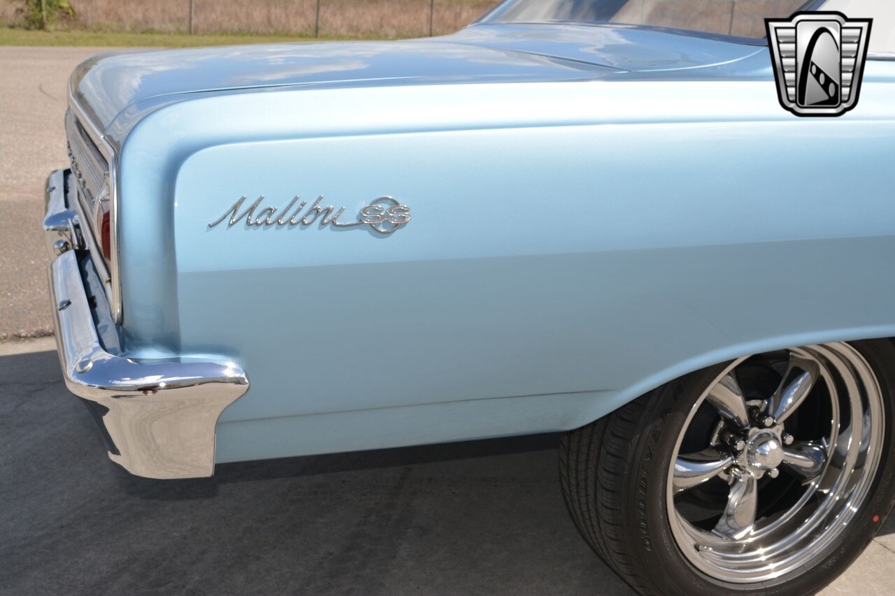 Gateway Classic Cars of Tampa is proud to offer this lovely 1965 Chevrolet Malibu SS. First gen Malibu's are currently skyrocketing in value. The crisp tidy styling, light weight, and relatively restrained size made the 1964-1965 Malibu and Chevelles an American performance classic. This 65 Malibu SS is a great example of the breed. It was repainted in its original factory colors, with a Mist Blue body and Ermine White roof. The interior is blue with buckets up front and no center console. The seats and door cards appear near new. The carpet is in great shape as well. Under the hood is a non-number matching 350 V8 with a spicy cam. The engine is fed via a Brawler 4-barrel carburetor, flowing fuel, and air through a Edlebrock intake manifold and AFR heads, then exiting through long tube exhaust headers. This thing sounds MEAN. Power is sent to an aftermarket 10 bolt rear end. Keeping this car shiny side up could be a challenge with a hot V8. Fortunately, this 65 Malibu SS sits on tubular control arms up front with bigger anti roll bars front and rear, plus adjustable trailing links to keep the rear axle in check. Stopping power is provided by disk brakes up front and drums in the rear. [ omitted ]. [ omitted ]. Our Tampa Showroom is located at 361 30th Street NE Ruskin, FL 33570. [ omitted ].