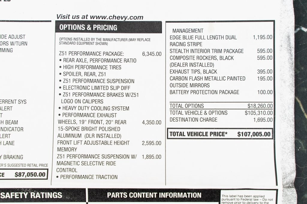 Z51 PERFORMANCE SUSPENSION W/ 1,895.00