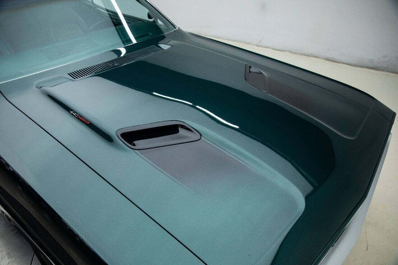 1974 Dodge Challenger This rotisserie restored car has the attention to detail and the quality of parts used in this fine Challenger are quite evident. This is not just one of those cars that looks sitting still, it has been built to drive and enjoy. It goes down the road quick and smooth delivering you that undeniable muscle car note with the performance to match. Powered by a NOM 440 CID V8 and 727 Torque flite transmission. this one is a riot to drive. Hydrovac boosted 4 wheel disc brakes give you the stopping power you desire. If your check book could stand it, you would be writing checks for much more than buying this one done today, now is your opportunity to enjoy the fruits of another's labor. Features 440 CID block plenty of power to quicken your pulse The carb is a Edelbrock 750 CFM Those horses are channeled through a Torque flite 727 with Slap Stick Shifter with pistol grip. The interior is true to original with Green bucket seats and a full console There are a full set of Rallye gauges in the dash including tachometer and under dash gauges. Power Steering aids in the comfortable control. The wheels are fabulous 15 inch Rallye wheels with RWL BF Goodrich radials. In the dash is a newer CD player with auxiliary input. The exhaust note is awesome and is generated by a full dual system with Flo-Pro mufflers. Finished in Green metallic high gloss finish with blackout Hood Treatment along with and driver's and passengers color keyed racing mirrors. The look is accented with a re-chromed front and rear bumpers and black Rallye Strobe side stripes with green vinyl top. The hood is the Dual Scoop Power Bulge along with the Lip Spoiler on the trunk lid and front spoiler. The steering wheel is a stock 3 spoke that is very comfortable. The engine bay is nicely detailed and trunk has mat, and relocated battery. Don't miss out on an opportunity to pick up one of the most desirable body styles out there and set up to enjoy today. As always, we will consider all types of trades. Transportation is available. Why buy from us? We are one of the oldest and largest Midwest dealers who specializes in collector cars, modern muscle cars and imports. We normally have 40-90 collector cars in stock. All of our cars are handpicked purchases, not consignments, that have been evaluated for quality, value and checked over in our shop to assure drivability. These cars are available to look over, test drive and evaluate at our location, by appointment only, due to the extensive amount of travel it takes to find these vehicles. People frequently buy collector cars at auctions and have no idea what they are getting, often regretting the purchase due to issues of condition, drive-ability, paperwork, etc. . We have 40+ year's experience in the automotive industry and can guide our customers through the complete purchase experience including shipping if needed. We will happily consider all types of trades including multiple trades of different types if necessary. We also will purchase restored cars and restored collections of cars. No projects wanted. Please do not hesitate to contact us with any questions regarding a vehicle we have for sale or a vehicle you have for sale.319-462-1045