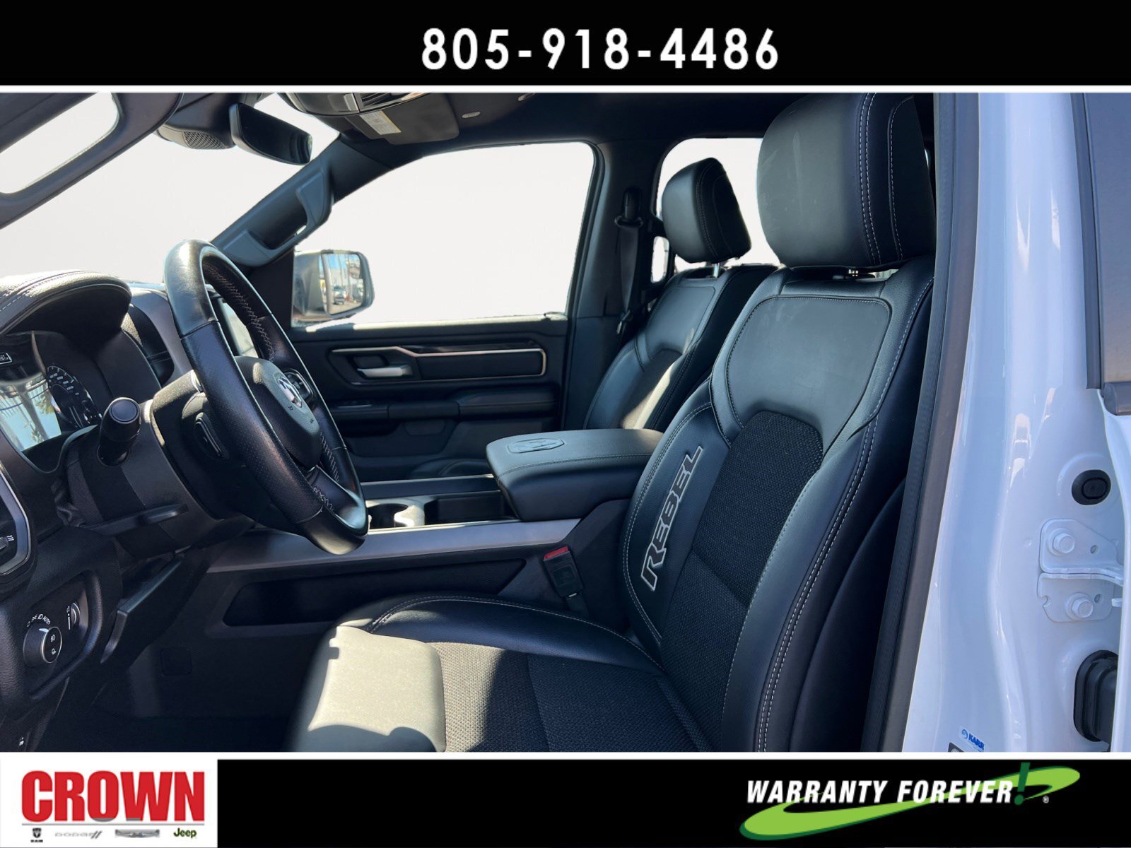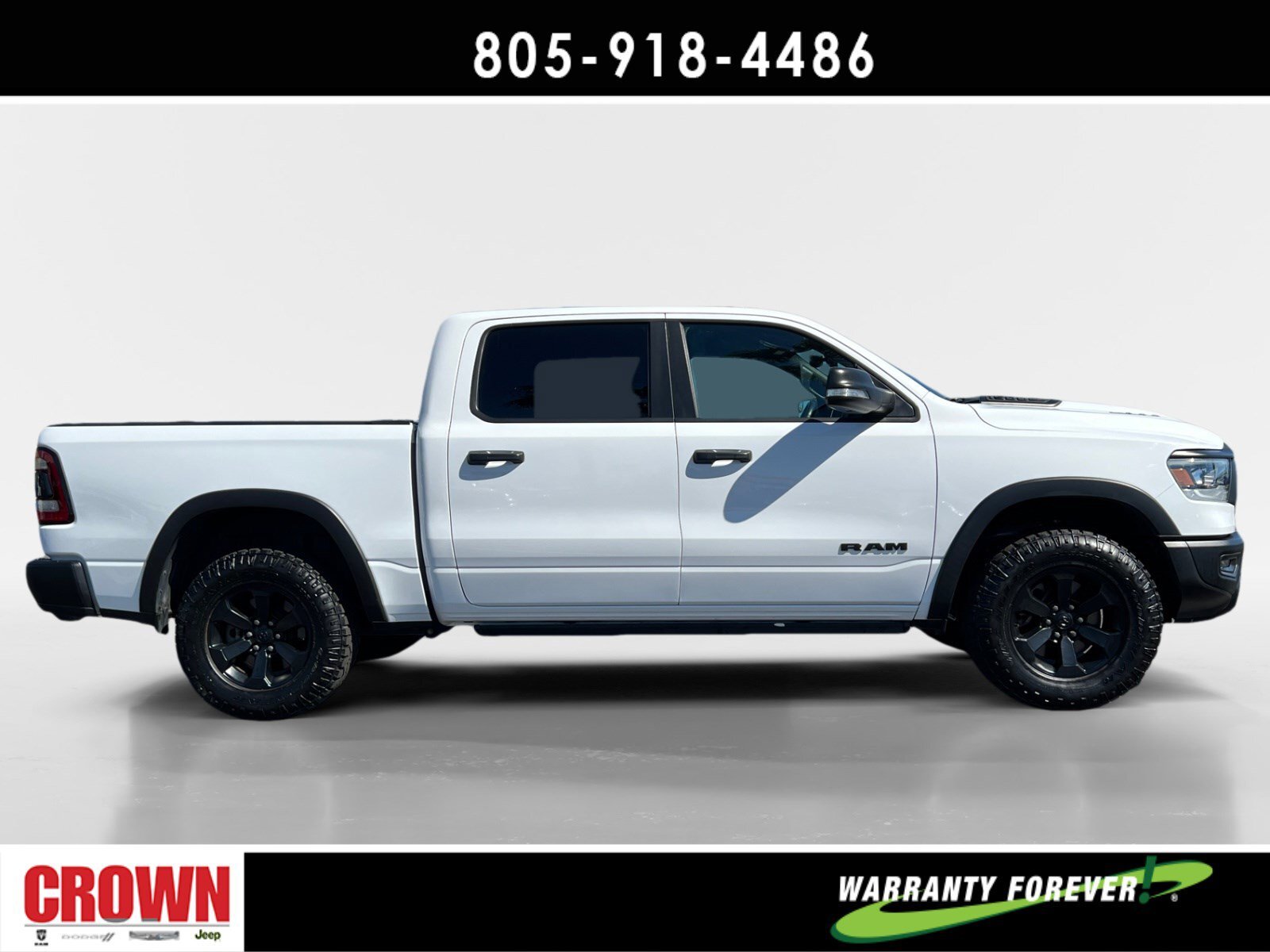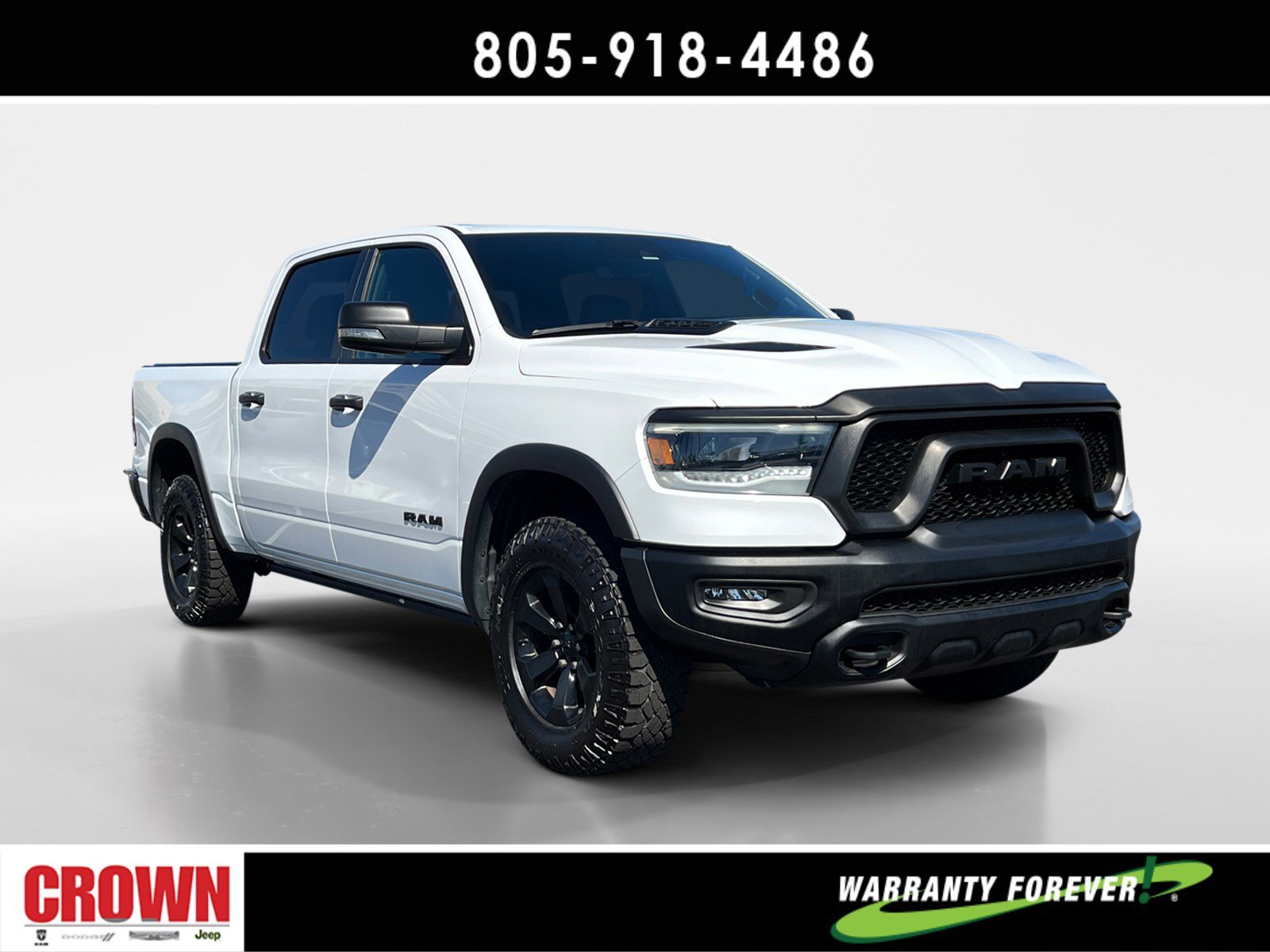 Certified. Bright White Clearcoat 2021 Ram 1500 Rebel 4WD 8-Speed Automatic HEMI 5.7L V8 Multi Displacement VVT ** 1 Owner Clean CarFax **, Air Conditioning, Apple CarPlay, Auto-Dimming Exterior Driver Mirror, Black Front Bumper w/Black Plate, Black Premium Power Mirrors, Compass, Exterior Mirrors Courtesy Lamps, Exterior Mirrors w/Supplemental Signals, Front fog lights, Full Length Upgraded Floor Console, Fully automatic headlights, Google Android Auto, Grille Moustache Black Outline Texture 3, Heated door mirrors, Heated Front Seats, Heated Steering Wheel, Illuminated entry, Integrated Voice Command w/Bluetooth, Night Edition, Outside temperature display, Overhead console, ParkView Rear Back-Up Camera, Power Adjustable Pedals, Power driver seat, Power-Folding Mirrors, Quick Order Package 25W Rebel, Radio: Uconnect 4 w/8.4 Display, RAM Grille Badge - Black, Rear 60/40 Folding Seat, Rear Dome w/On/Off Switch Lamp, Rear step bumper, Rear Wheelhouse Liners, Rear Window Defroster, Rebel Level 1 Equipment Group, Remote keyless entry, SiriusXM Satellite Radio, Speed control, Split folding rear seat, Steering wheel mounted audio controls, Sun Visors w/Illuminated Vanity Mirrors, Universal Garage Door Opener, Wheels: 18 x 8.0 Gloss Black.Odometer is 4538 miles below market average!FCA US LLC Certified Pre-Owned Details:* 125 Point Inspection* Transferable Warranty* Roadside Assistance* Warranty Deductible: $100* Powertrain Limited Warranty: 84 Month/100,000 Mile (whichever comes first) from original in-service date* Vehicle History* Limited Warranty: 3 Month/3,000 Mile (whichever comes first) after new car warranty expires or from certified purchase date* Includes First Day Rental, Car Rental Allowance, and Trip Interruption Benefits. SiriusXM 3 month trial subscription.Awards:* Motor Trend Automobiles of the year * JD Power Automotive Performance, Execution and Layout (APEAL) StudyHere at Crown Dodge Chrysler Jeep RAM, we believe that great service means more than just offering our new Dodge, Chrysler, Jeep, and RAM lineup. We believe that great service also includes helpful advice, friendly car financing, and the highest quality parts and repairs for your car. Our staff works hard to make your full automotive experience at our car dealership in Ventura, CA enjoyable, and we look forward to helping you today! All vehicles at Crown Dodge have our SWAT security system $995,Clear Shield $395, Pulse $395, Wheel Locks $395, Windshield Protection $995, Nitro Fill $499, Screen Protector $395 and $1295 Paint/Fabric Protection pre-installed. Prices on the website do not include dealer-added equipment. Discounts include $2,000 Trade-In Dealer Assist Cash. Must trade in a 2015 or newer vehicle on a retail purchase. Trade-in must have less than 15,000 miles on average per year stated on Carfax Report, clean title, and Clean vehicle history report. Expires 02/19/2024. Expires 02/29/2024.
