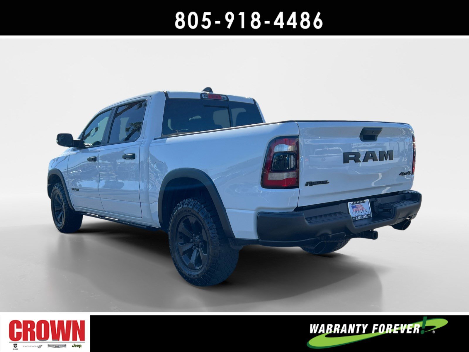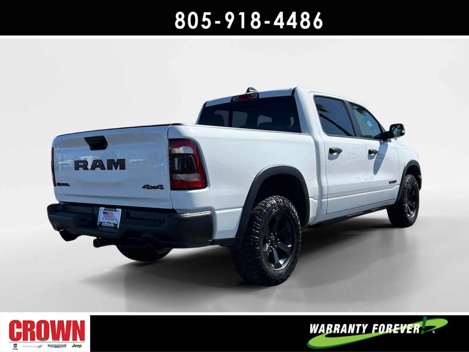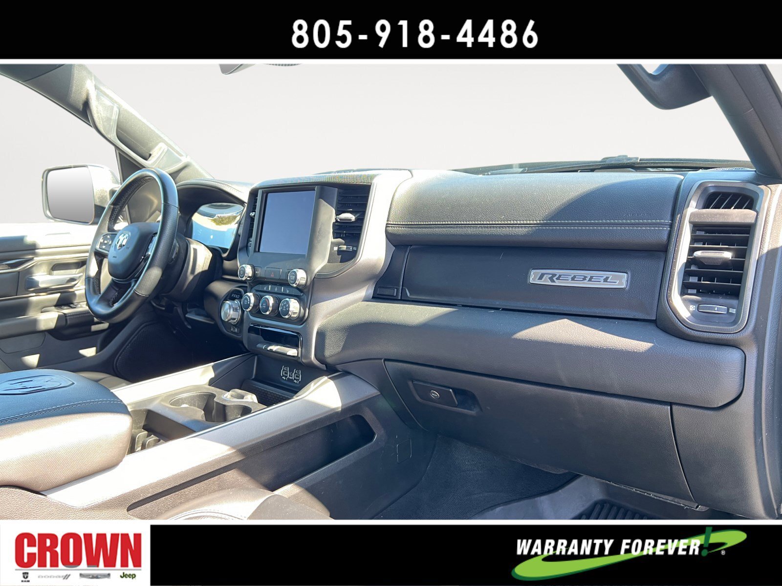 Certified. Bright White Clearcoat 2021 Ram 1500 Rebel 4WD 8-Speed Automatic HEMI 5.7L V8 Multi Displacement VVT ** 1 Owner Clean CarFax **, Air Conditioning, Apple CarPlay, Auto-Dimming Exterior Driver Mirror, Black Front Bumper w/Black Plate, Black Premium Power Mirrors, Compass, Exterior Mirrors Courtesy Lamps, Exterior Mirrors w/Supplemental Signals, Front fog lights, Full Length Upgraded Floor Console, Fully automatic headlights, Google Android Auto, Grille Moustache Black Outline Texture 3, Heated door mirrors, Heated Front Seats, Heated Steering Wheel, Illuminated entry, Integrated Voice Command w/Bluetooth, Night Edition, Outside temperature display, Overhead console, ParkView Rear Back-Up Camera, Power Adjustable Pedals, Power driver seat, Power-Folding Mirrors, Quick Order Package 25W Rebel, Radio: Uconnect 4 w/8.4 Display, RAM Grille Badge - Black, Rear 60/40 Folding Seat, Rear Dome w/On/Off Switch Lamp, Rear step bumper, Rear Wheelhouse Liners, Rear Window Defroster, Rebel Level 1 Equipment Group, Remote keyless entry, SiriusXM Satellite Radio, Speed control, Split folding rear seat, Steering wheel mounted audio controls, Sun Visors w/Illuminated Vanity Mirrors, Universal Garage Door Opener, Wheels: 18 x 8.0 Gloss Black.Odometer is 4538 miles below market average!FCA US LLC Certified Pre-Owned Details:* 125 Point Inspection* Transferable Warranty* Roadside Assistance* Warranty Deductible: $100* Powertrain Limited Warranty: 84 Month/100,000 Mile (whichever comes first) from original in-service date* Vehicle History* Limited Warranty: 3 Month/3,000 Mile (whichever comes first) after new car warranty expires or from certified purchase date* Includes First Day Rental, Car Rental Allowance, and Trip Interruption Benefits. SiriusXM 3 month trial subscription.Awards:* Motor Trend Automobiles of the year * JD Power Automotive Performance, Execution and Layout (APEAL) StudyHere at Crown Dodge Chrysler Jeep RAM, we believe that great service means more than just offering our new Dodge, Chrysler, Jeep, and RAM lineup. We believe that great service also includes helpful advice, friendly car financing, and the highest quality parts and repairs for your car. Our staff works hard to make your full automotive experience at our car dealership in Ventura, CA enjoyable, and we look forward to helping you today! All vehicles at Crown Dodge have our SWAT security system $995,Clear Shield $395, Pulse $395, Wheel Locks $395, Windshield Protection $995, Nitro Fill $499, Screen Protector $395 and $1295 Paint/Fabric Protection pre-installed. Prices on the website do not include dealer-added equipment. Discounts include $2,000 Trade-In Dealer Assist Cash. Must trade in a 2015 or newer vehicle on a retail purchase. Trade-in must have less than 15,000 miles on average per year stated on Carfax Report, clean title, and Clean vehicle history report. Expires 02/19/2024. Expires 02/29/2024.