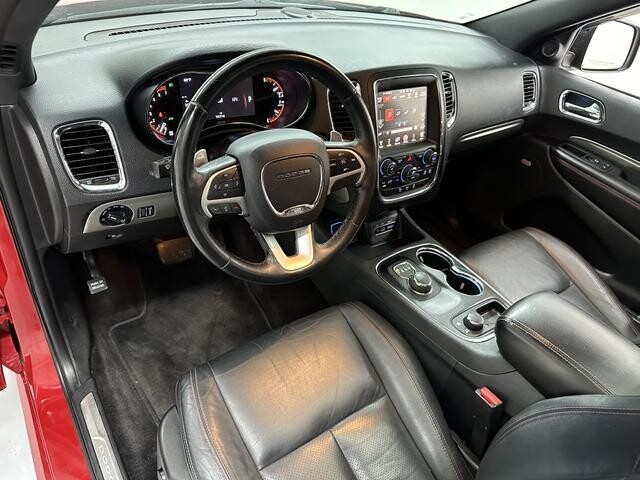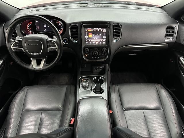 Have a look at this Low Miles, Super Clean, Low Miles, Adult Owned, Serviced, Accident Free, & Non Smoker 2015 Dodge Durango R/T AWD SUV with Redline Pearl Exterior Paint over Black Leather Interior Upholstery. This Durango is Equipped with a 360 Horsepower 5.7L V8 HEMI Engine Coupled with 8-Speed Automatic Transmission.