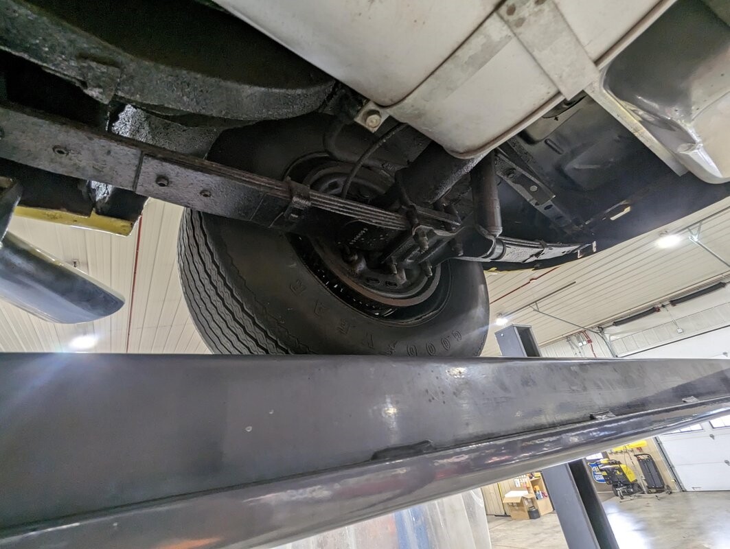 SERVICE: Our shop inspected the car and we gave it an oil change, lowered the idle, adjusted the carbs and timing, replaced the fuel pump and the diaphragms in the secondary carbs, tightened the belts, replaced the water pump, cleaned the blower switch, replaced a brake light and lubed the rear window regulator.