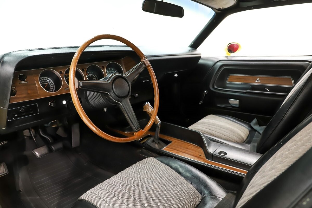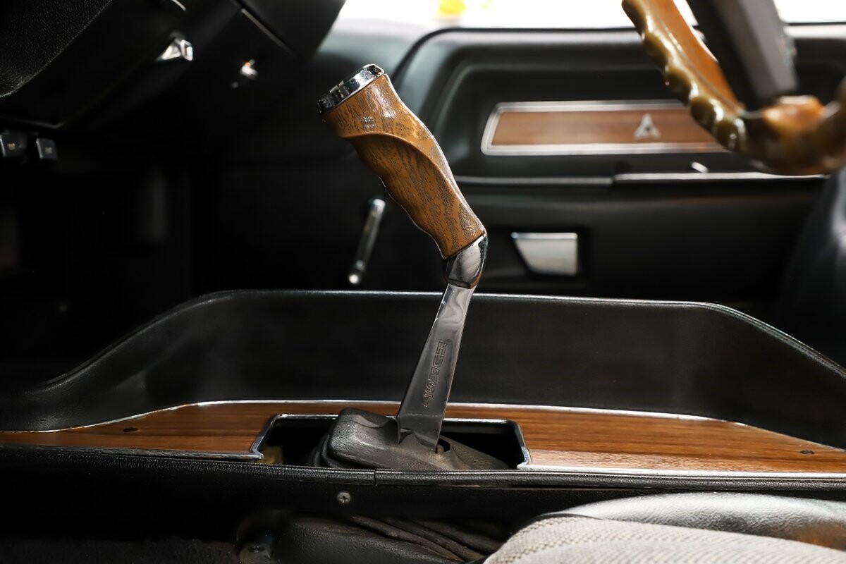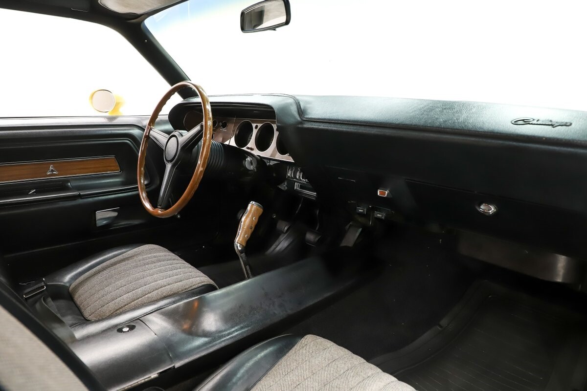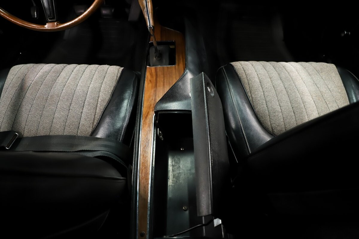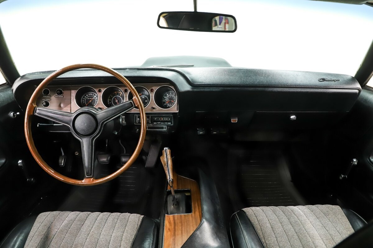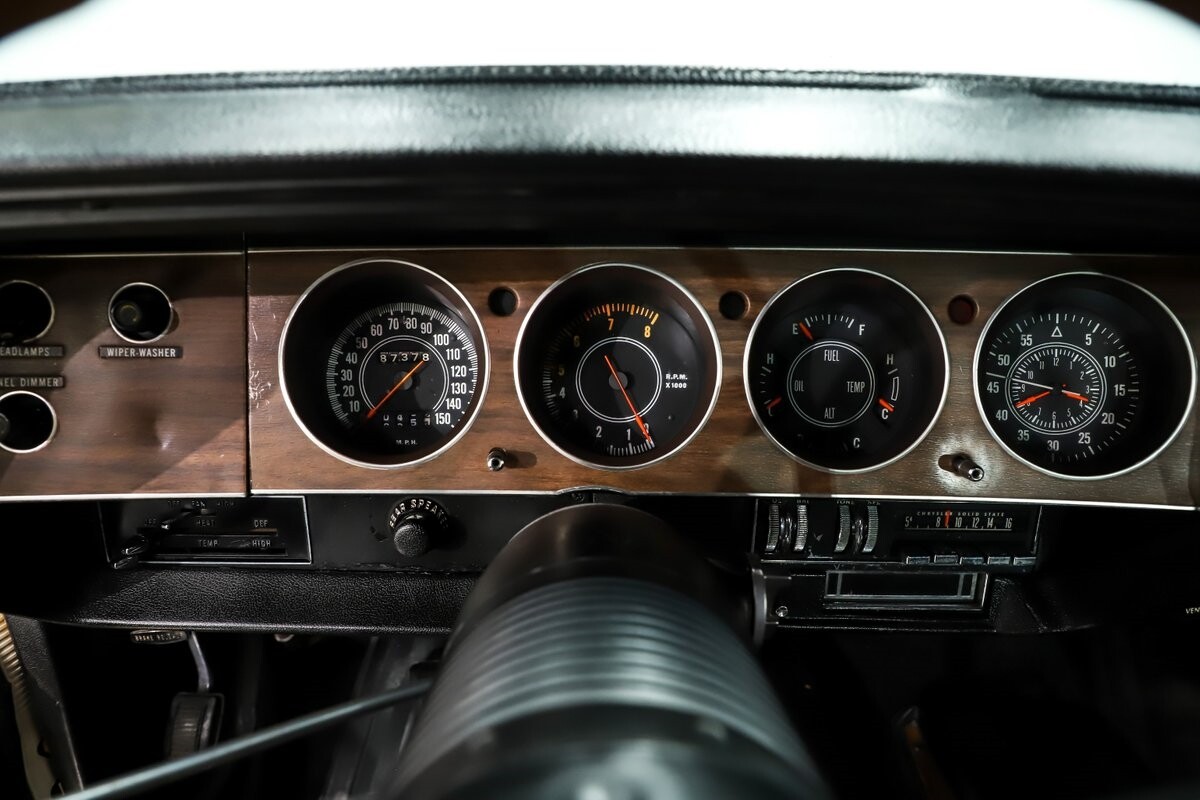 INTERIOR: This is an all original interior in really great, unabused condition. The dash pad is original which means the VIN tag has never been removed! The dash pad has no splits and it has stereo speakers for the 8-track. Rare original vinyl and cloth upholstery. All of the plastic trim looks great including door panels and console. The carpet was replaced. The headliner and visors look original and in excellent shape. Optional rallye dash includes gauges, a tachometer and woodgrain. Interior light and reverse light indicator work. The highlight of the interior is the pistol grip shifter!