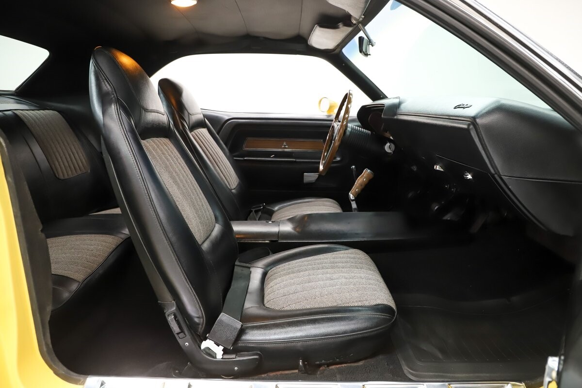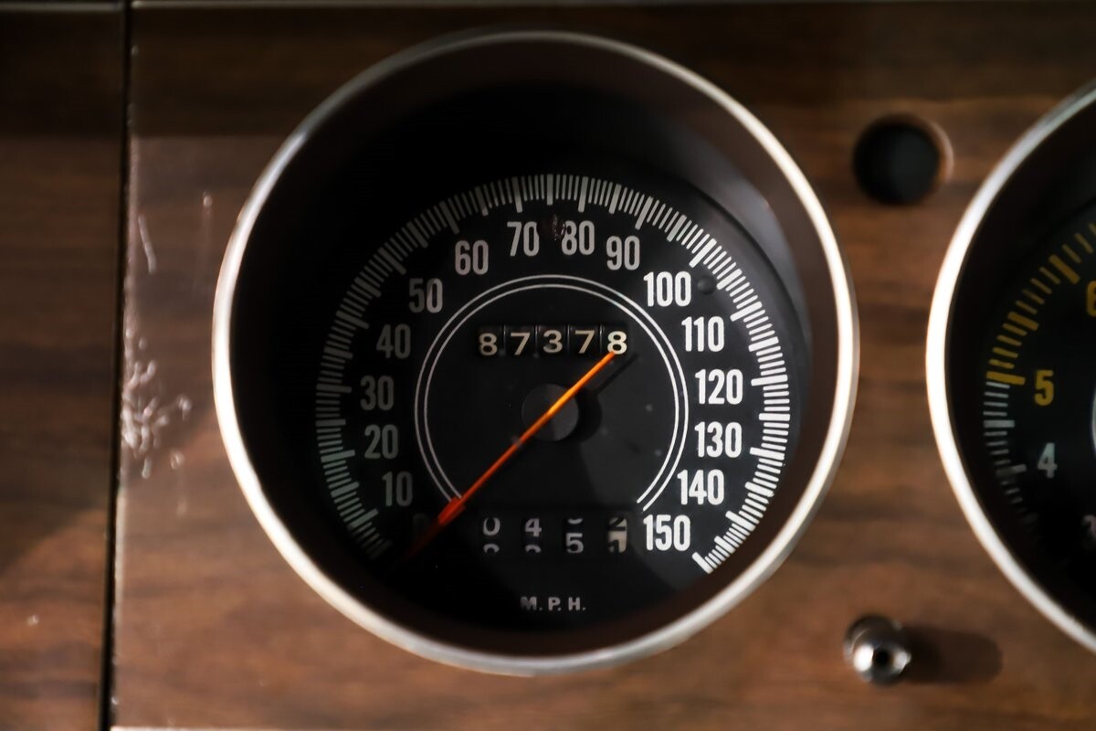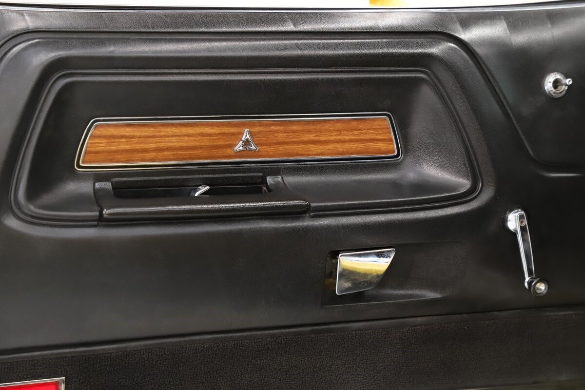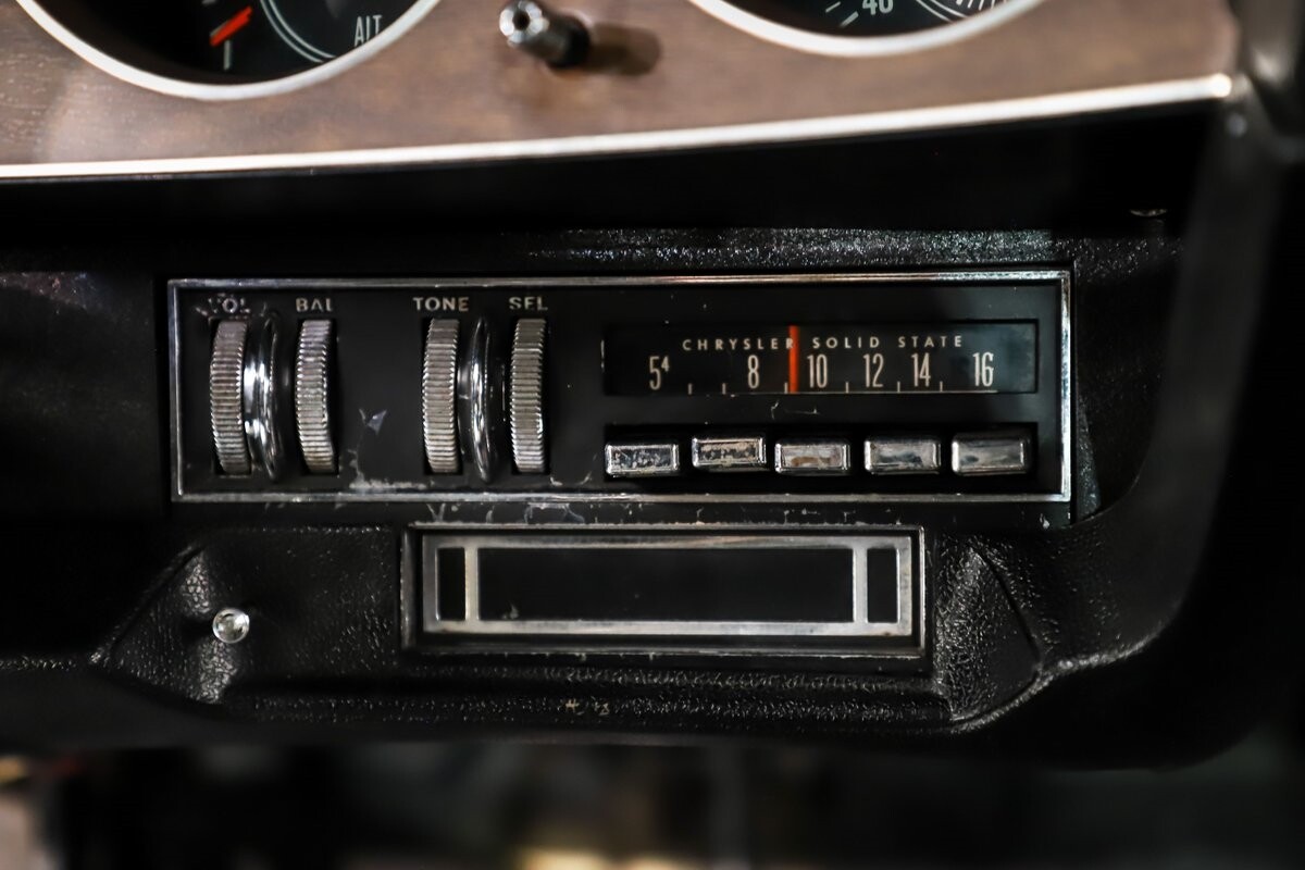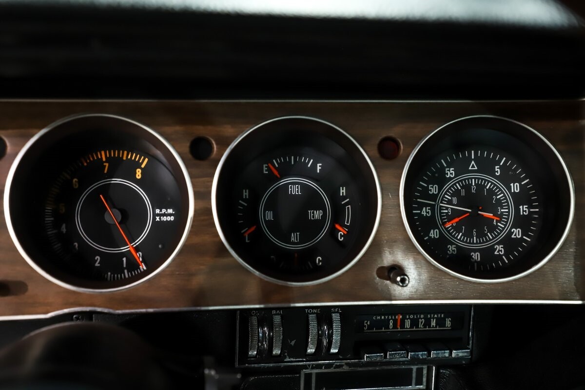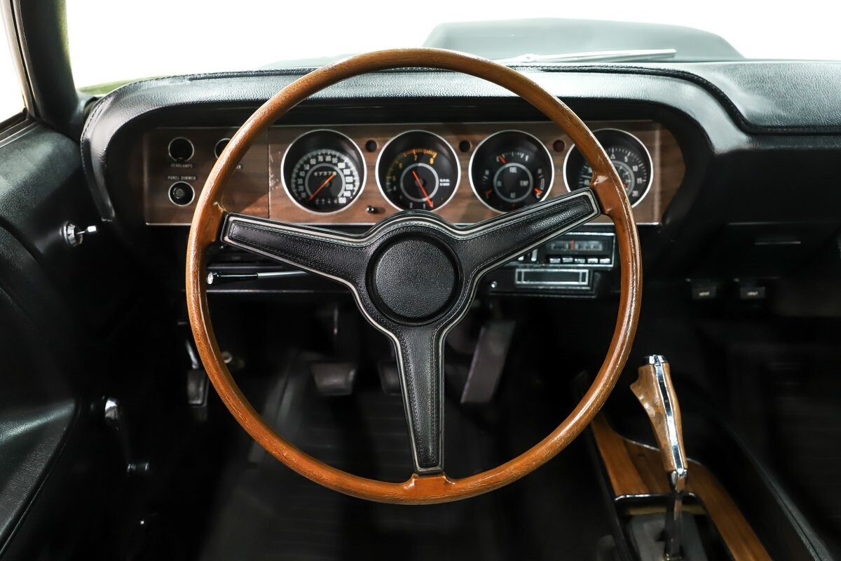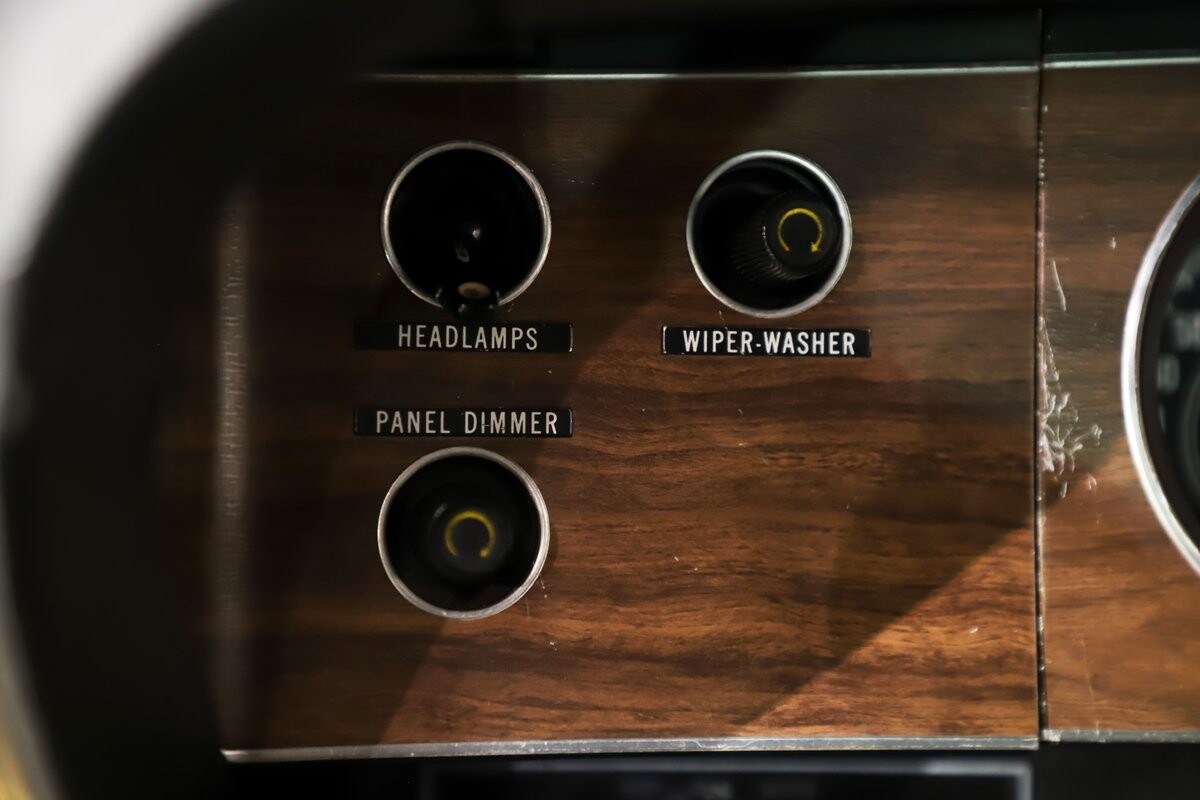 INTERIOR: This is an all original interior in really great, unabused condition. The dash pad is original which means the VIN tag has never been removed! The dash pad has no splits and it has stereo speakers for the 8-track. Rare original vinyl and cloth upholstery. All of the plastic trim looks great including door panels and console. The carpet was replaced. The headliner and visors look original and in excellent shape. Optional rallye dash includes gauges, a tachometer and woodgrain. Interior light and reverse light indicator work. The highlight of the interior is the pistol grip shifter!