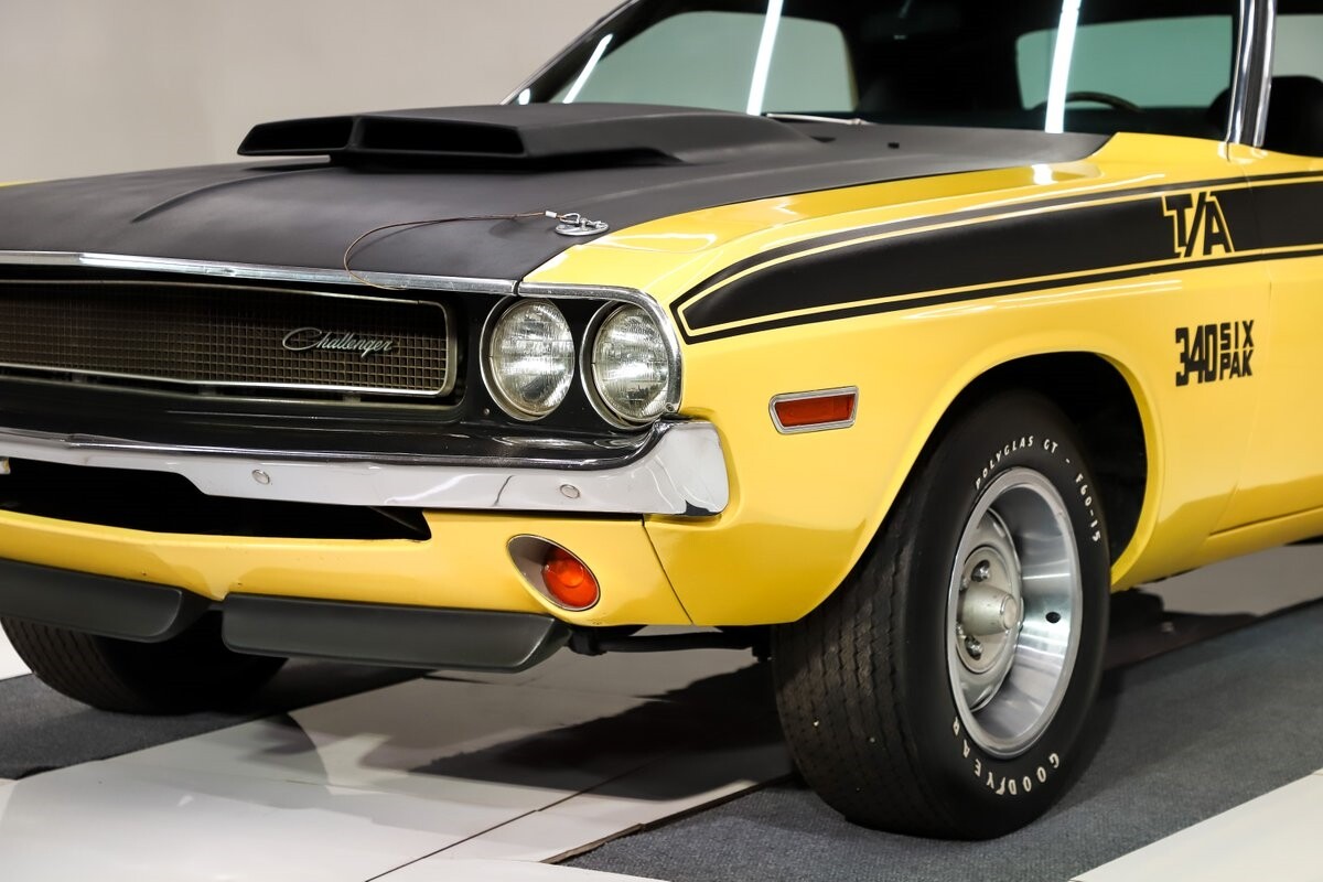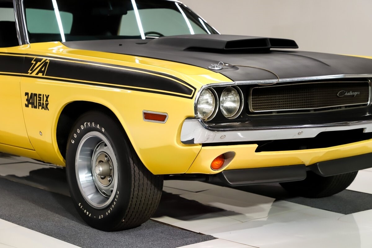 Why is a T/A so special? They were a very limited production, high performance car based on Dodge's Trans Am race car. Only 1,411 automatics and 989 4-speeds were ever made. It was only a 1 year production. It's not just a 340 car with a 6 pack and fancy decals slapped on it. The engine blocks were actually unique to this car, built stronger. It also has special heads, modified valve train and 3 holley carbs. The burnt fuel is let out through a low restriction exhaust that exits in front of each rear tire. The rear tires are taller to give clearance to the side exhaust which also gives the car a cool stance. Other features include a Sure Grip rear, Upgraded brakes with disc in front, rallye suspension, quick ratio steering and performance tires on 15x7 wheels. It also features a lightweight fiberglass hood in flat black to eliminate glare to the driver with an air intake scoop and racing pins. Special stripes, emblems, pop up gas cap, racing mirror, blacked out grill and a dove tail spoiler make it look the part.