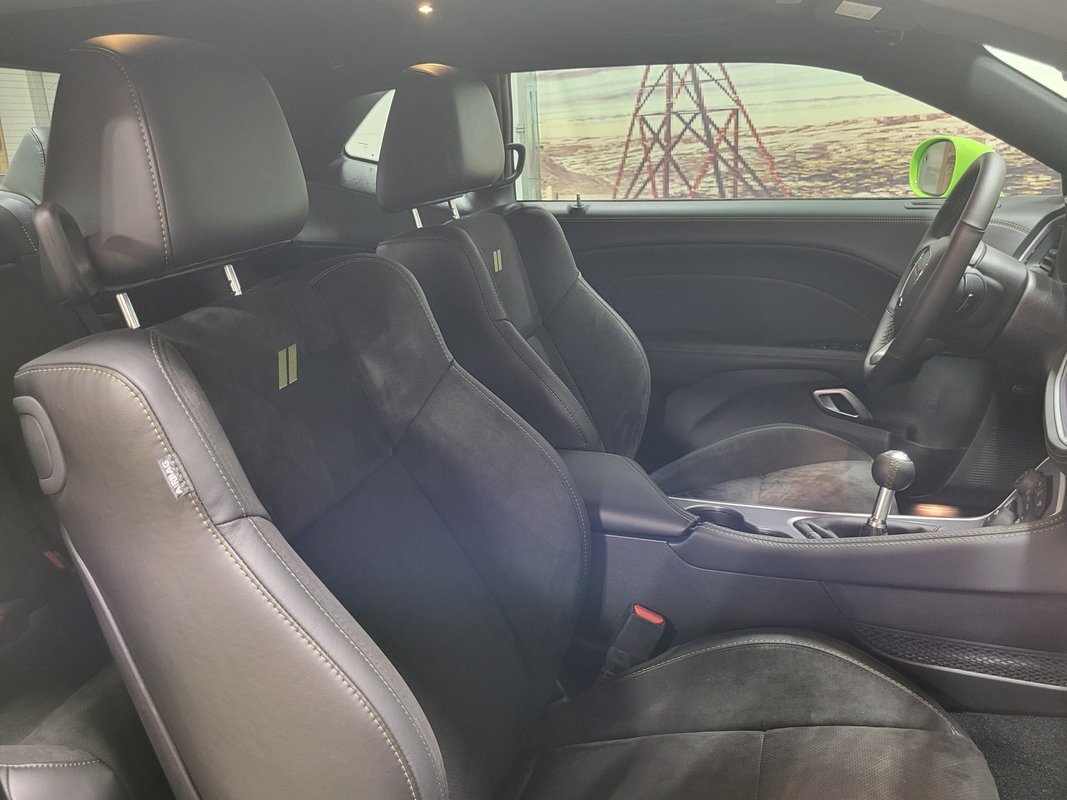 Inside you will find Nappa Leather and Alcantara seats with green stitching, Heated and ventilated front seats, Green Swinger interior instrument panel badge, Green interior accent stitching on console and doors, Mod Grain wood-look aluminum interior bezel textures, White Gauge Dials, and Technology group with U-connect touchscreen navigation. Also equipped with 20-by-11-inch Gold School wheels and black six-piston Brembo brakes.