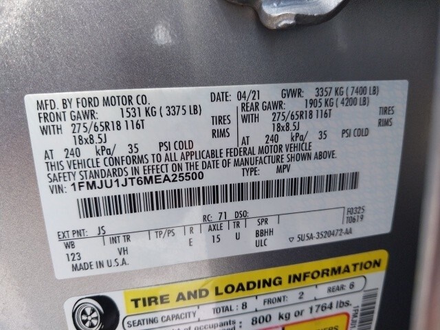 Ford Gold Certified Certified, 4WD, 18 Machined-Face Aluminum Wheels, 3.31 Axle Ratio, 3rd row seats: split-bench, 3rd Row Vinyl Seat, 4-Wheel Disc Brakes, 6 Speakers, ABS brakes, ActiveX-Trimmed 1st & 2nd Row Seats, Air Conditioning, Alloy wheels, AM/FM radio: SiriusXM, Auto High-beam Headlights, Auto-dimming Rear-View mirror, Automatic temperature control, Brake assist, Bumpers: body-color, Cloth Front Captain's Chairs, Compass, Delay-off headlights, Driver door bin, Driver vanity mirror, Dual front impact airbags, Dual front side impact airbags, Electronic Stability Control, Emergency communication system: SYNC 3 911 Assist, Equipment Group 201A Mid Package, Exterior Parking Camera Rear, Four wheel independent suspension, Front anti-roll bar, Front Bucket Seats, Front Center Armrest, Front dual zone A/C, Front fog lights, Front License Plate Bracket, Front reading lights, Fully automatic headlights, Garage door transmitter, Heated door mirrors, Illuminated entry, Leather steering wheel, Low tire pressure warning, Occupant sensing airbag, Outside temperature display, Overhead airbag, Overhead console, Panic alarm, Passenger door bin, Passenger vanity mirror, Power door mirrors, Power driver seat, Power steering, Power windows, Radio data system, Radio: AM/FM Stereo w/MP3 Capable, Rear air conditioning, Rear anti-roll bar, Rear reading lights, Rear window defroster, Rear window wiper, Reclining 3rd row seat, Remote keyless entry, Roof rack: rails only, SecuriCode Keyless Entry Pad, Security system, SiriusXM Satellite Radio, Speed control, Speed-sensing steering, Speed-Sensitive Wipers, Split folding rear seat, Steering wheel mounted audio controls, SYNC 3 Communications & Entertainment System, Tachometer, Telescoping steering wheel, Tilt steering wheel, Traction control, Trip computer, Variably intermittent wipers, Voltmeter, 4WD.