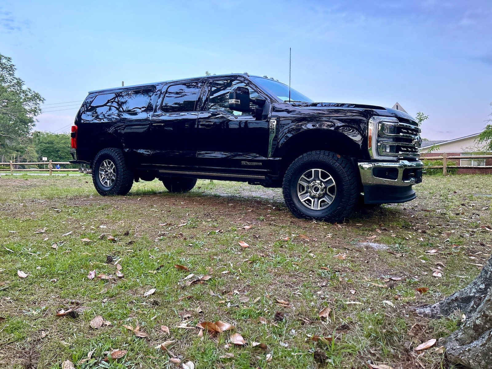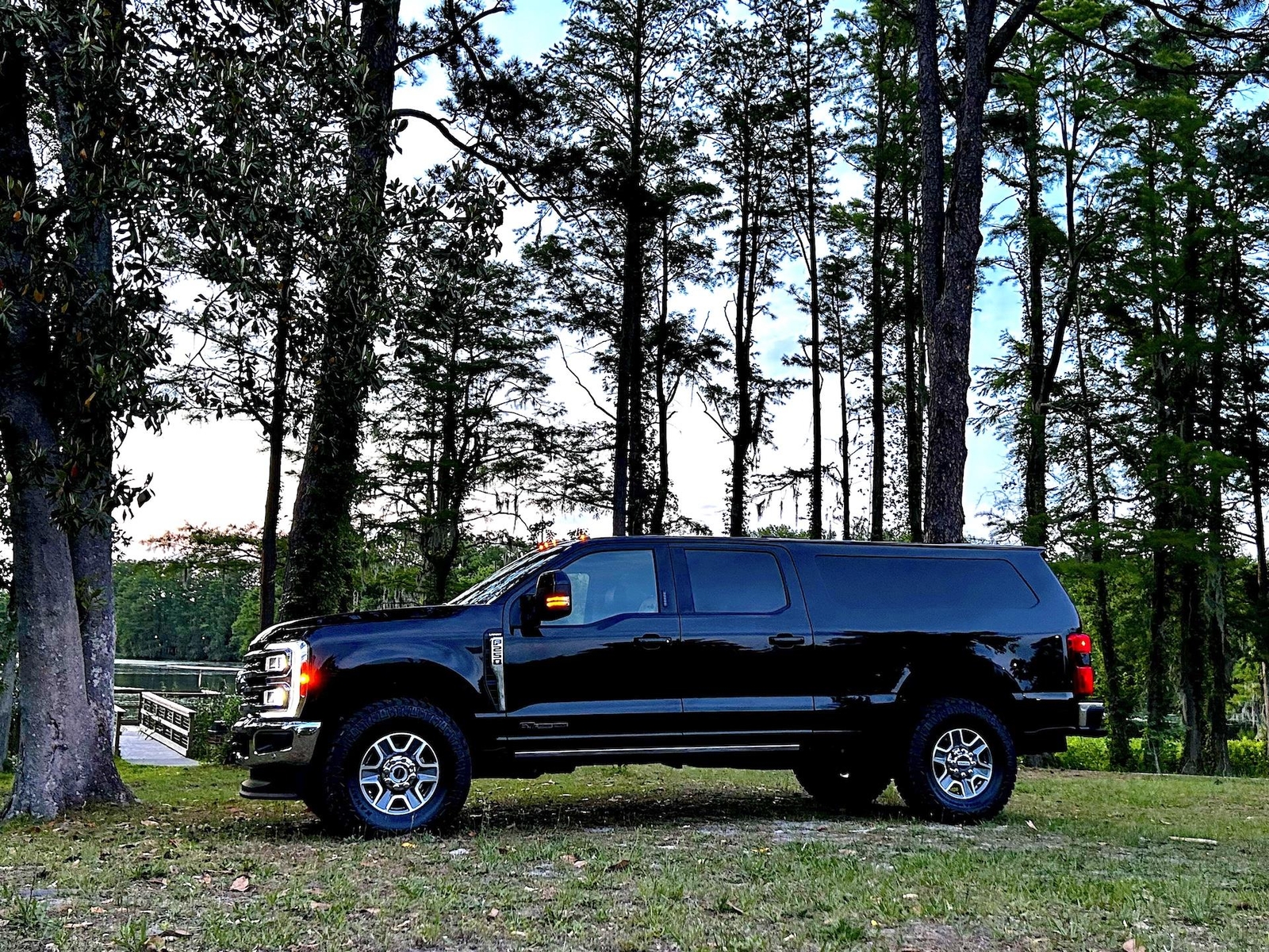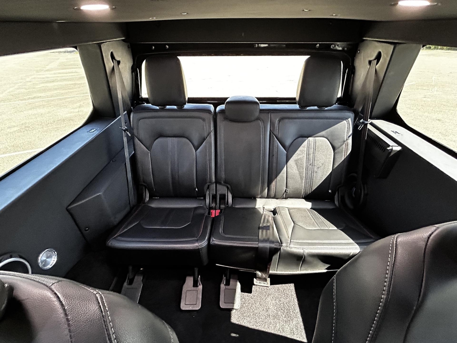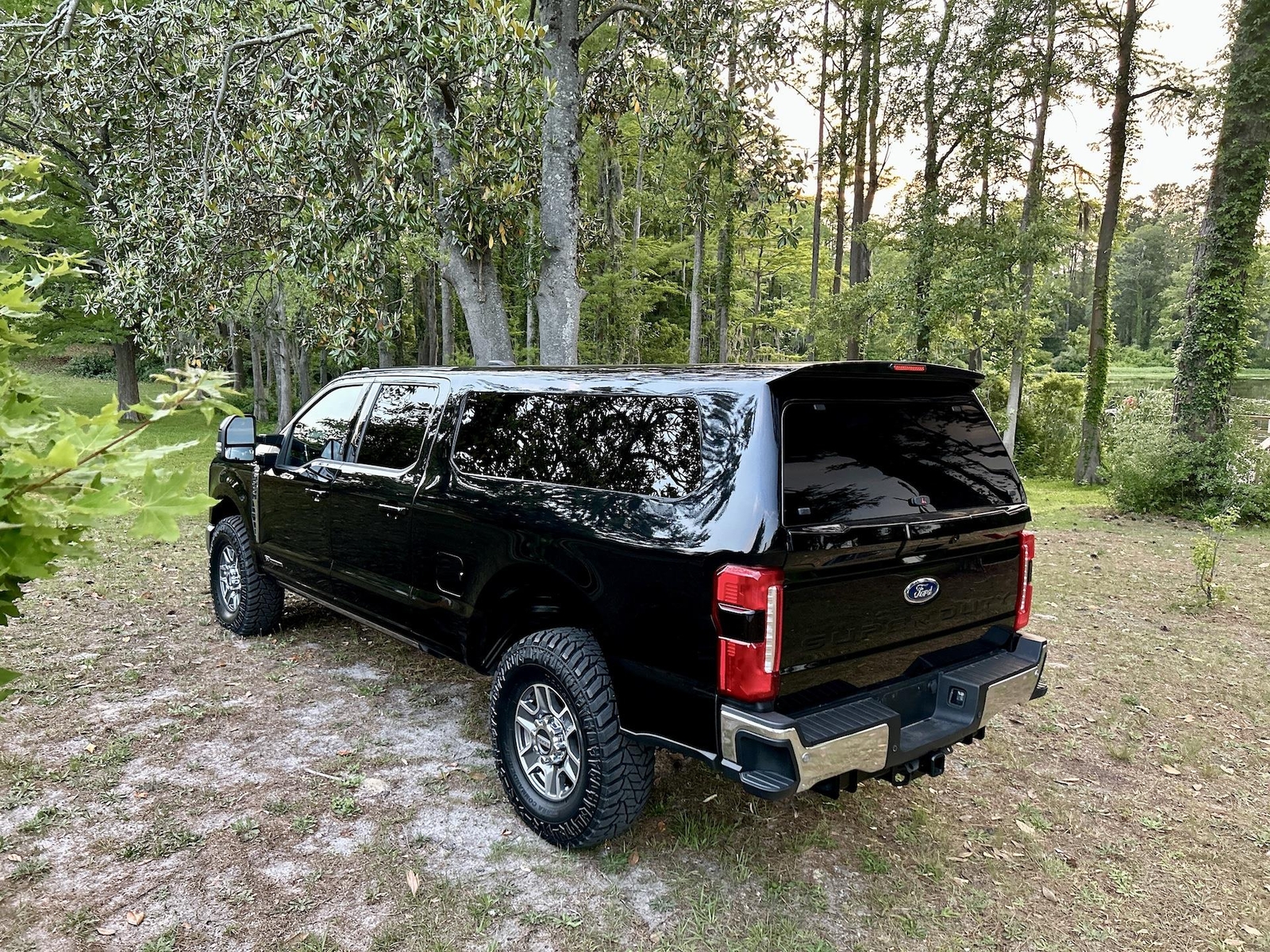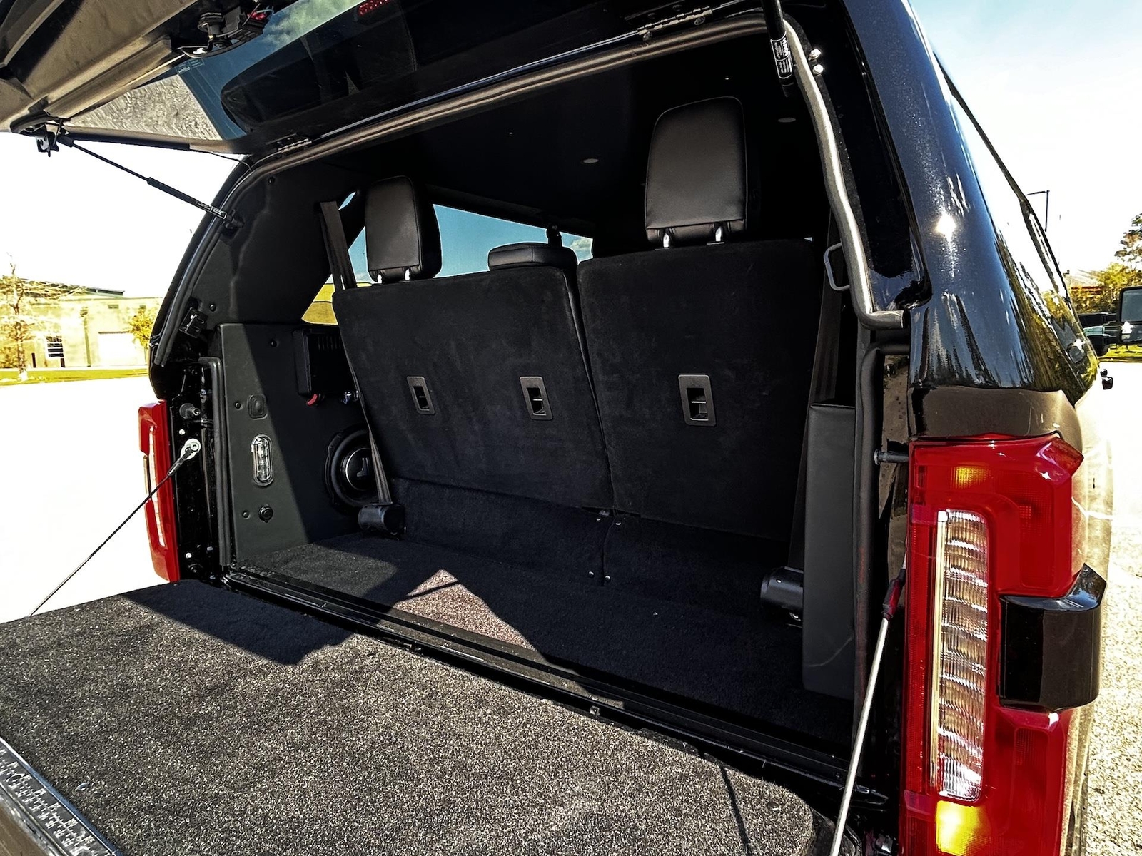 Built on the 2023 Ford® F-250 Super Duty Crew Cab Lariat Ultimate 4x4 and finished in a striking Agate Black Metallic with a bright chrome grille and trim, this MegaRexx® SVN™ was purposefully designed to incorporate nine-passenger seating, enabling easy access to the second, third, and fourth rows. The fully integrated, hand-formed, aluminum SUV-style roof, coupled with custom one-piece deep-tinted rear side glass, exudes a sleek yet rugged off-road aesthetic with OEM-level fit and finish.