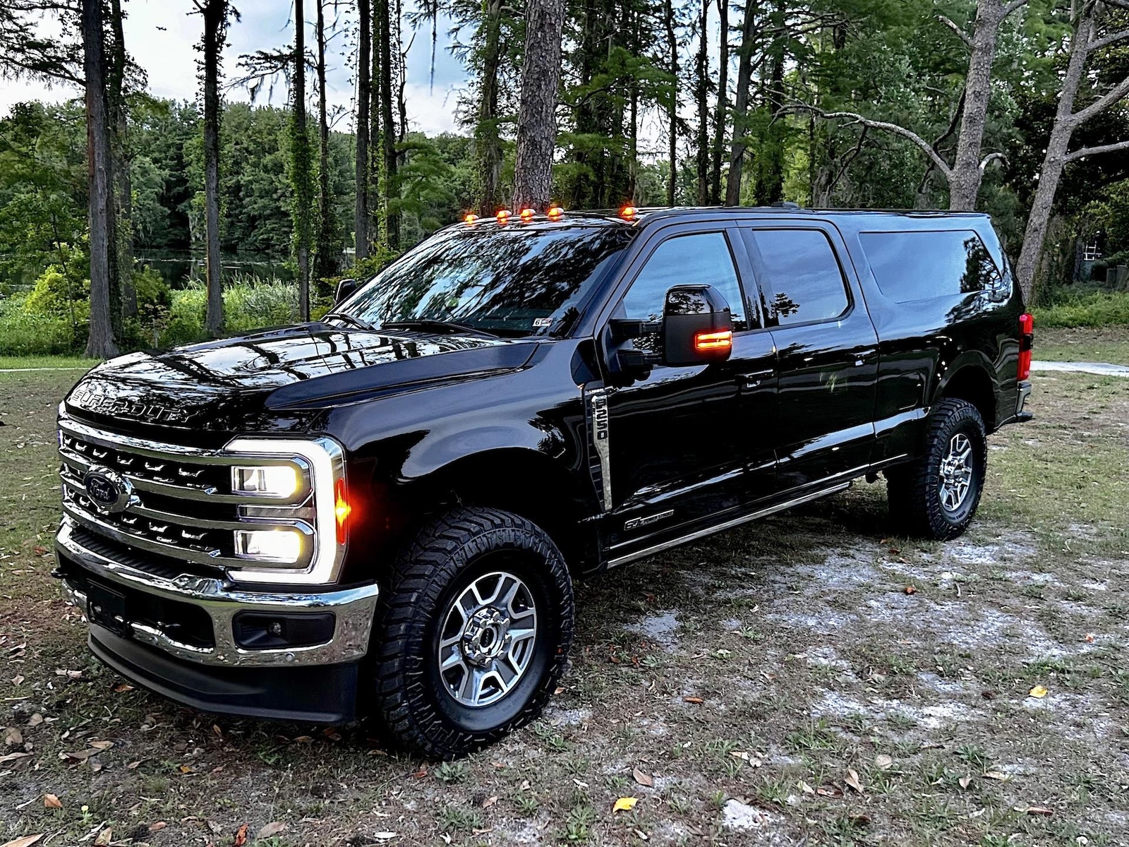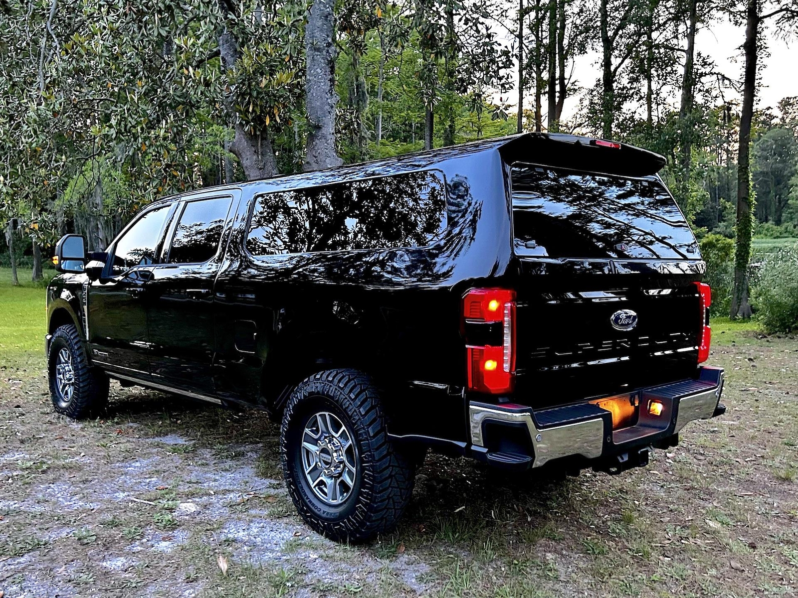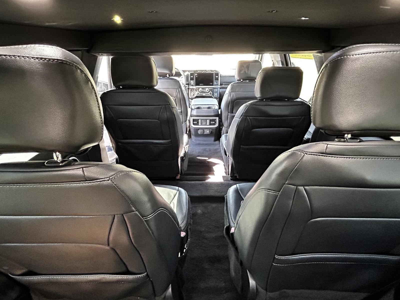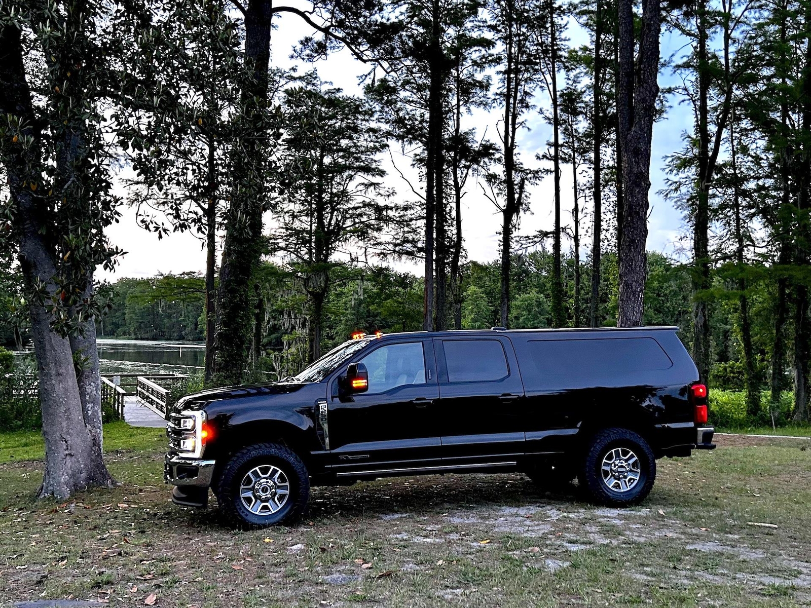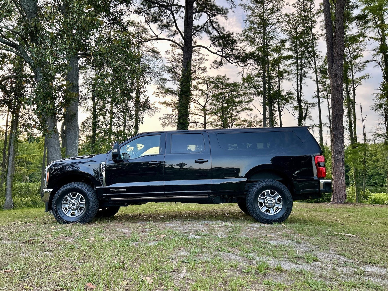 Built on the 2023 Ford® F-250 Super Duty Crew Cab Lariat Ultimate 4x4 and finished in a striking Agate Black Metallic with a bright chrome grille and trim, this MegaRexx® SVN™ was purposefully designed to incorporate nine-passenger seating, enabling easy access to the second, third, and fourth rows. The fully integrated, hand-formed, aluminum SUV-style roof, coupled with custom one-piece deep-tinted rear side glass, exudes a sleek yet rugged off-road aesthetic with OEM-level fit and finish.