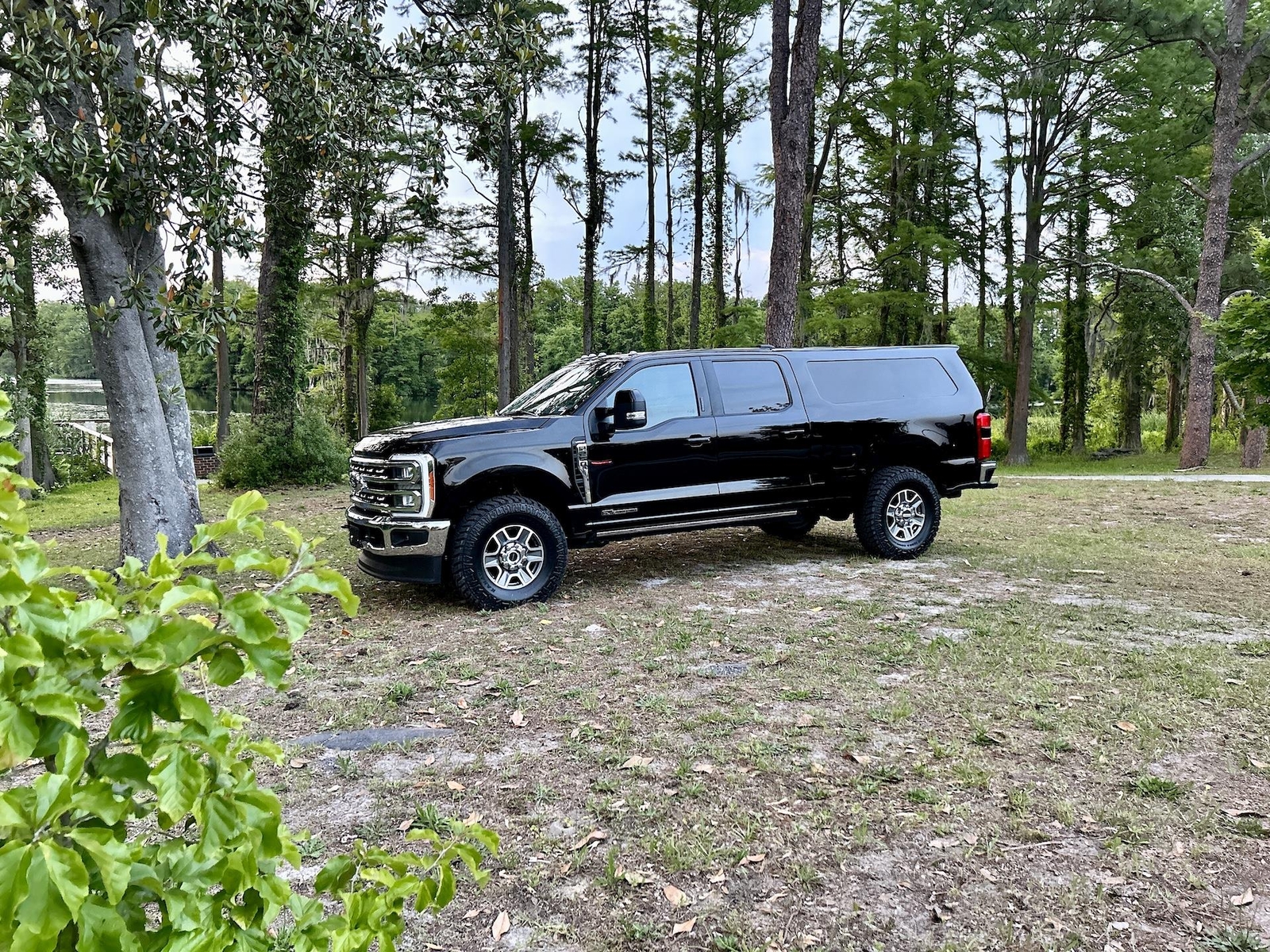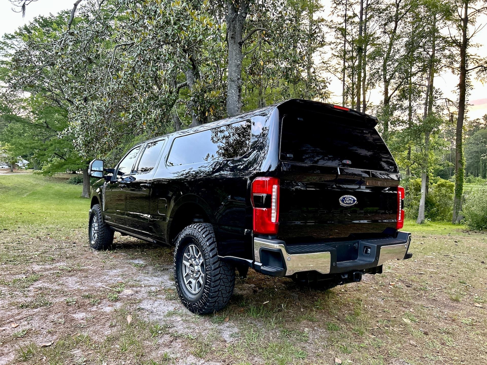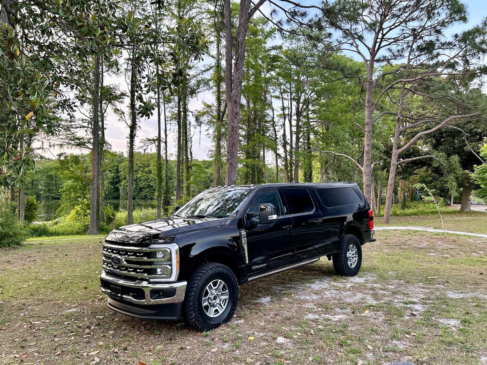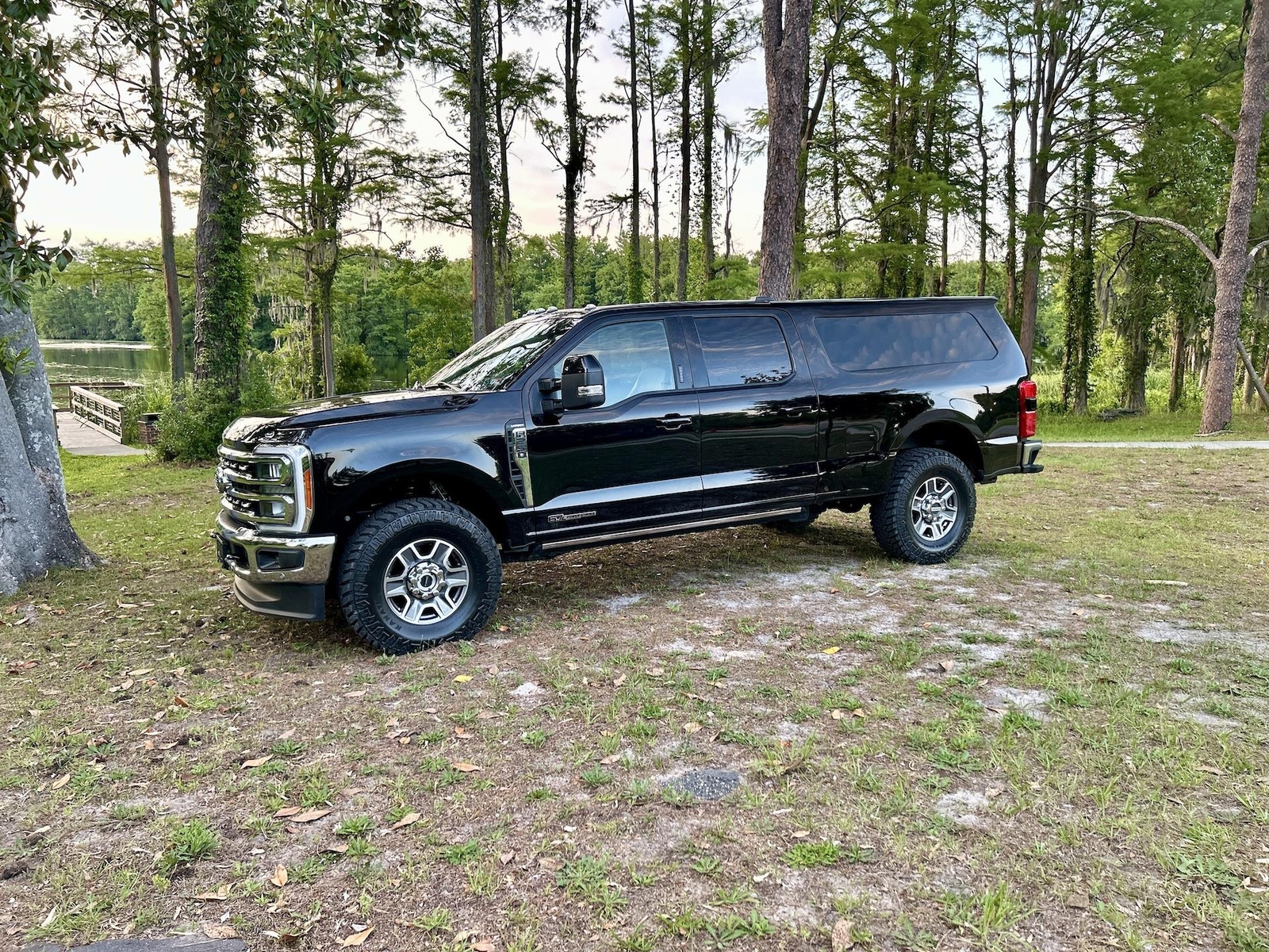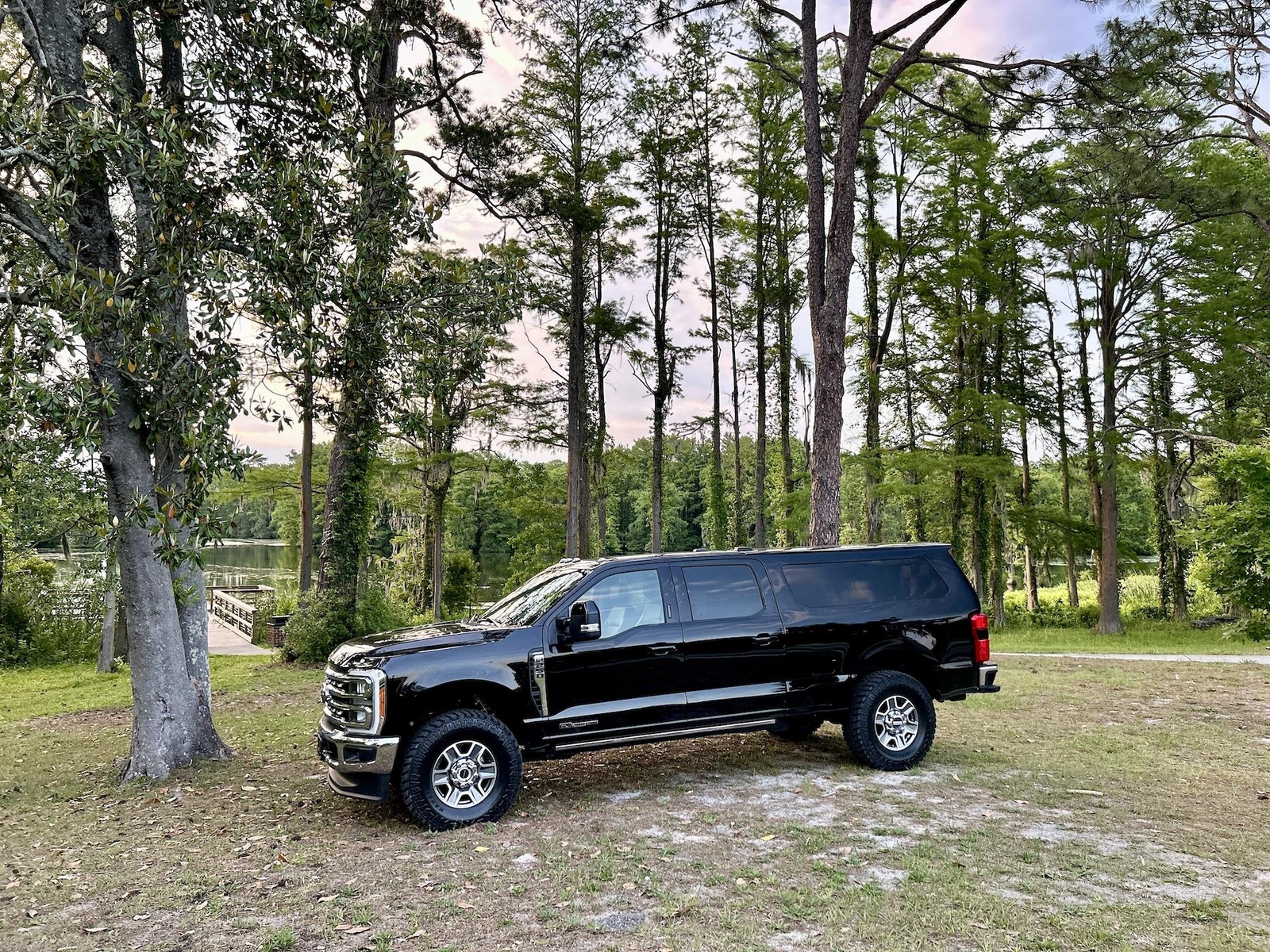 Built on the 2023 Ford® F-250 Super Duty Crew Cab Lariat Ultimate 4x4 and finished in a striking Agate Black Metallic with a bright chrome grille and trim, this MegaRexx® SVN™ was purposefully designed to incorporate nine-passenger seating, enabling easy access to the second, third, and fourth rows. The fully integrated, hand-formed, aluminum SUV-style roof, coupled with custom one-piece deep-tinted rear side glass, exudes a sleek yet rugged off-road aesthetic with OEM-level fit and finish.