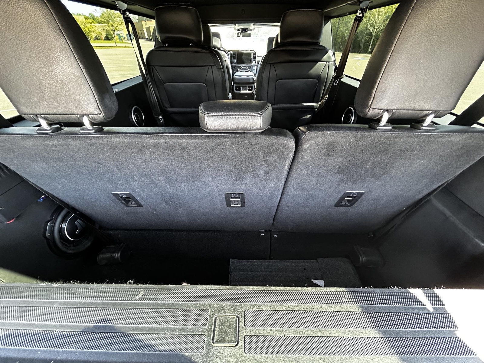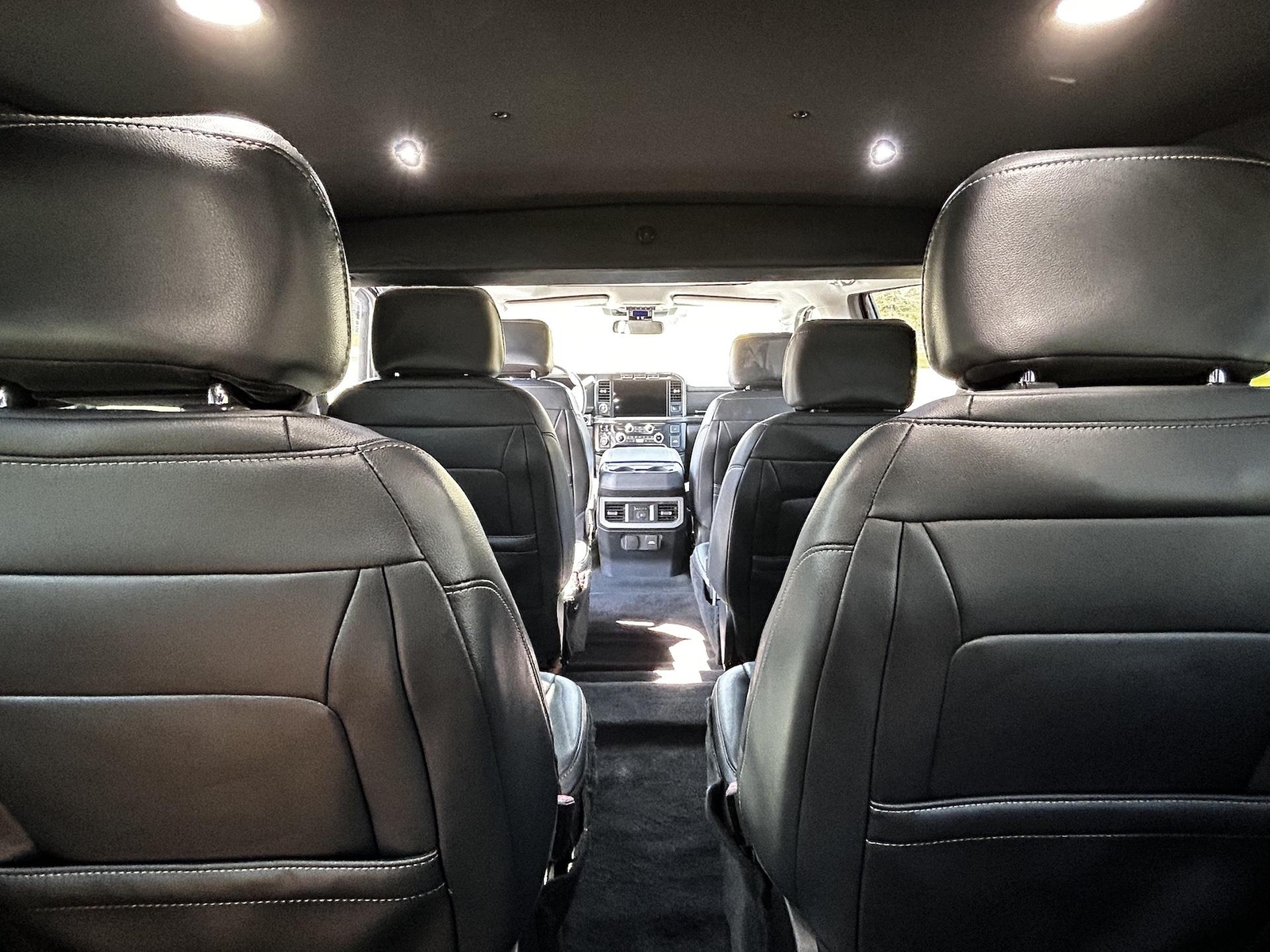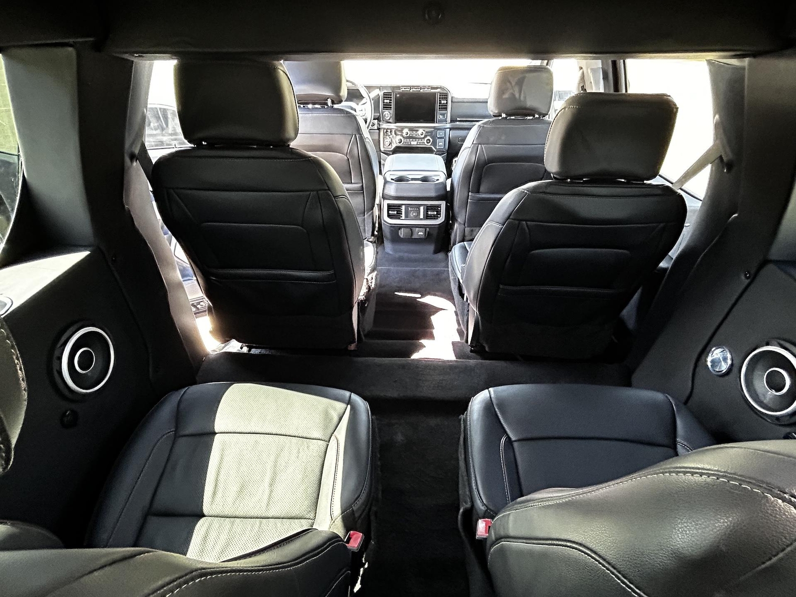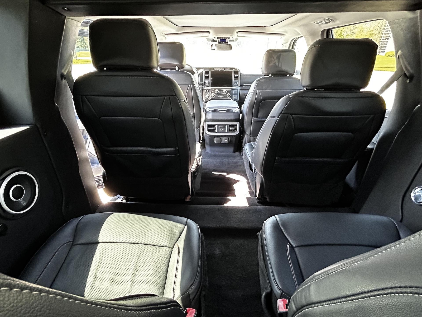 Chrome-trimmed, power running boards facilitate access to the richly appointed cabin. Inside, an expansive twin-panel panoramic power moonroof sheds abundant natural light on the heated and ventilated front row seats with driver-side memory upholstered in luxurious Black Onyx micro-perforated premium leather. To maintain a unified interior design, the second-row and third-row Captain’s seats and the conveniently accessible, power-folding fourth-row bench seat sourced from the Ford® Expedition® all feature matching leather upholstery.