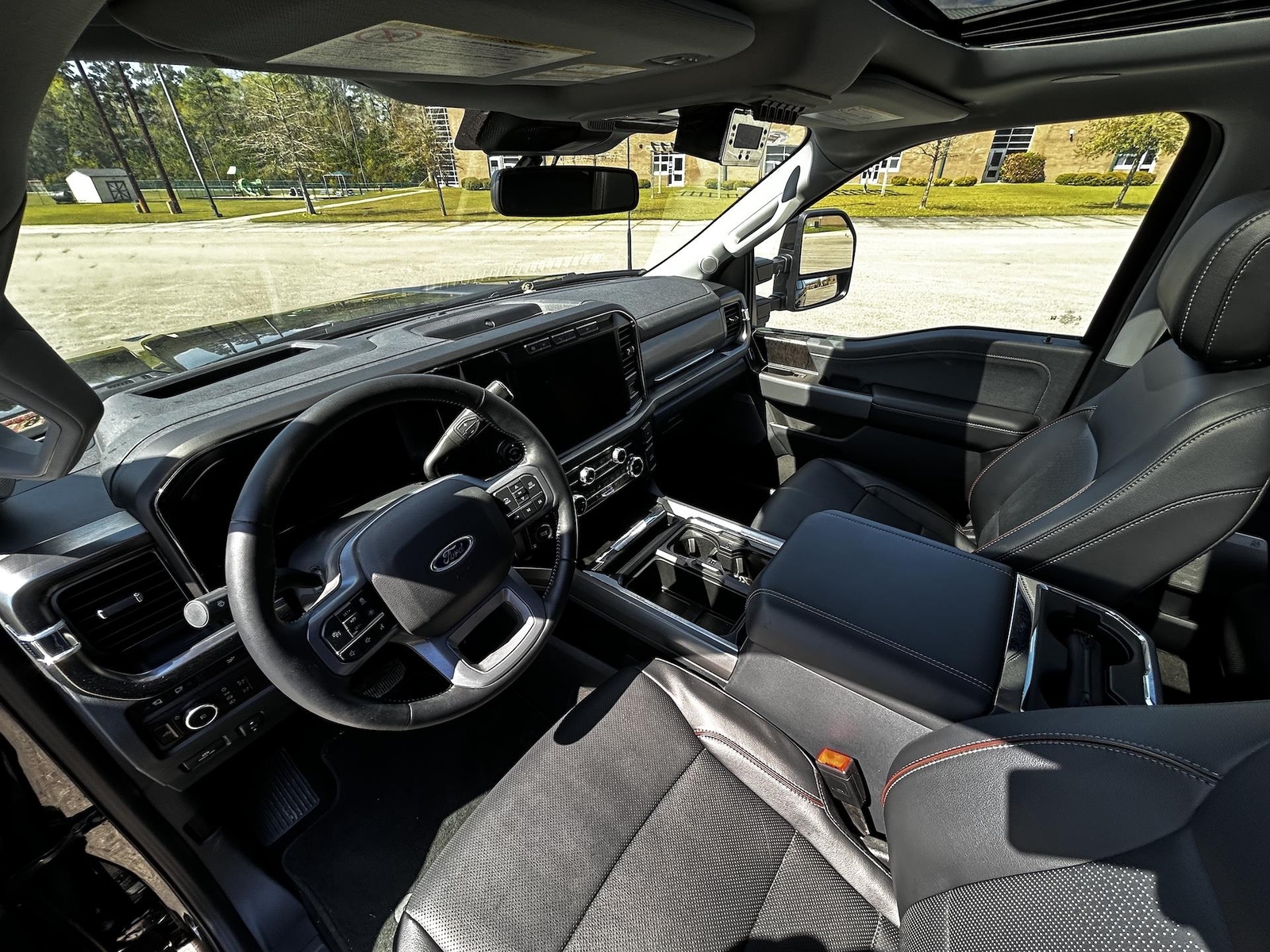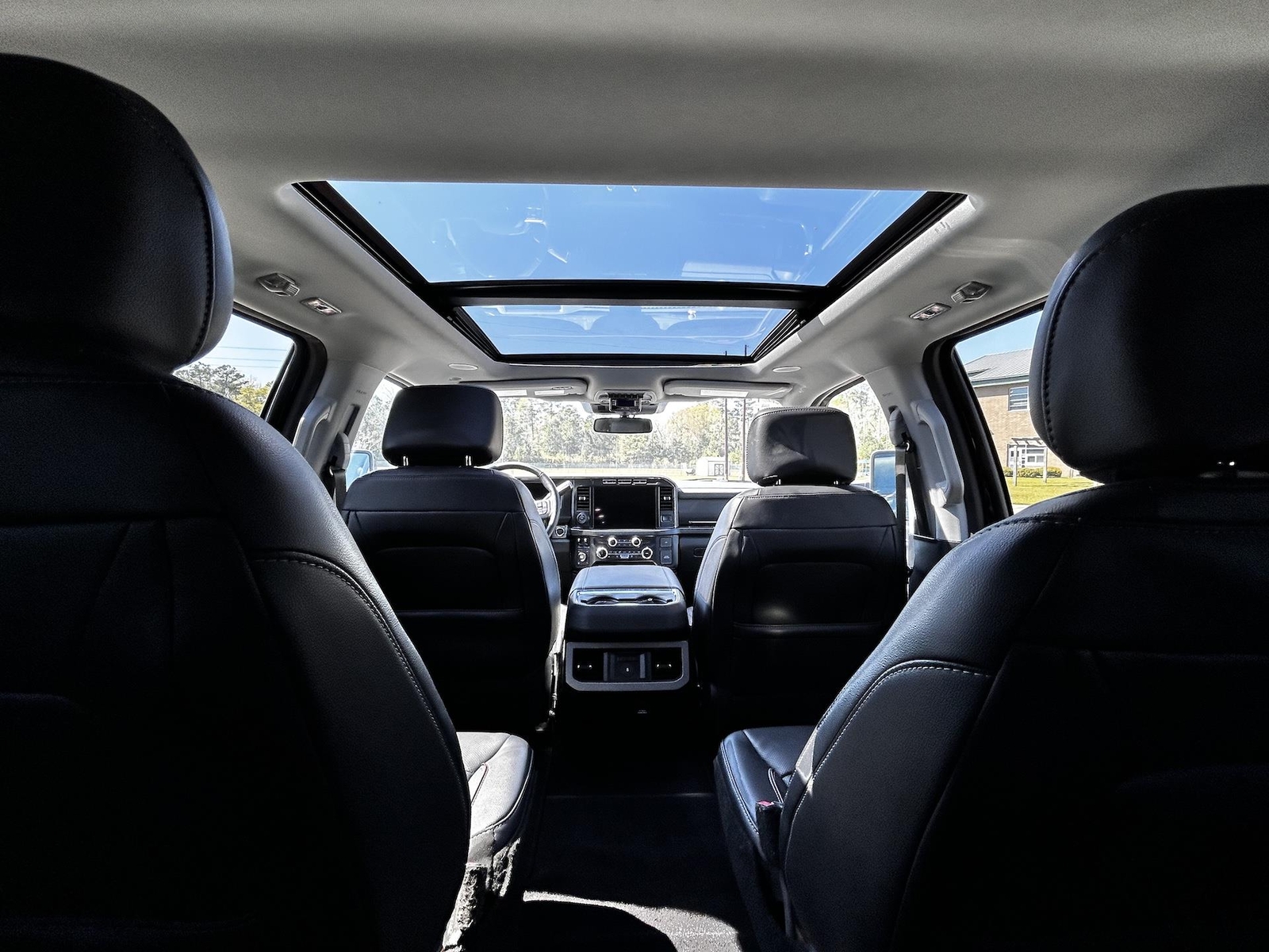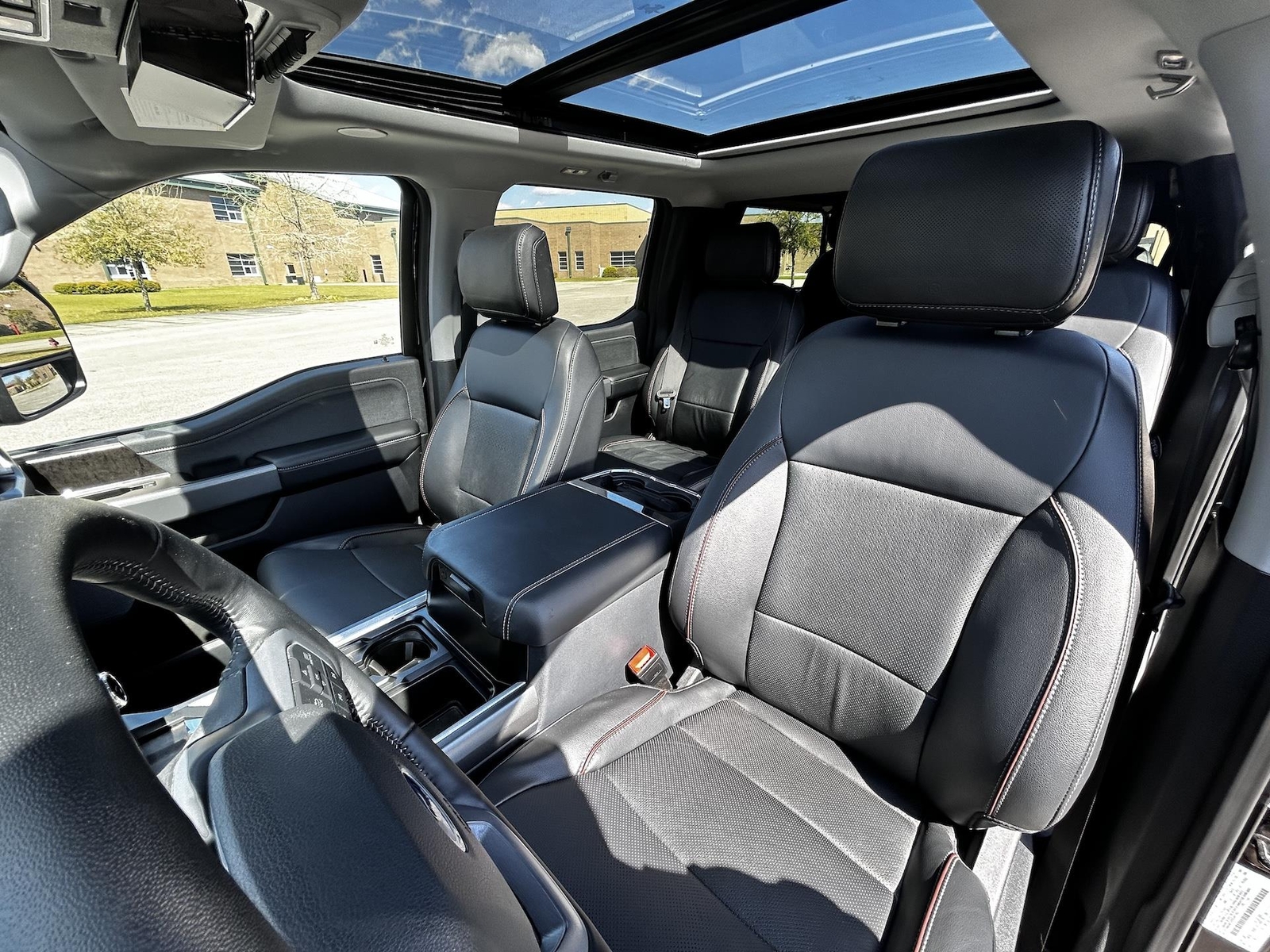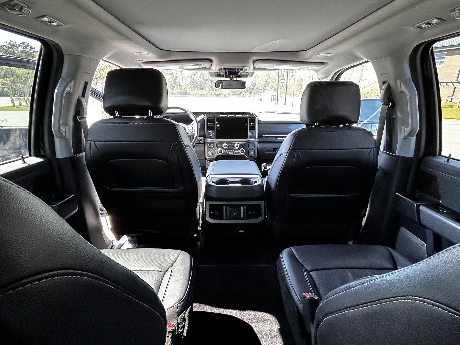 Chrome-trimmed, power running boards facilitate access to the richly appointed cabin. Inside, an expansive twin-panel panoramic power moonroof sheds abundant natural light on the heated and ventilated front row seats with driver-side memory upholstered in luxurious Black Onyx micro-perforated premium leather. To maintain a unified interior design, the second-row and third-row Captain’s seats and the conveniently accessible, power-folding fourth-row bench seat sourced from the Ford® Expedition® all feature matching leather upholstery.