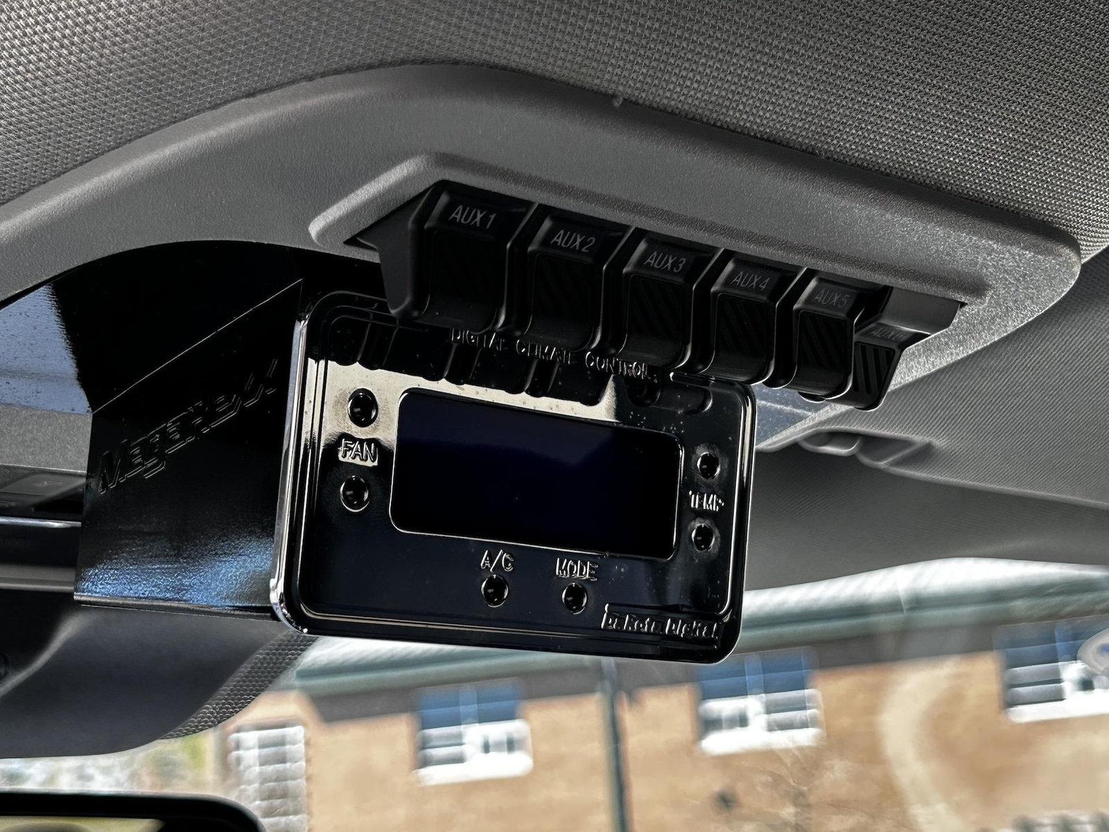 For maximum passenger comfort, the MegaRexx® SVN™ Rear Heating & Air Package features a Vintage Air® Gen II system with separate air conditioning, heat, and defrost distributed through brushed aluminum Vintage Air® ProLine™ Venturi louvers and commanded by a Dakota ??Digital® DCC-2200 Digital Climate Controller.