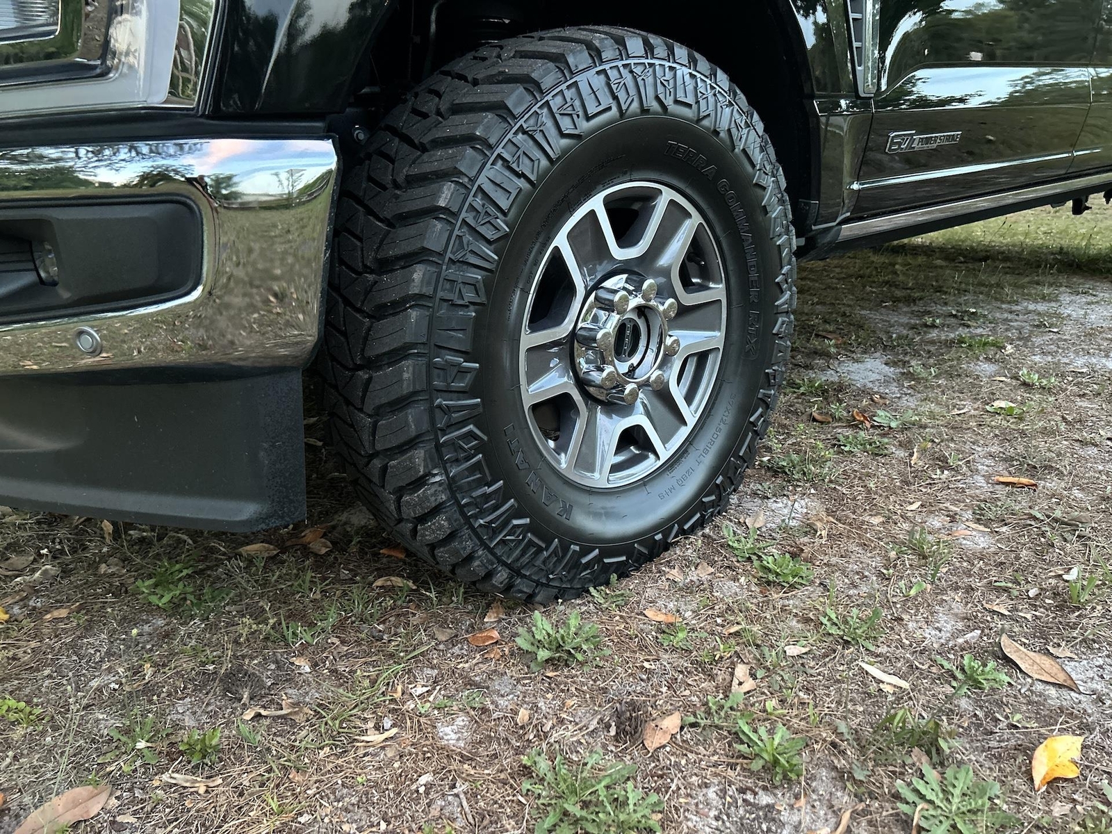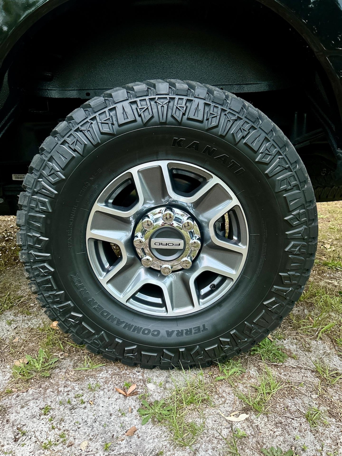 This Super Duty SUV stands confidently on 18" bright machined and carbonized gray aluminum wheels wrapped with bold 37x12.50R18 Kanati® Terra Commander RTX™ all-terrain tires with a tread design featuring closely placed lugs that allow greater contact on the road for a smooth ride and less road noise. Stone ejectors between the lugs help remove stubborn rocks and other debris, while the siped lugs provide extra flex and grip when adventuring off the beaten path. Combined with its broad shoulders and aggressive sidewall, the RTX gives the MegaRexx® SVN™ a rugged off-road look that others will envy.