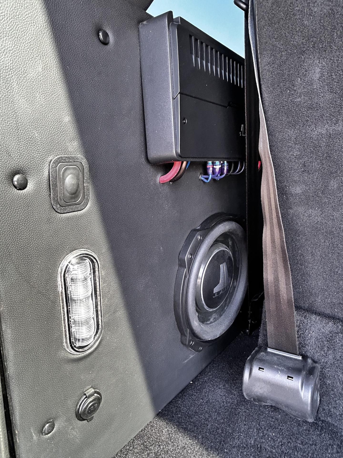 The factory-connected MegaRexx® SVN™ Rear Audio Package serves up the tunes to rear passengers via four JL Audio® Evolution C2® C2-650x 6.5-inch coaxial speakers, and a JL Audio® 10TW3-D4 10-inch subwoofer with dual 4O voice coils, backed by a powerful 900-watt JL Audio® RD500/5 Class D amplifier with a JL Audio® RBC-1 Remote Bass Control.