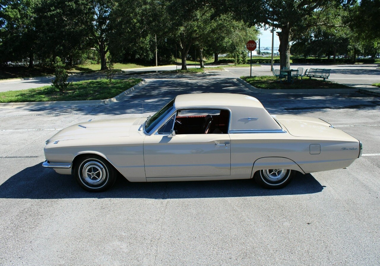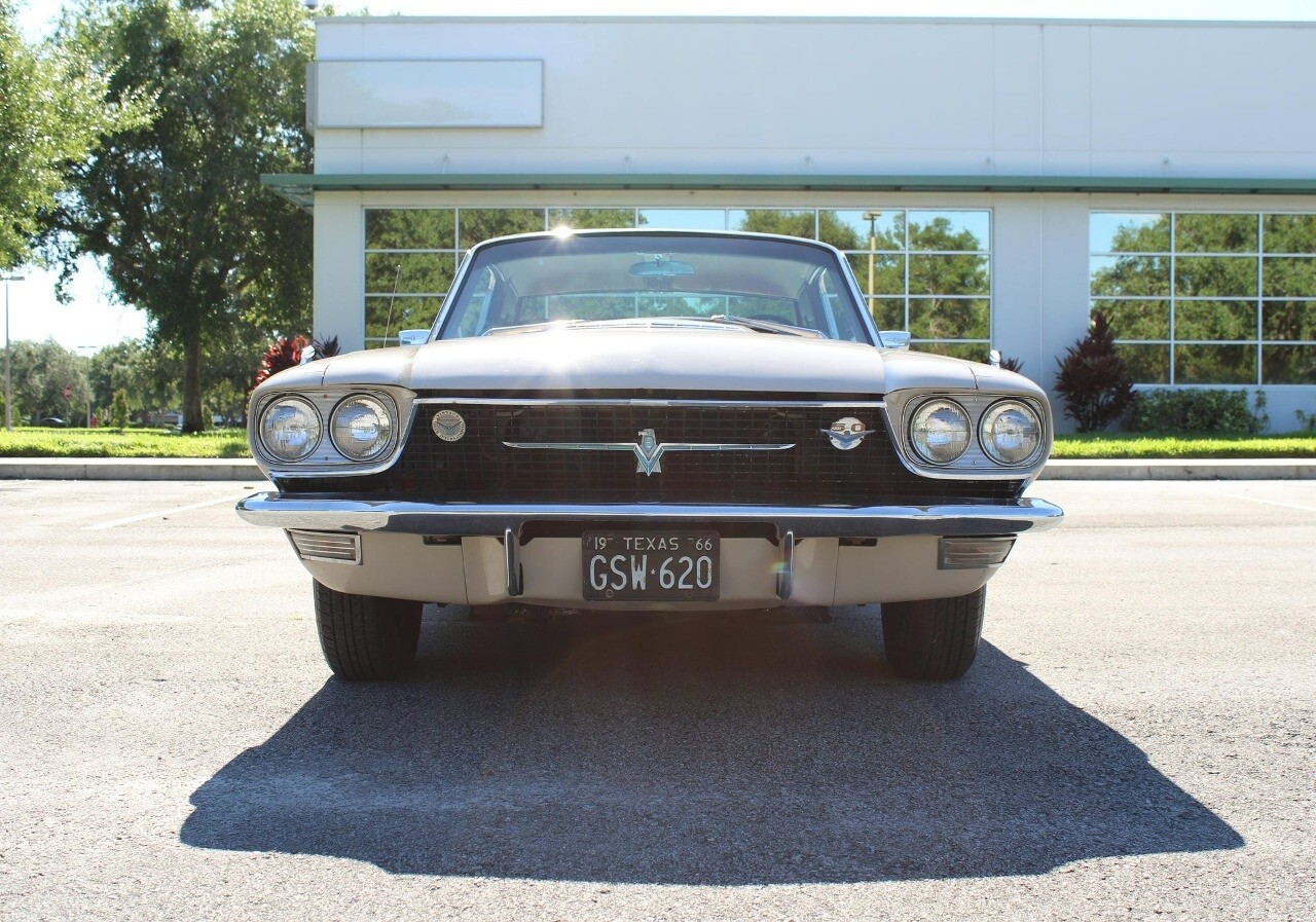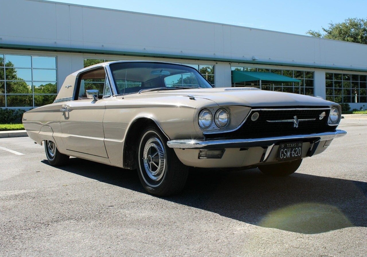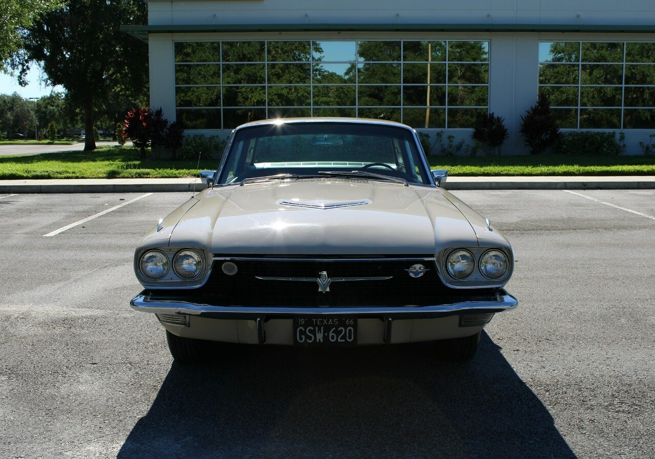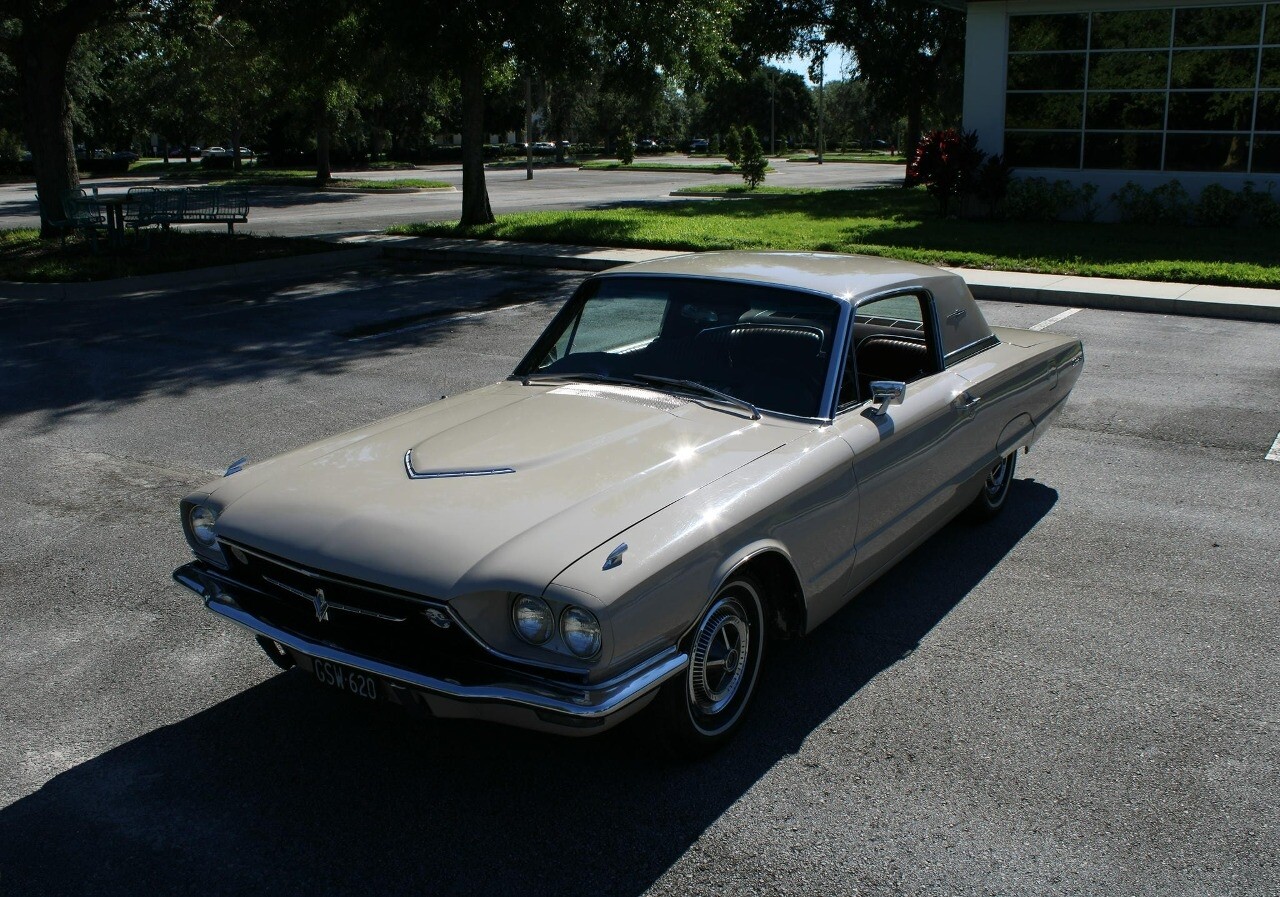 Introducing a classic icon of American automotive design: the 1966 Ford Thunderbird. This stunning vehicle boasts a sophisticated Desert Sand exterior color that complements its elegant lines and timeless appeal. Step inside to find a luxurious Saddle interior, crafted with high-quality vinyl that exudes both comfort and style.