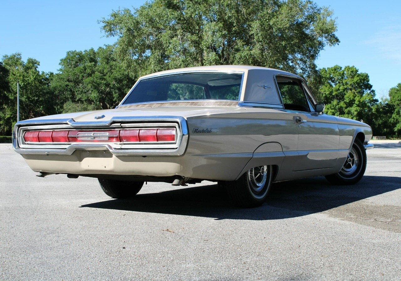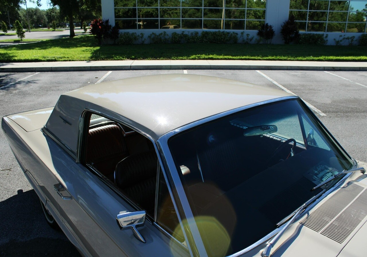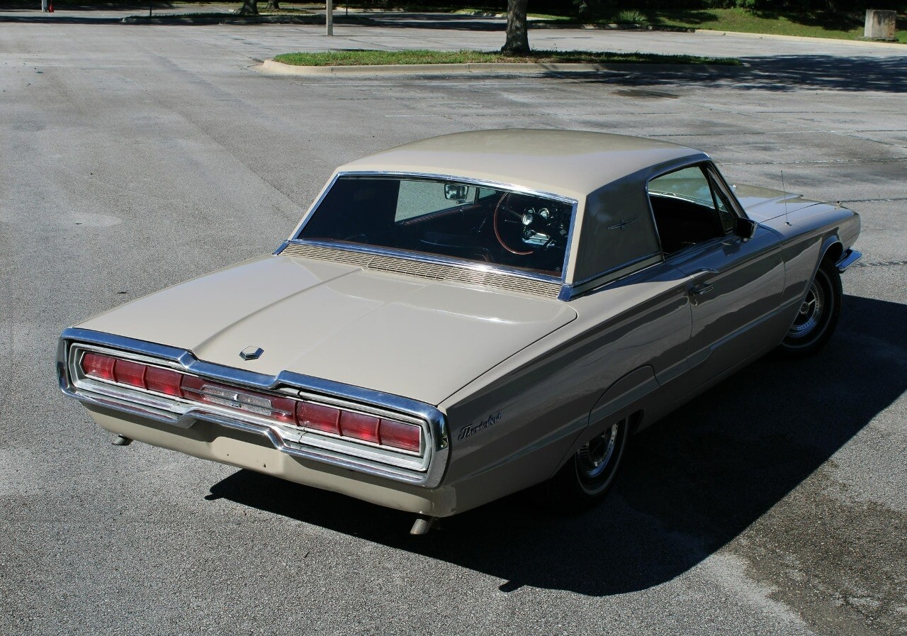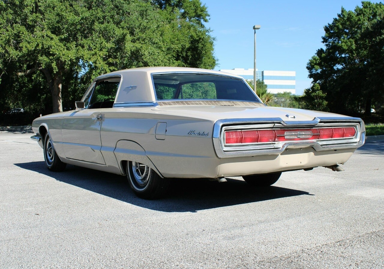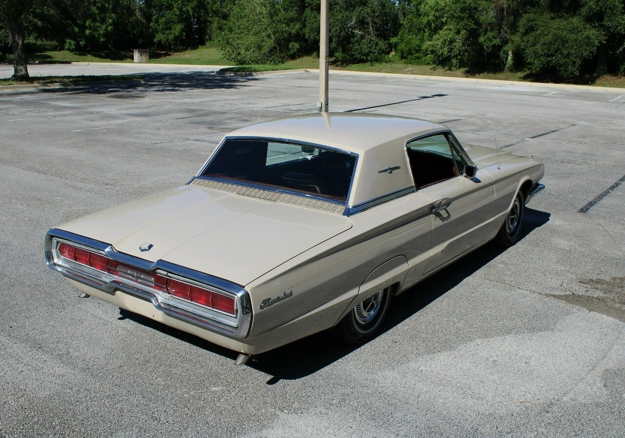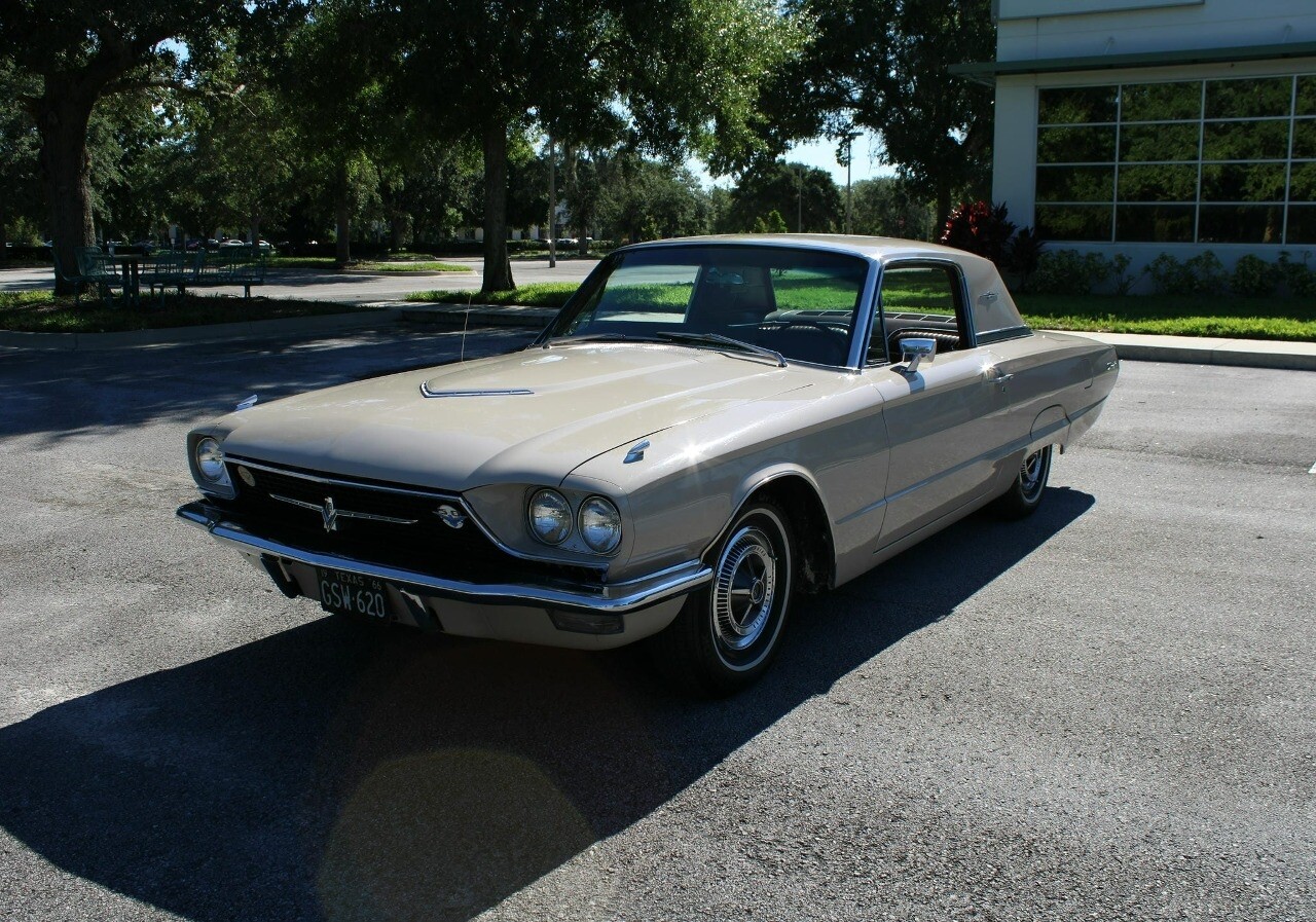 Introducing a classic icon of American automotive design: the 1966 Ford Thunderbird. This stunning vehicle boasts a sophisticated Desert Sand exterior color that complements its elegant lines and timeless appeal. Step inside to find a luxurious Saddle interior, crafted with high-quality vinyl that exudes both comfort and style.