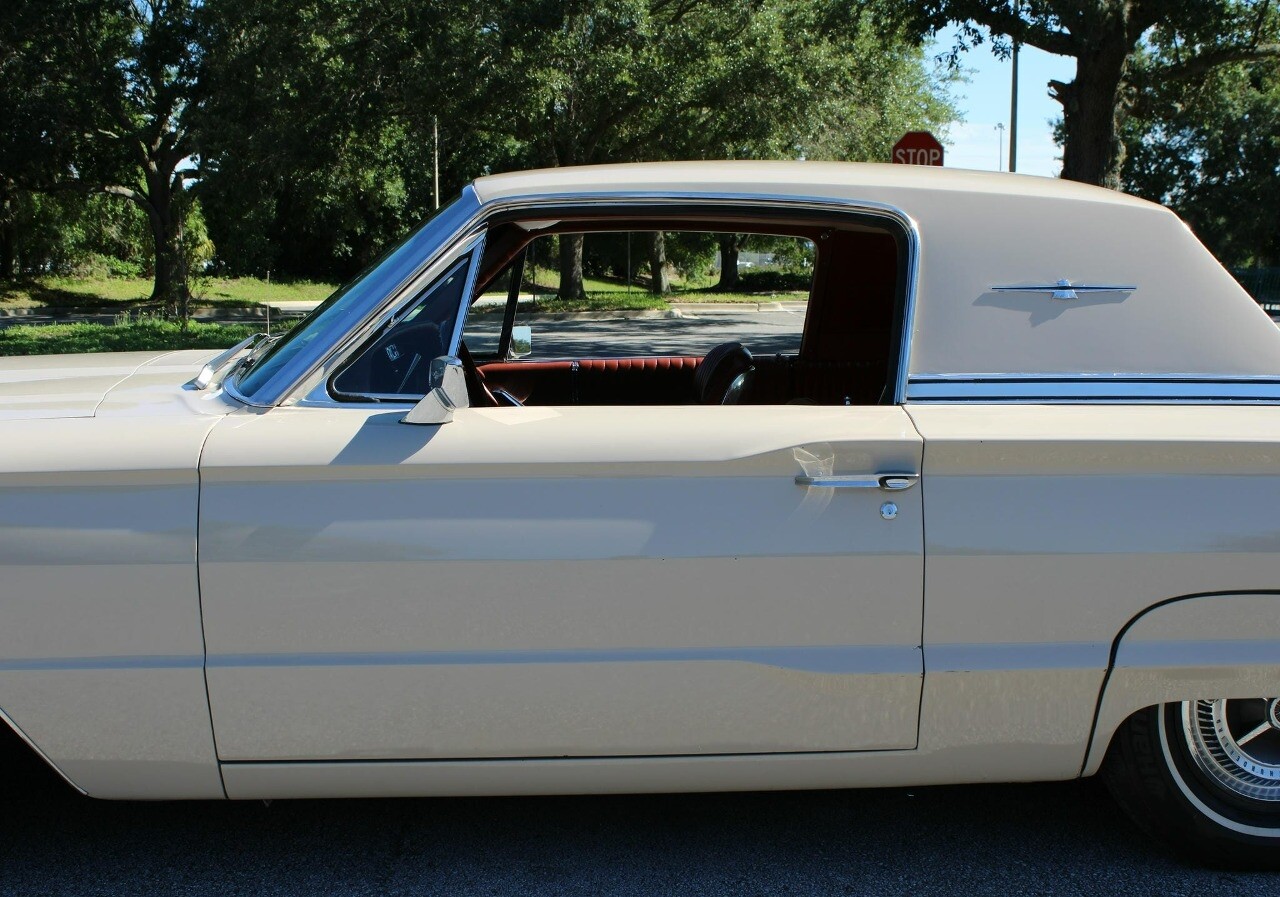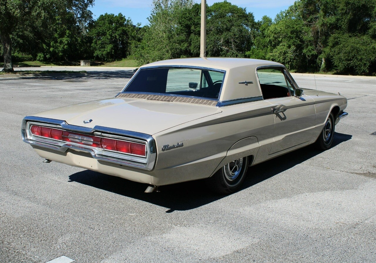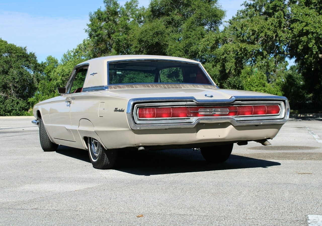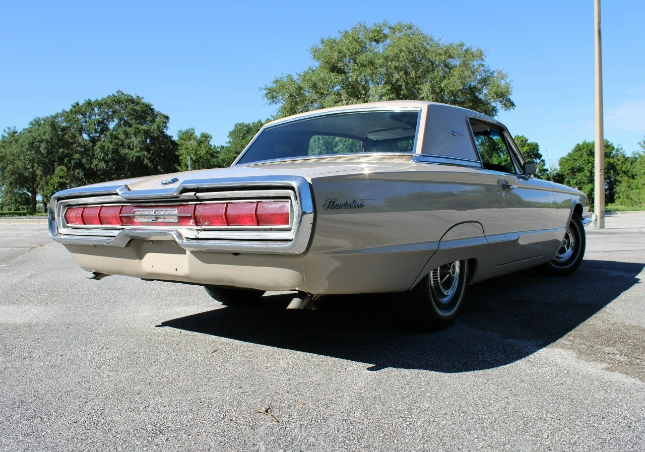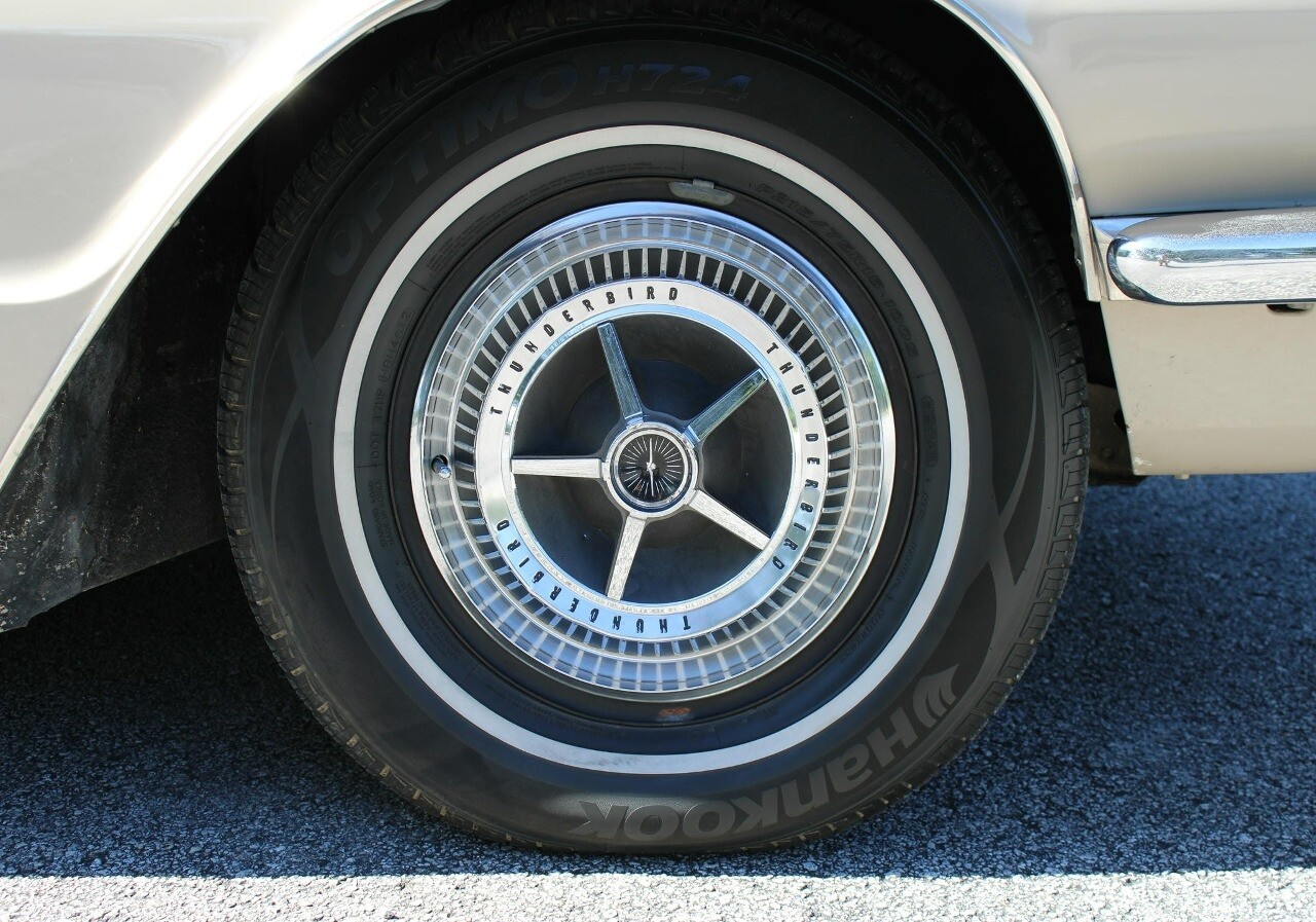 Introducing a classic icon of American automotive design: the 1966 Ford Thunderbird. This stunning vehicle boasts a sophisticated Desert Sand exterior color that complements its elegant lines and timeless appeal. Step inside to find a luxurious Saddle interior, crafted with high-quality vinyl that exudes both comfort and style.