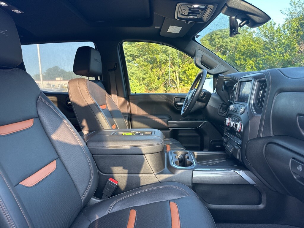 Certified. Balance of Factory Warranty, Dealer Inspection, Vehicle Detailed, Recent Oil Change, New Wiper Blades, Remote Start, 10-Speed Automatic, 4WD, Jet Black With Kalahari Accents Leather, 12-Volt Rear Auxiliary Power Outlet, 120-Volt Bed Mounted Power Outlet, 120-Volt Instrument Panel Power Outlet, 8 Driver Information Center, Adaptive Cruise Control, AT4 Preferred Package, Automatic Emergency Braking, Bed View Camera, Driver Alert Package I, Driver Alert Package II, Driver Memory, Electronic Stability Control, Following Distance Indicator, Forward Collision Alert, Front dual zone A/C, Front fog lights, Front Pedestrian Braking, Fully automatic headlights, HD Surround Vision w/2 Trailer View Camera Provisions, Hill Descent Control, Hitch Guidance, IntelliBeam Automatic High Beam On/Off, Keyless Open & Start, Lane Change Alert w/Side Blind Zone Alert, Lane Keep Assist w/Lane Departure Warning, Multicolor 15 Diagonal Head-Up Display, Navigation System, Perimeter Lighting, Power Sliding Rear Window w/Rear Defogger, Power Sunroof, Premium Bose 7-Speaker Sound System, Radio: Premium GMC Infotainment Sys w/Navigation, Rear Camera Mirror, Rear Cross Traffic Alert, Safety Alert Seat, Security system, Steering Wheel Audio Controls, Technology Package, Trailering Package, Ultrasonic Front & Rear Park Assist, Universal Home Remote, Wireless Charging. EcoTec3 6.2L V8 Onyx Black 2021 GMC Sierra 1500 AT4
