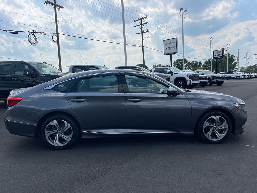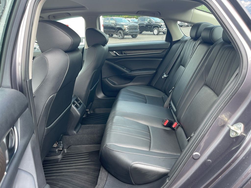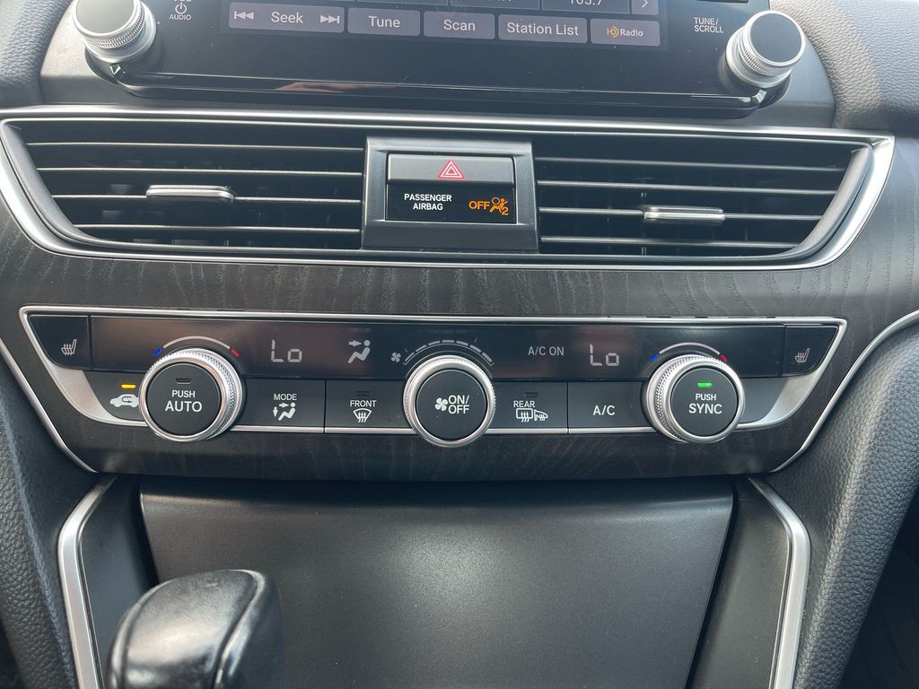 THIS VEHICLE INCLUDES THE FOLLOWING FEATURES AND OPTIONS: Accord EX-L, 10 Speakers, 17 Machine-Finished Alloy Wheels, 4-Wheel Disc Brakes, ABS brakes, Adaptive Cruise Control: Adaptive Cruise Control (ACC) with Low-Speed Follow, Air Conditioning, Alloy wheels, AM/FM radio: SiriusXM, Apple CarPlay/Android Auto, Auto High-beam Headlights, Auto-dimming Rear-View mirror, Automatic temperature control, Blind Spot Information (BSI) System warning, Brake assist, Bumpers: body-color, Cruise Control, Delay-off headlights, Driver door bin, Driver vanity mirror, Dual front impact airbags, Dual front side impact airbags, Electronic Stability Control, Emergency communication system: HondaLink, Exterior Parking Camera Rear, Forward collision: Collision Mitigation Braking System (CMBS) + FCW mitigation, Four wheel independent suspension, Front anti-roll bar, Front Bucket Seats, Front Center Armrest, Front dual zone A/C, Front fog lights, Front reading lights, Fully automatic headlights, Garage door transmitter: HomeLink, Heated door mirrors, Heated Front Bucket Seats, Heated front seats, Illuminated entry, Knee airbag, Leather Shift Knob, Leather steering wheel, Leather-Trimmed Seats, Low tire pressure warning, Memory seat, Occupant sensing airbag, Outside temperature display, Overhead airbag, Overhead console, Panic alarm, Passenger door bin, Passenger vanity mirror, Power door mirrors, Power driver seat, Power moonroof, Power passenger seat, Power steering, Power windows, Radio data system, Radio: 450-Watt AM/FM/HD Premium Audio System, Rear anti-roll bar, Rear seat center armrest, Rear window defroster, Remote keyless entry, Security system, Speed-sensing steering, Speed-Sensitive Wipers, Split folding rear seat, Steering wheel mounted audio controls, Tachometer, Telescoping steering wheel, Tilt steering wheel, Traction control, Trip computer, Turn signal indicator mirrors, and Variably intermittent wipers.