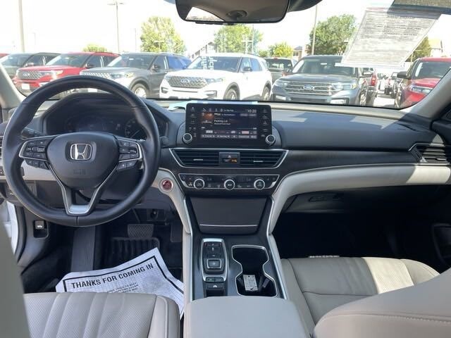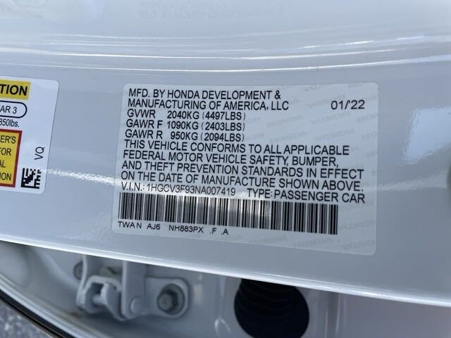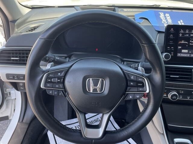 Ford Blue Advantage: Blue Certified Certified, 2.0L 4-Cylinder DOHC 16V i-VTEC, 10 Speakers, 4-Wheel Disc Brakes, ABS brakes, Adaptive Cruise Control: Adaptive Cruise Control (ACC) with Low-Speed Follow, Adaptive suspension, Air Conditioning, Alloy wheels, AM/FM radio: SiriusXM, Apple CarPlay/Android Auto, Auto High-beam Headlights, Auto-dimming Rear-View mirror, Automatic temperature control, Blind Spot Information (BSI) System warning, Brake assist, Bumpers: body-color, Compass, Delay-off headlights, Driver door bin, Driver vanity mirror, Dual front impact airbags, Dual front side impact airbags, Electronic Stability Control, Emergency communication system: HondaLink, Exterior Parking Camera Rear, Forward collision: Collision Mitigation Braking System (CMBS) + FCW mitigation, Four wheel independent suspension, Front anti-roll bar, Front Bucket Seats, Front Center Armrest, Front dual zone A/C, Front fog lights, Front reading lights, Fully automatic headlights, Garage door transmitter: HomeLink, Heads-Up Display, Heated & Ventilated Front Bucket Seats, Heated door mirrors, Heated front seats, Heated rear seats, Illuminated entry, Knee airbag, Lane Departure Warning System, Leather steering wheel, Low tire pressure warning, Memory seat, Navigation system: Honda Satellite-Linked Navigation System, Occupant sensing airbag, Outside temperature display, Overhead airbag, Overhead console, Panic alarm, Passenger door bin, Passenger vanity mirror, Perforated Leather Seat Trim, Power door mirrors, Power driver seat, Power moonroof, Power passenger seat, Power steering, Power windows, Radio data system, Radio: 450-Watt HD Premium Audio System, Rain sensing wipers, Rear anti-roll bar, Rear seat center armrest, Rear window defroster, Remote keyless entry, Security system, Speed control, Speed-sensing steering, Speed-Sensitive Wipers, Split folding rear seat, Steering wheel mounted audio controls, Telescoping steering wheel, Tilt steering wheel, Traction control, Trip computer, Turn signal indicator mirrors, Variably intermittent wipers, Ventilated front seats, Wheels: 19 Machine-Finished Alloy w/Gray Inserts, 2.0L 4-Cylinder DOHC 16V i-VTEC.