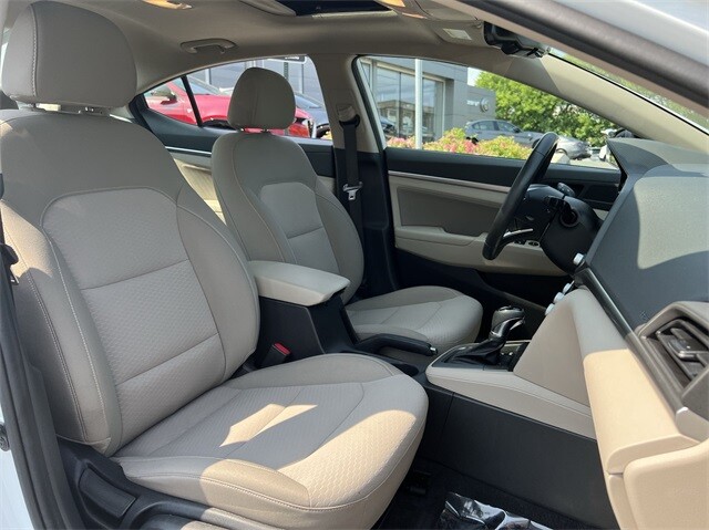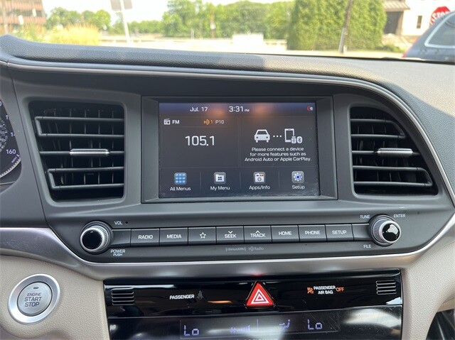 This Elantra Value Edition is nicely equipped with Option Group 01, 16 x 6.5J Alloy Wheels, 4-Wheel Disc Brakes, 6 Speakers, ABS brakes, Air Conditioning, Alloy wheels, AM/FM radio: SiriusXM, Apple CarPlay & Android Auto, Automatic temperature control, Brake assist, Bumpers: body-color, Carpeted Floor Mats, Delay-off headlights, Driver door bin, Driver vanity mirror, Dual front impact airbags, Dual front side impact airbags, Electronic Stability Control, Emergency communication system: Blue Link, Exterior Parking Camera Rear, First Aid Kit, Front anti-roll bar, Front Bucket Seats, Front Center Armrest, Front dual zone A/C, Front reading lights, Front wheel independent suspension, Fully automatic headlights, Heated door mirrors, Heated Front Bucket Seats, Heated front seats, Illuminated entry, Knee airbag, Low tire pressure warning, Mudguards, Occupant sensing airbag, Outside temperature display, Overhead airbag, Overhead console, Panic alarm, Passenger door bin, Passenger vanity mirror, Power door mirrors, Power moonroof, Power steering, Power windows, Premium Cloth Seat Trim, Radio: AM/FM/HD/SiriusXM/MP3 Display Audio, Rear Bumper Applique, Rear window defroster, Remote keyless entry, Reversible Cargo Tray, Security system, Speed control, Speed-sensing steering, Split folding rear seat, Steering wheel mounted audio controls, Tachometer, Telescoping steering wheel, Tilt steering wheel, Traction control, Trip computer, and Variably intermittent wipers.