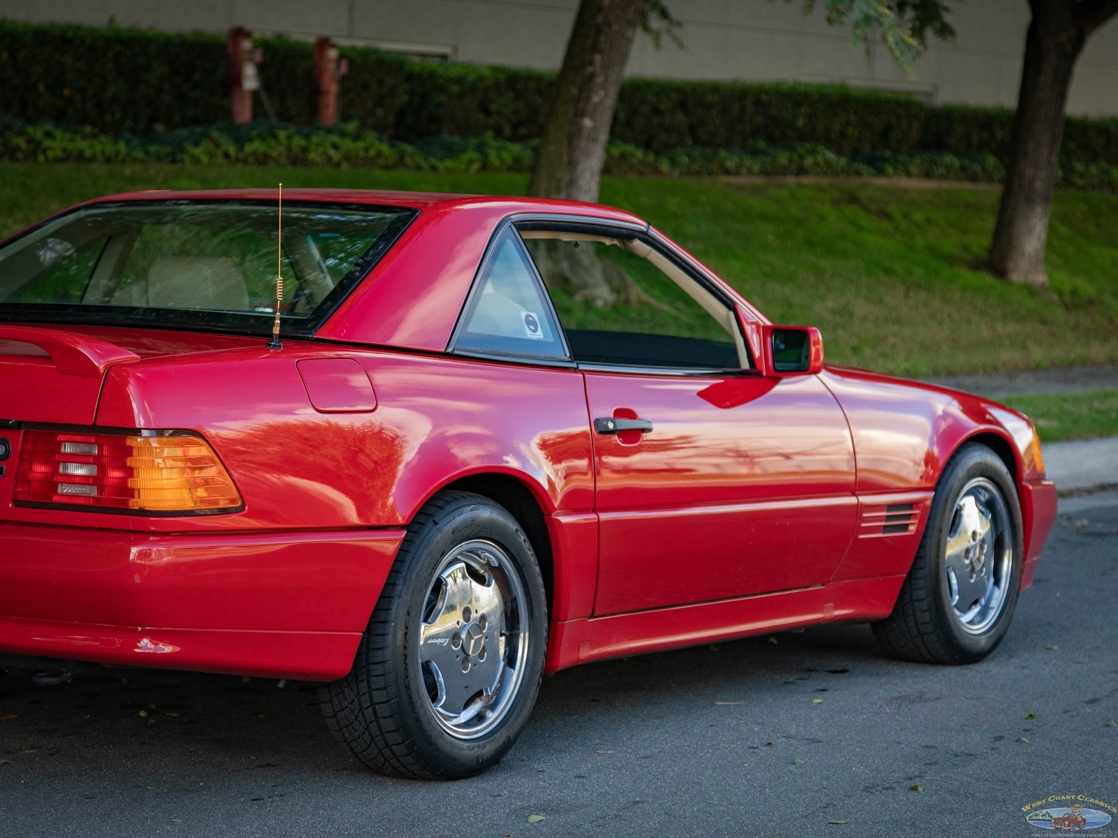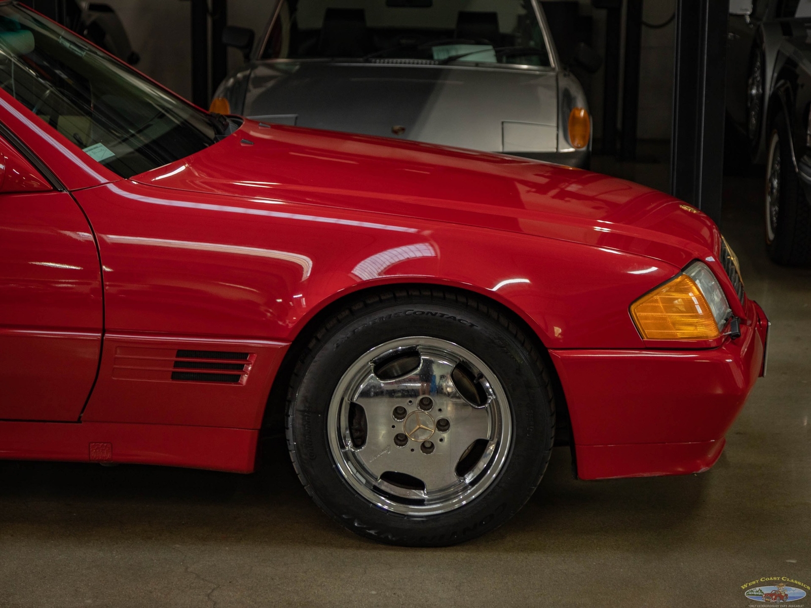 West Coast Classics are proud to present an absolutely exceptional example of this rare 1991 Mercedes-Benz 300SL 24 valve 3.0L 6 cylinder roadster with only 13K original miles in the highly desirable and striking color combination of original factory 'Signal Red' color paint with a Palomino leather interior, a Black power soft top and matching factory 'Signal Red' hard top and is a rare US import!