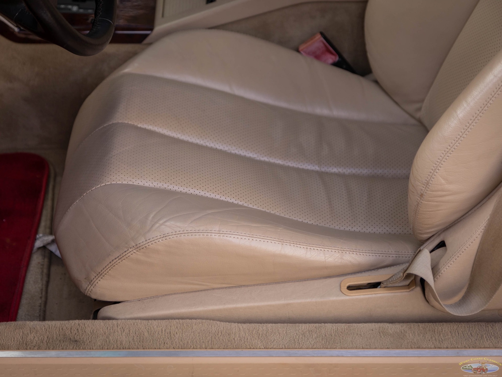 This particular example was always garaged since new with no accidents and with the original and beautiful 'Signal Red' color factory color paint still in absolutely exceptional condition. The original 'Palomino' leather seats are also in absolutely beautiful condition with virtually no signs of any wear as is the original dashboard and wood veneer interior - obviously always garaged from the elements! The car has its original factory 'German canvas' Black color power soft top which is still as new and has hardly ever seen the light of day with a very clear rear plastic window and the car has it's original and also factory correct matching color hard top.