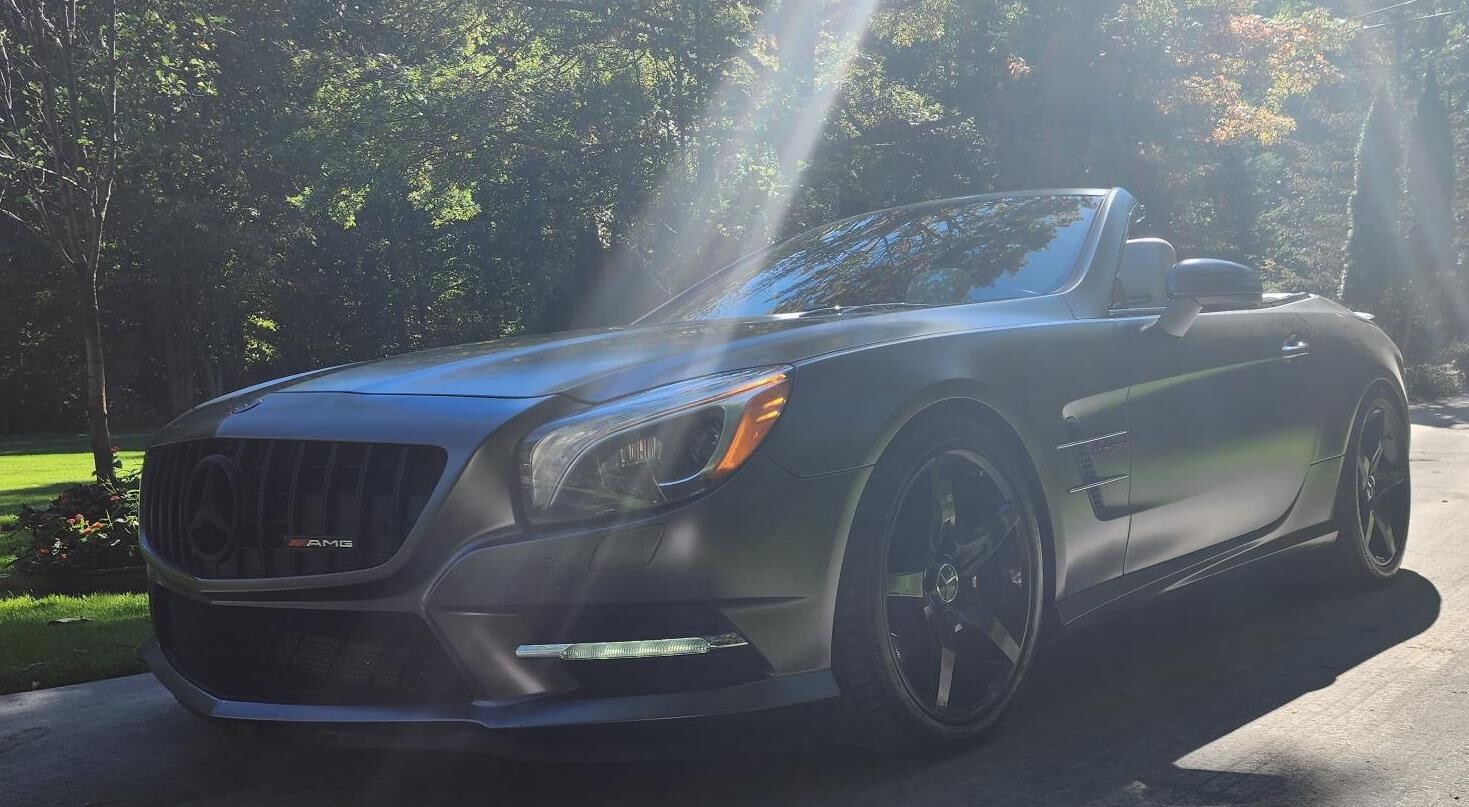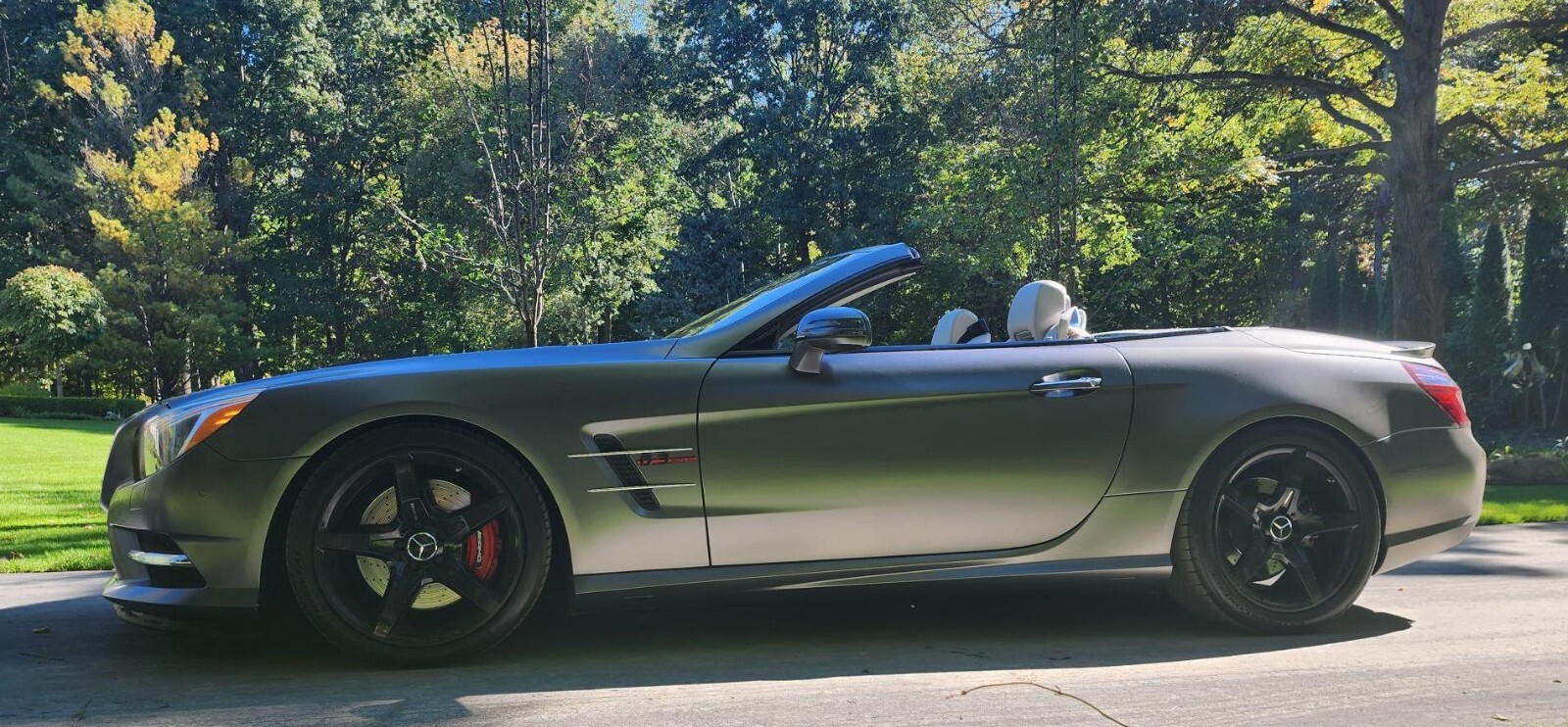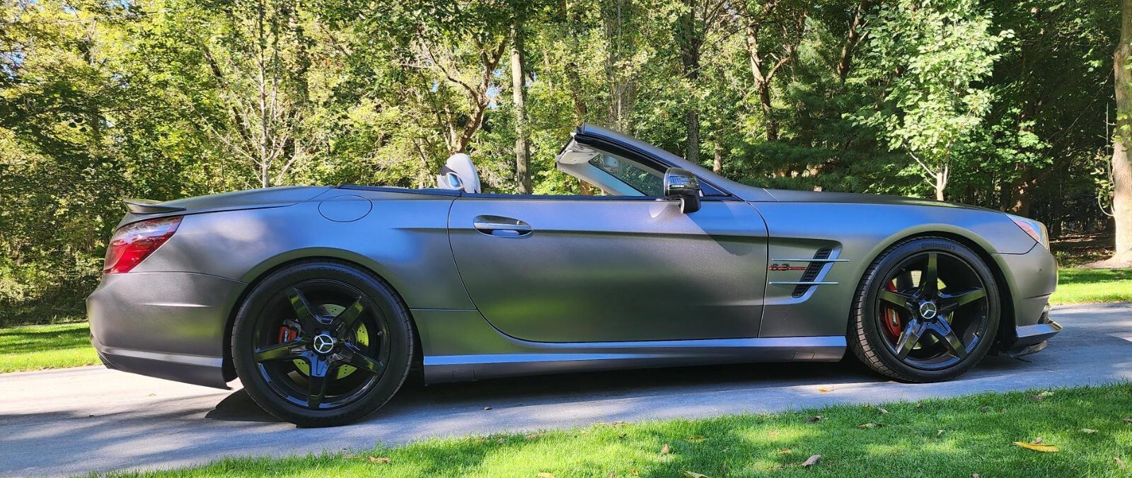 *Recently Reduced Price! -$10,000.00 *Under Value. Mercedes-Benz SL-Class. 2015 SL 550. AMG style accessories. Just Incredible. I'll list just of few of the many specialties; Tinted windows, Chip-Tune / Increased Horse Power. Updated suspension, still has "comfort" mode. Brand new steering rack, much tighter/responsive control. Speed-Boost (lag time eliminator), vehicle lowered with new suspension, wheels/rims (AMG-just re-refinished to new). Rim/wheel hub extension spacers. 4 brand new oversized Continental Extreme Contact tires (1500 miles) . Front lower ground effect spoiler. Front of vehicle sits low, approximately 3-4 inches from the ground. Premium total vehicle flat mat gray wrap with subtle metallic reflection, new perfectly tuned exhaust (loud on acceleration,).Exhaust sound overhaul. Interior is a beautiful ivory with burl wood. LED interior accent lighting. Premium Sound System. This vehicle has NEVER been in snow, Non smoker. Climate controlled winter storage. Only 1 driver (for the duration of my ownership). At high speeds, this vehicle is glued to the road. As of this moment, everything functions as designed. (And will be upon purchase).Dealership Vehicle Maintenance. Just changed engine & transmission oil. Trans fluid good for 100,000 miles. This car can be yours. Vehicle ALWAYS covered while parked in storage/ garage.