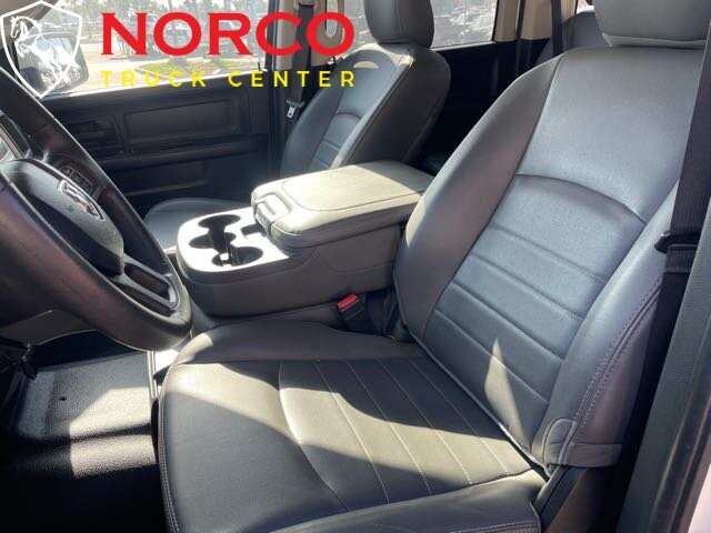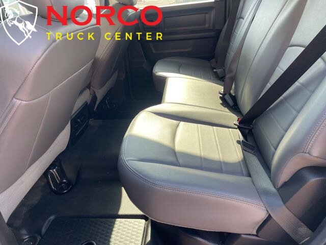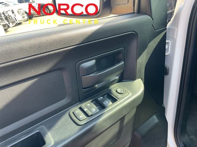 INSTALLED FEATURES: Front air conditioning, Front air conditioning zones: single, Airbag deactivation: occupant sensing passenger, Front airbags: dual, Side airbags: front, Side curtain airbags: front / rear, Antenna type: mast, Auxiliary audio input: USB / jack, Radio: AM/FM, Speed sensitive volume control, Total speakers: 6, ABS: 4-wheel, Braking assist, Electronic brakeforce distribution, Front brake diameter: 13.2, Front brake type: ventilated disc, Front brake width: 1.1, Rear brake diameter: 13.8, Rear brake type: ventilated disc, Rear brake width: 0.87, Armrests: front center, Floor material: rubber/vinyl, Ashtray, Assist handle: front / rear, Cruise control, Cupholders: front / rear, One-touch windows: 2, Power outlet(s): 12V, Power steering, Power windows: lockout button, Rearview mirror: manual day/night, Steering wheel: tilt, Steering wheel mounted controls: cruise control, Storage: door pockets / in floor / under rear seats, Sun visors, 4WD selector: electronic hi-lo, 4WD type: part time, Axle ratio: 3.21, Alternator: 180 amps, Auxiliary engine cooler, Battery: maintenance-free, Battery rating: 730 CCA, Emissions: 50 state, Door handle color: black, Front bumper color: black, Grille color: black, Mirror color: black, Pickup bed light, Pickup bed liner: spray-on, Rear bumper color: black, Tailgate: removable, Infotainment: Uconnect, Infotainment screen size: 3 in., Clock, Digital odometer, Gauge: tachometer, Instrument cluster screen size: 3.5 in., Multi-function display, Powertrain hour meter, Warnings and reminders: low fuel level / low oil level / maintenance due, Headlights: auto delay off / auto on / halogen / quad headlights, Side mirror adjustments: manual folding / power, Side mirrors: heated, Child safety door locks, Child seat anchors: LATCH system, Crumple zones: front, Emergency locking retractors: front / rear, Front seatbelts: 3-point, Rear seatbelts: 3-point, Seatbelt force limiters, Seatbelt pretensioners: front, Seatbelt warning sensor: front, Driver seat manual adjustments: height, Front headrests: adjustable / 2, Front seat type: 40-20-40 split bench, Passenger seat manual adjustments, Rear headrests: adjustable / 2, Rear seat folding: folds up, Rear seat type: bench, Upholstery: vinyl, Anti-theft system: vehicle immobilizer, Power door locks, Hill holder control, Roll stability control, Stability control, Traction control, Trailer stability control, Front shock type: gas, Front spring type: coil, Front stabilizer bar, Front struts, Front suspension classification: independent, Front suspension type: short and long arm, Rear shock type: gas, Rear spring type: coil, Rear stabilizer bar, Rear suspension classification: solid live axle, Rear suspension type: multi-link, Phone: pre-wired for phone, Spare tire mount location: underbody, Spare tire size: full-size matching, Spare wheel type: steel, Tire Pressure Monitoring System, Tire type: all season, Wheels: steel, Auxiliary transmission fluid cooler, Trailer hitch: Class IV, Trailer wiring, Front wipers: variable intermittent, Power windows, Rear privacy glass