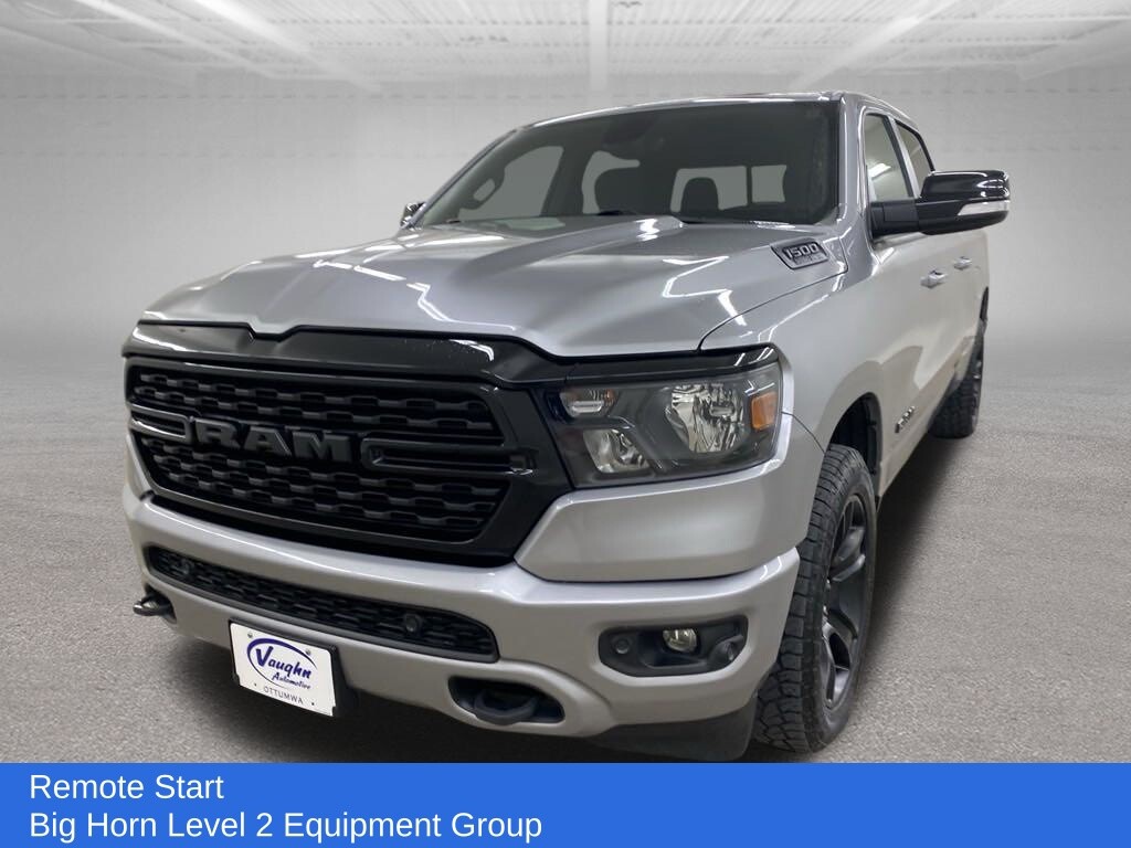 1-Owner, Dealer Inspection, Vehicle Detailed, Recent Oil Change, New Wiper Blades, 4 New Tires, Remote Start, 8-Speed Automatic, 4WD, Black Cloth, 115V Auxiliary Power Outlet, 115V Auxiliary Rear Power Outlet, 2nd Row In Floor Storage Bins, 4G LTE Wi-Fi Hot Spot, 8.4 Touchscreen Display, Accent Color Premium Power Mirrors, Air Conditioning, Air Conditioning ATC w/Dual Zone Control, AM/FM radio, Anti-Spin Differential Rear Axle, Apple CarPlay, Auto-Dimming Exterior Driver Mirror, Auto-Dimming Rear-View Mirror, Big Horn Level 2 Equipment Group, Black Exterior Mirrors, Black Exterior Truck Badging, Black Headlamp Bezels, Black Interior Accents, Black Painted Exterior Mirrors Caps, Black Premium Power Mirrors, Bluetooth Handsfree Phone & Audio, Body Color Front Bumper, Body Color Rear Bumper w/Step Pads, Class IV Receiver Hitch, Cluster 7.0 TFT Color Display, Connectivity - US/Canada, Convex Wide-Angle Mirror Insert, Deluxe Cloth Bucket Seats, Dual Exhaust w/Black Tips, Electronic Stability Control, Exterior Mirrors Courtesy Lamps, Exterior Mirrors w/Heating Element, Exterior Mirrors w/Supplemental Signals, For Details, Visit , Front fog lights, Fully automatic headlights, Global Telematics Box Module (TBM), Glove Box Lamp, Google Android Auto, GPS Antenna Input, Heated Front Seats, Heated Steering Wheel, Integrated Center Stack Radio, Media Hub w/2 Charge Only USBs, Night Edition, Panic alarm, ParkSense Front/Rear Park Assist w/Stop, ParkView Rear Back-Up Camera, Power 2-Way Driver Lumbar Adjust, Power 8-Way Driver Seat, Power Adjustable Pedals, Power-Folding Mirrors, Protection Group, Radio: Uconnect 5 W w/12 Display, Radio: Uconnect 5 w/8.4 Display, Rear Dome w/On/Off Switch Lamp, Rear Power Sliding Window, Rear Window Defroster, Remote Start System, Security Alarm, SiriusXM Radio Service, SiriusXM Satellite Radio, Steering wheel mounted audio controls, Sun Visors w/Illuminated Vanity Mirrors, Tow Hooks, Universal Garage Door Opener, USB Host Flip, Wheels: 20 x 9.0 Premium Paint/Polished. HEMI 5.7L V8 Multi Displacement VVT Billet Silver Metallic Clearcoat 2022 Ram 1500 Big Horn/Lone Star