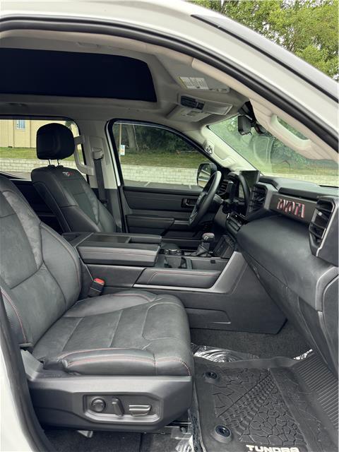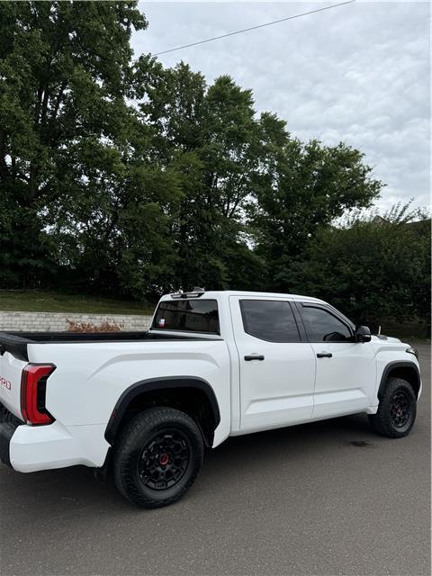 Up for sale 2023 Toyota Tundra 4WD TRD Pro Hybrid (3.4L V-6 DI, DOHC, VVT, TURBO, 437HP). It has 8k miles only. It is equipped with 10-speed Electronically controlled automatic Transmission . The color of the car is White.